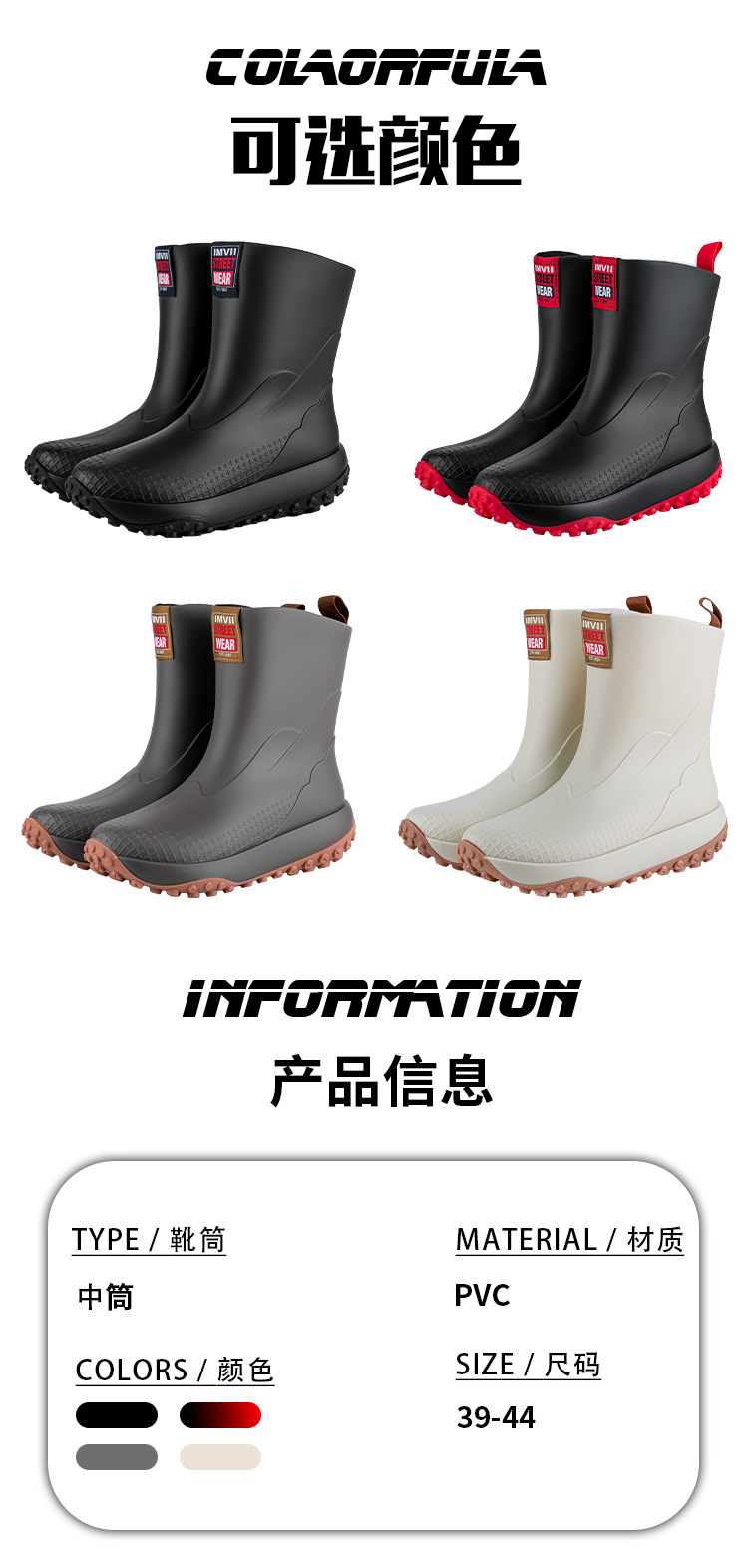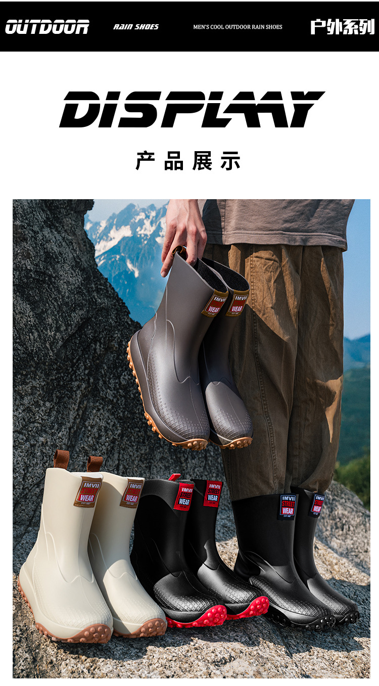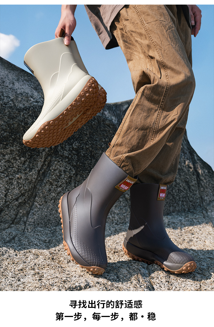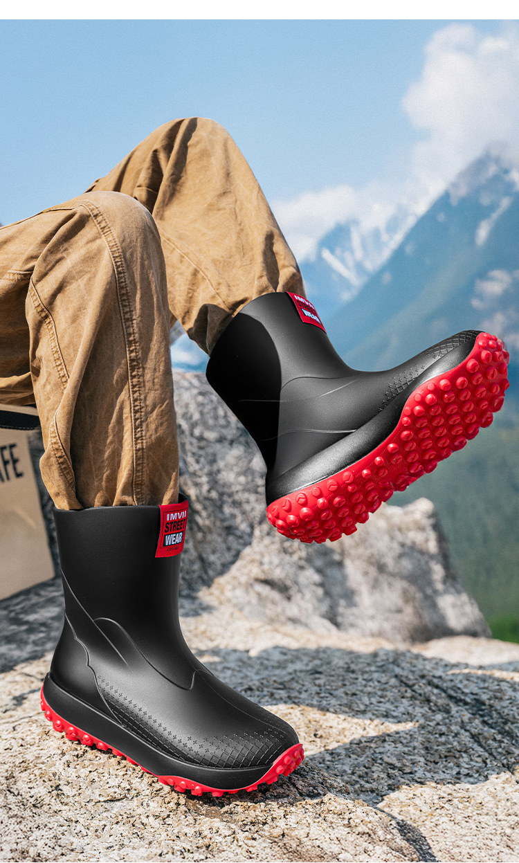 модные мужские резиновые сапоги до середины икры, водонепроницаемая обувь для студентов, велосипедные резиновые сапоги, нескользящие, утолщенные, износостойкие водные сапоги с короткими голенищами для уличной одежды