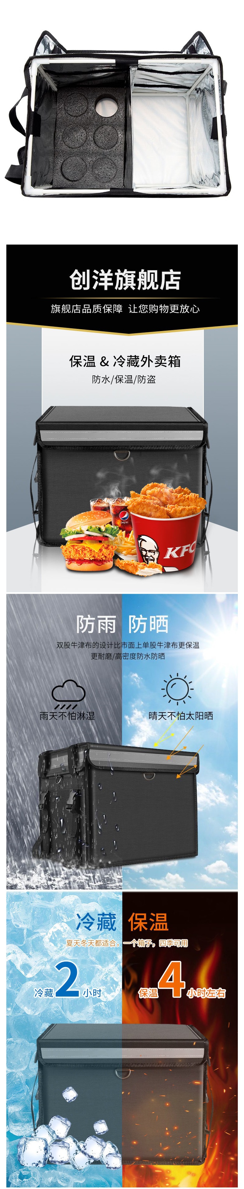 Изолированная коробка для еды на вынос, черная коммерческая стойка для доставки еды, водонепроницаемая и противоугонная, изолированная коробка большой емкости для доставки на автомобиле