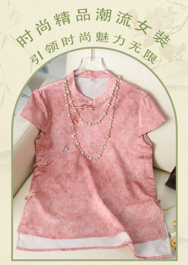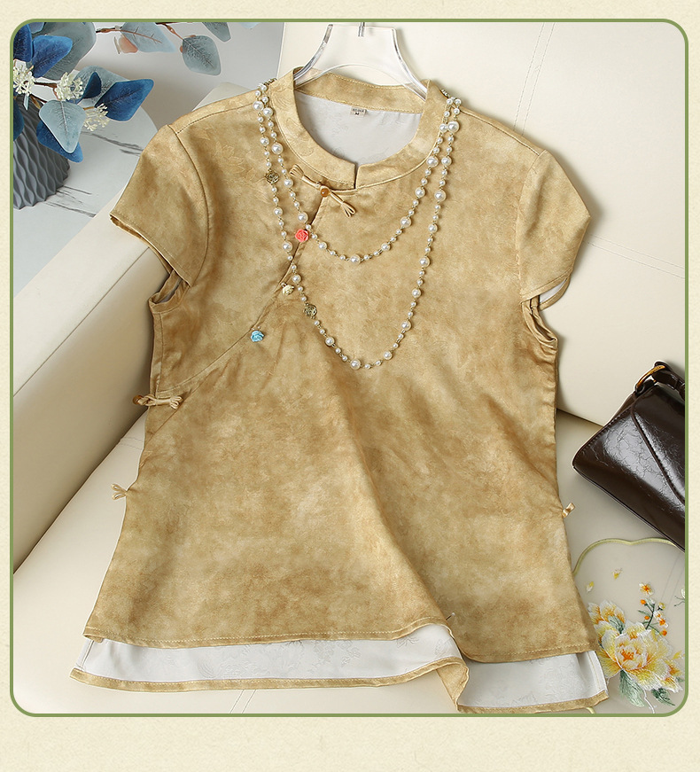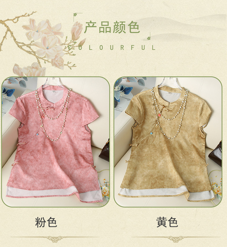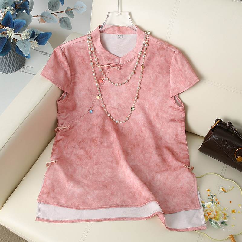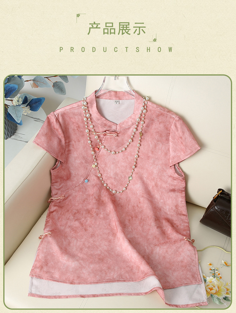 Элегантный летний топ с короткими рукавами в китайском стиле для мам, новинка 2025 года, женский высококачественный свободный тонкий топ среднего возраста, оптовая продажа
