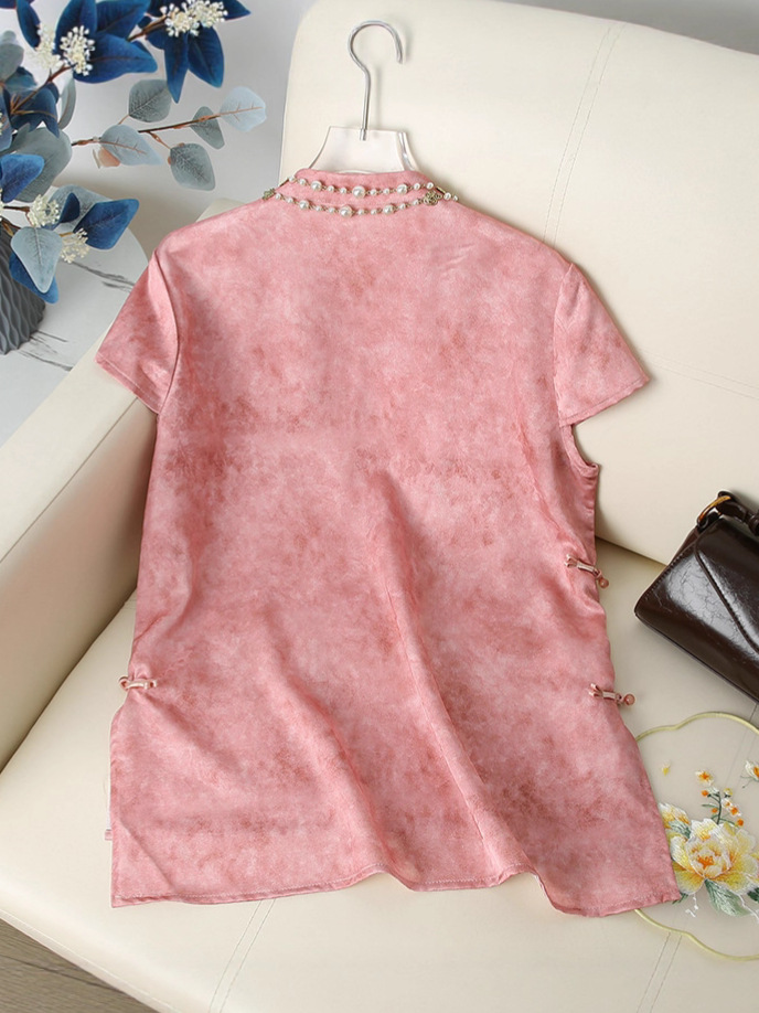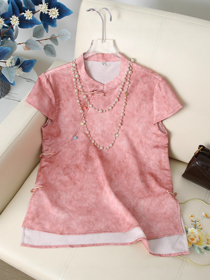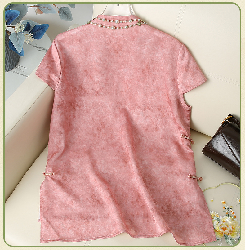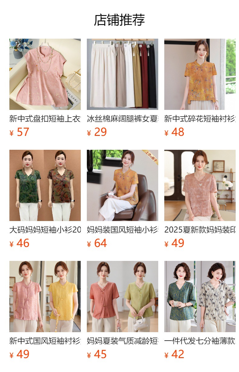 Элегантный летний топ с короткими рукавами в китайском стиле для мам, новинка 2025 года, женский высококачественный свободный тонкий топ среднего возраста, оптовая продажа