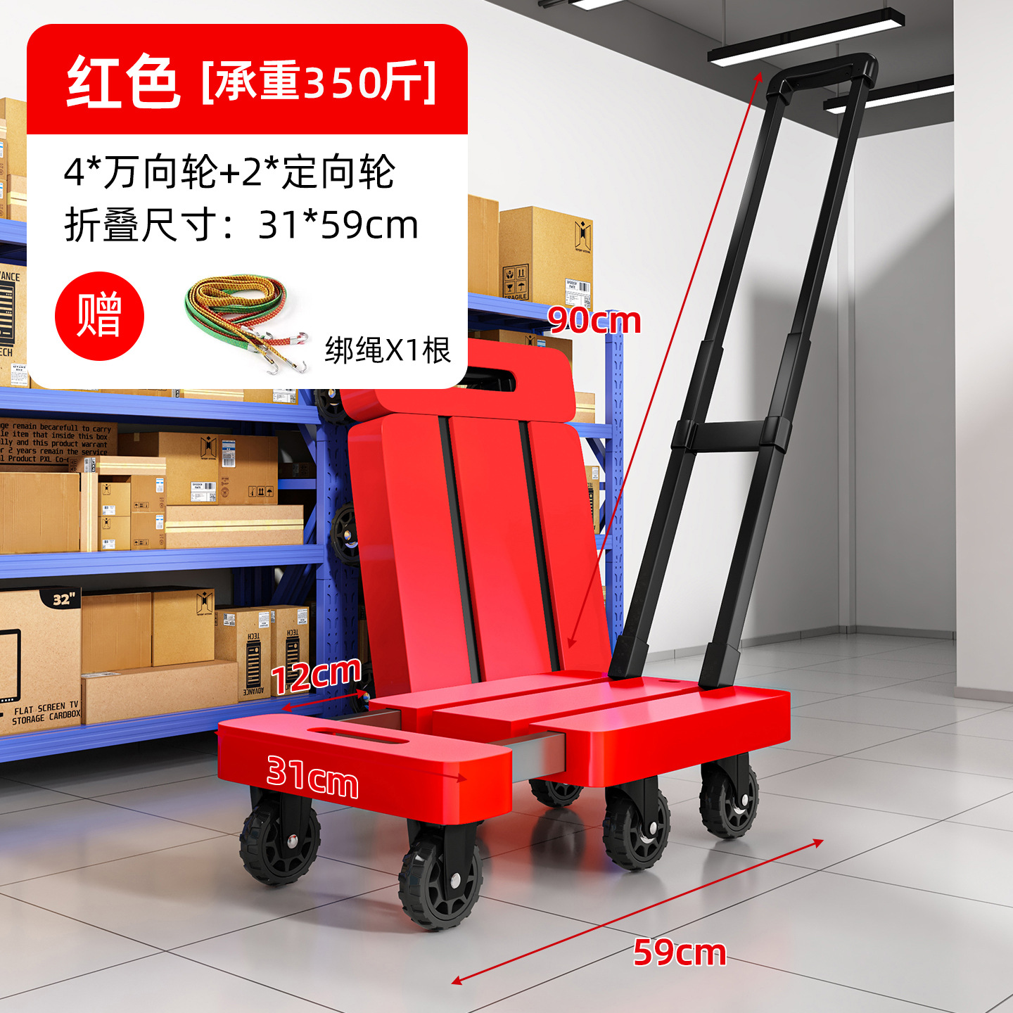 Бесшумная тележка с большими колесами, грузовик с плоской платформой, бытовая коммерческая телескопическая тележка, складная тележка, складной небольшой прицеп