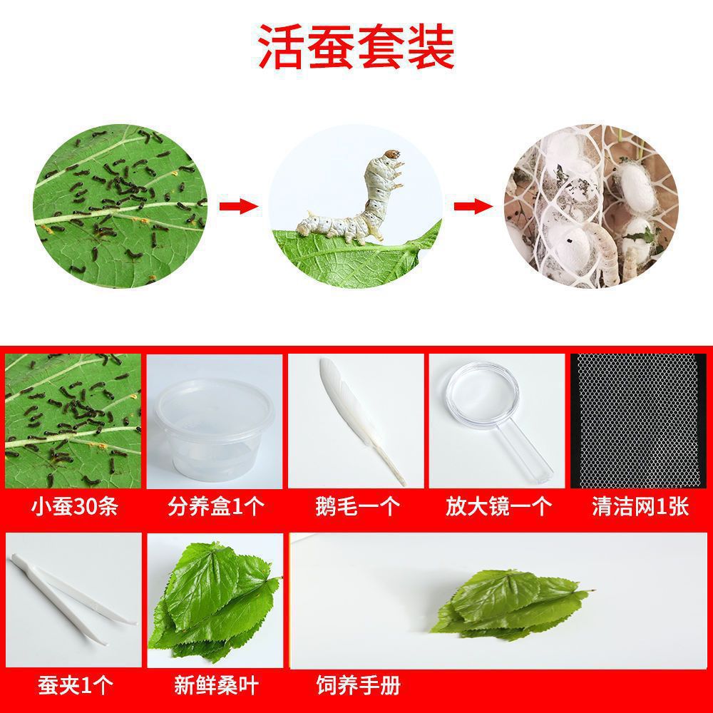 50 яиц тутового шелкопряда + ящик для высиживания.; Студенческий стандартный набор для выращивания тутового шелкопряда; Набор живых тутовых червей; Набор яиц тутового шелкопряда; 30 1-летних тутовых гусениц + маленькая коробочка + листья шелковицы; 50 1-летних тутовых червей + маленькая коробочка + листья шелковицы; 100 1-летних тутовых червей + круглая коробочка + листья шелковицы; 15 малышей тутового шелкопряда 1 года + маленькая коробочка + листья шелковицы; 10 двухлетних тутов + дышащая коробочка + листья шелковицы; 30 двухлетних тутовых гусениц + дышащая коробочка + листья шелковицы; 50 двухлетних тутовых гусениц + дышащая коробка + листья шелковицы; 100 2-летних тутовых гусениц + дышащая коробочка + листья шелковицы; 10 трехлетних тутовых гусениц + дышащая коробочка + листья шелковицы; 30 трехлетних тутовых гусениц + дышащая коробочка + листья шелковицы