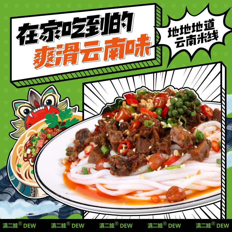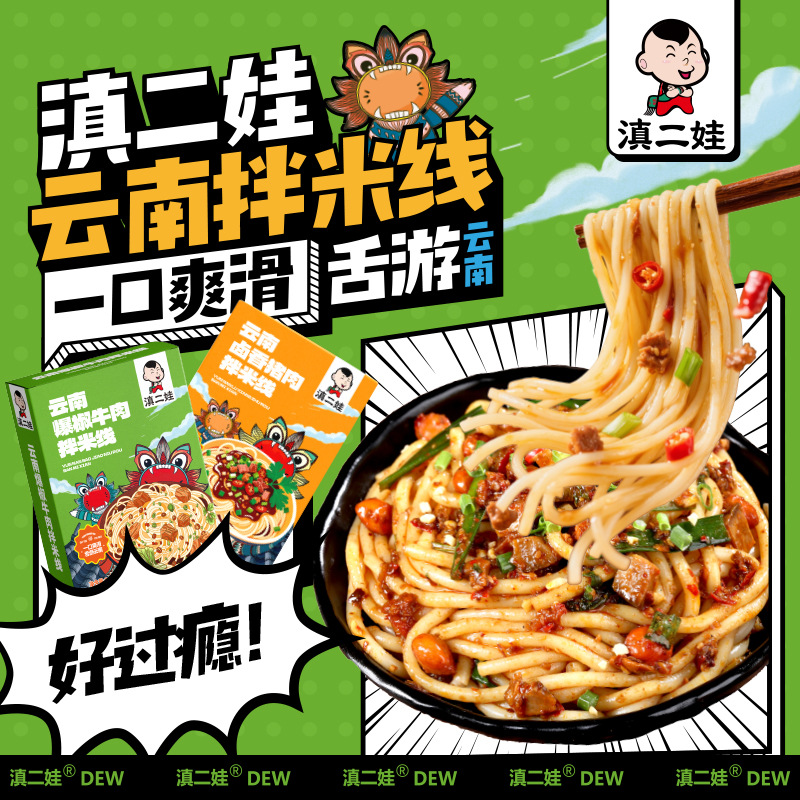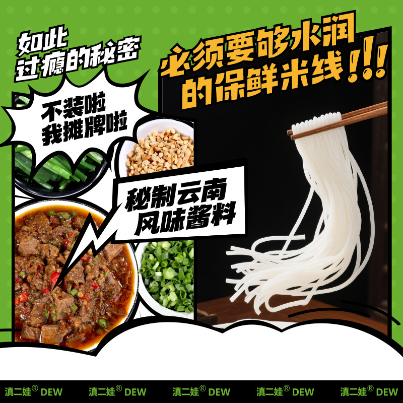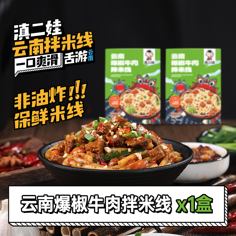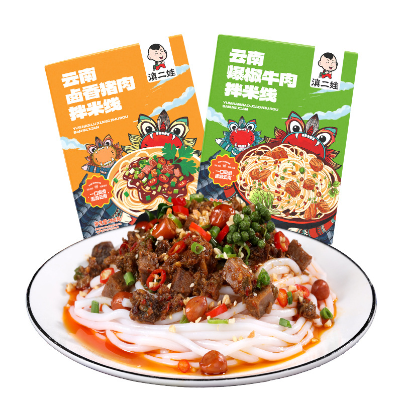 Dian Erwa Юньнаньская смешанная рисовая лапша 266 г Острая говяжья рисовая лапша Юньнаньская замена еды быстрого приготовления Наполнитель быстрого приготовления без варки