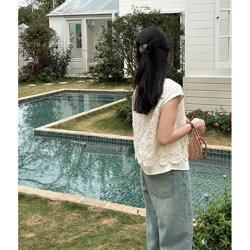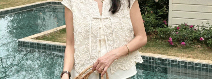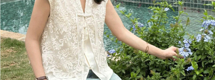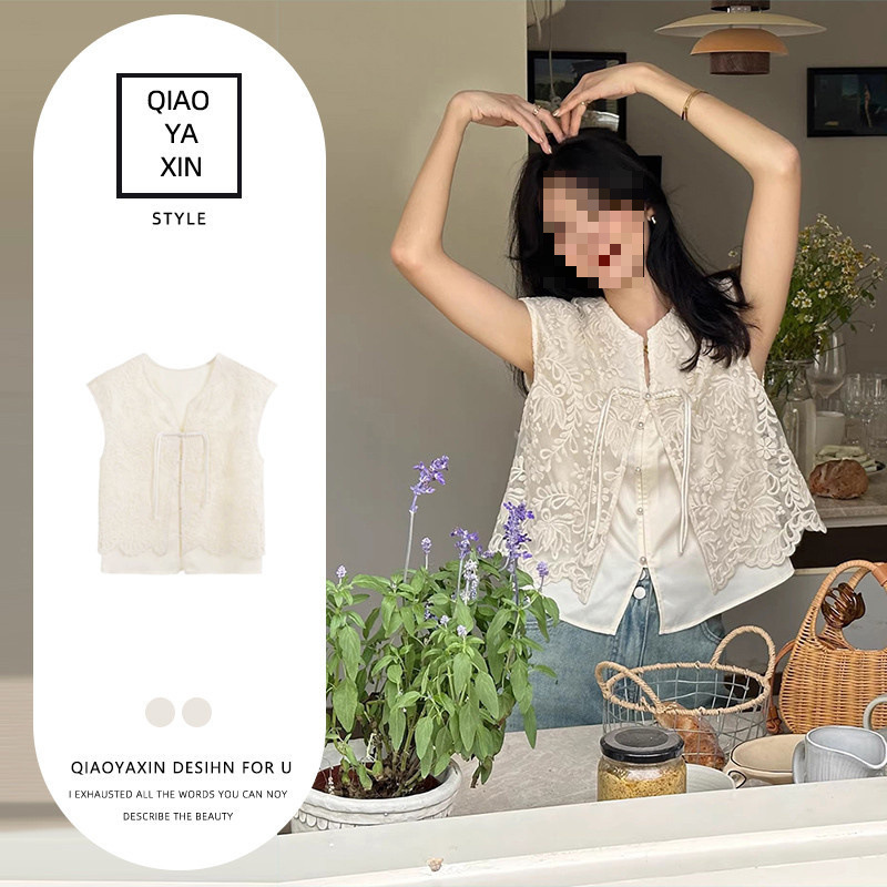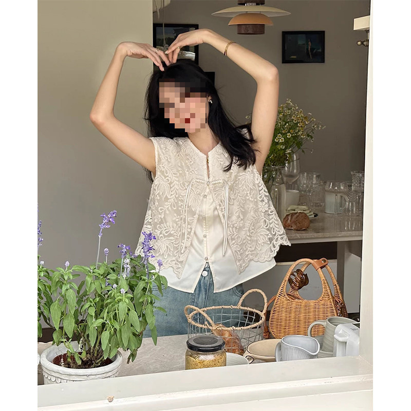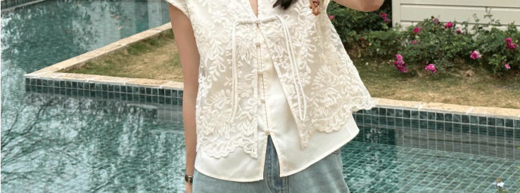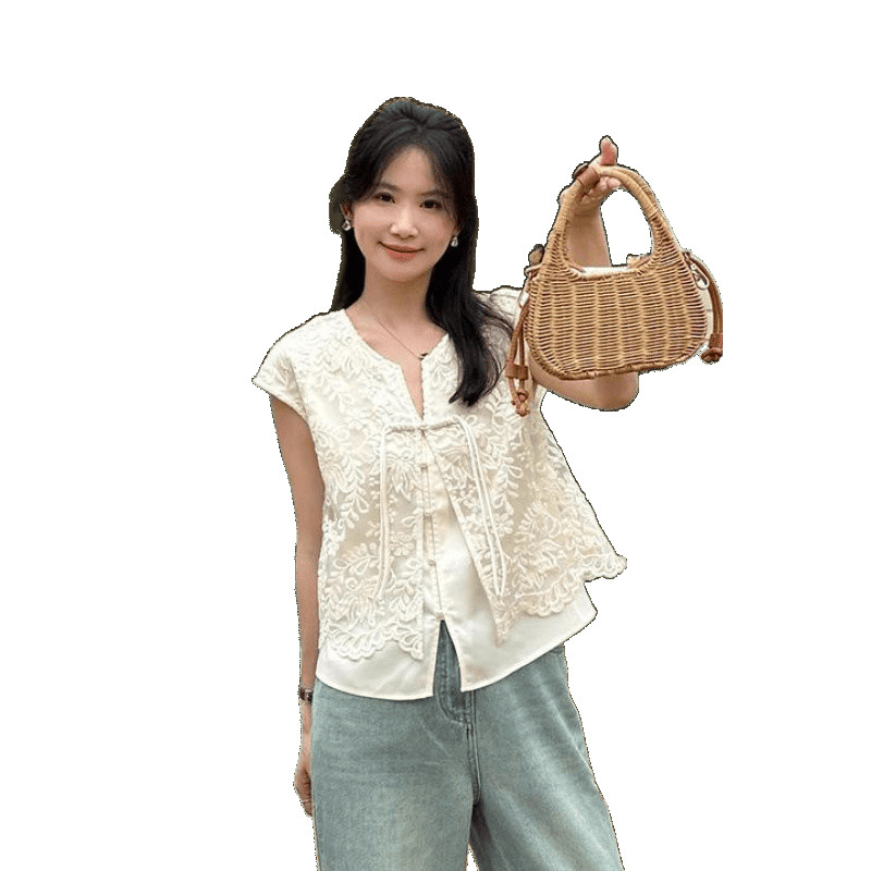 Новая рубашка в стиле шинуазри с вышивкой, женская, лето 2025, новый дизайн, нишевая, элегантная, кружевная, жаккардовая.