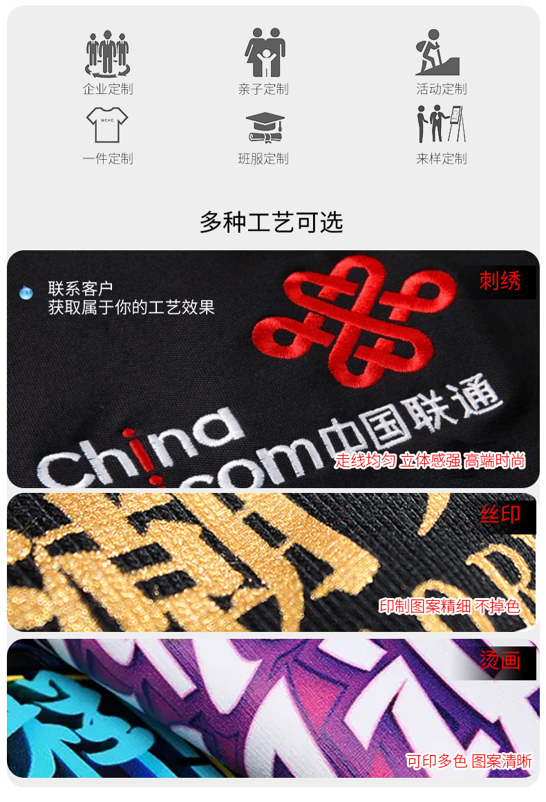 6.标注免费印绣字的商品,仅送左前胸印绣字,且印字的工艺商家自行决定(绣字仅限单色)。其他地方印字需与客服沟通确认,并支付定制费用,没有支付定制费用的视为放弃定制。(免费印绣字仅为商家促销,不印绣字的买家视为放弃该促销活动)