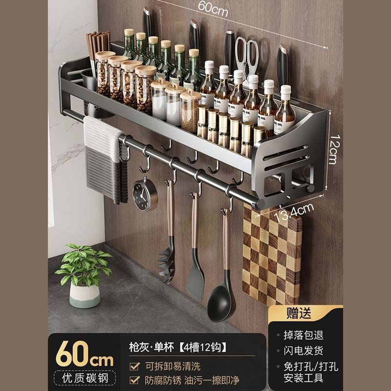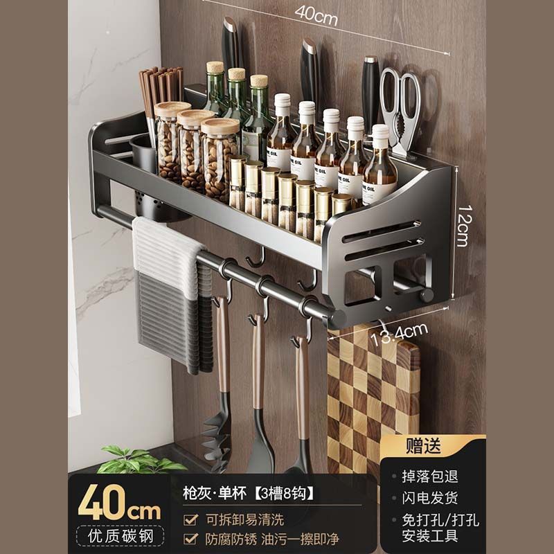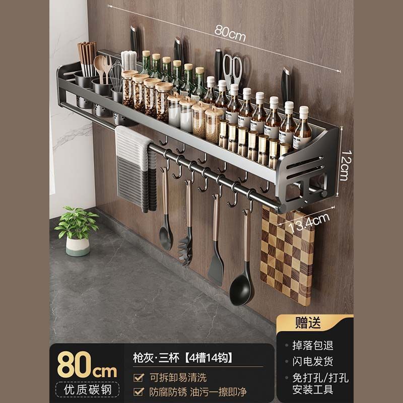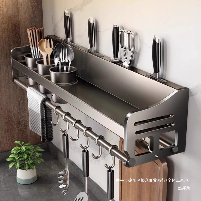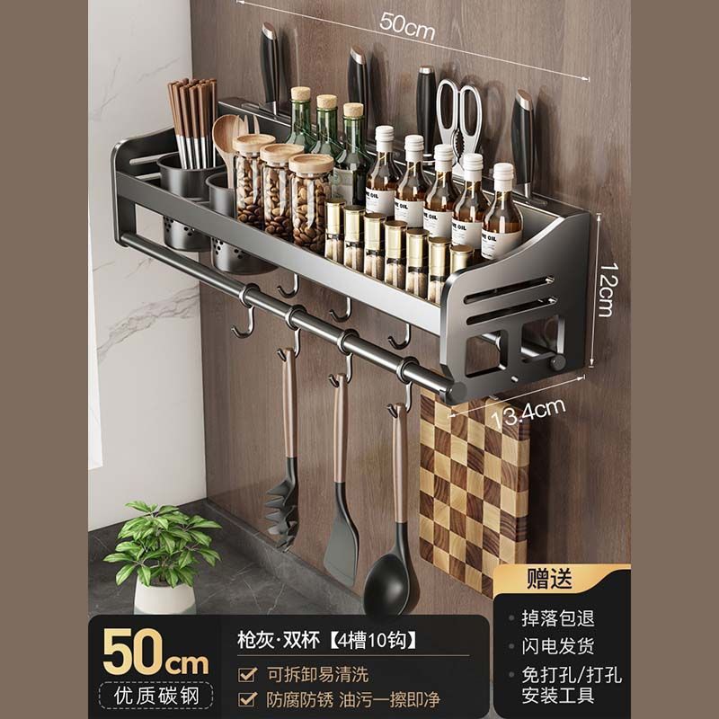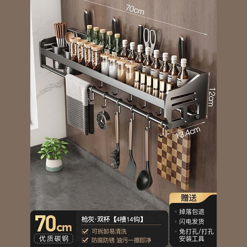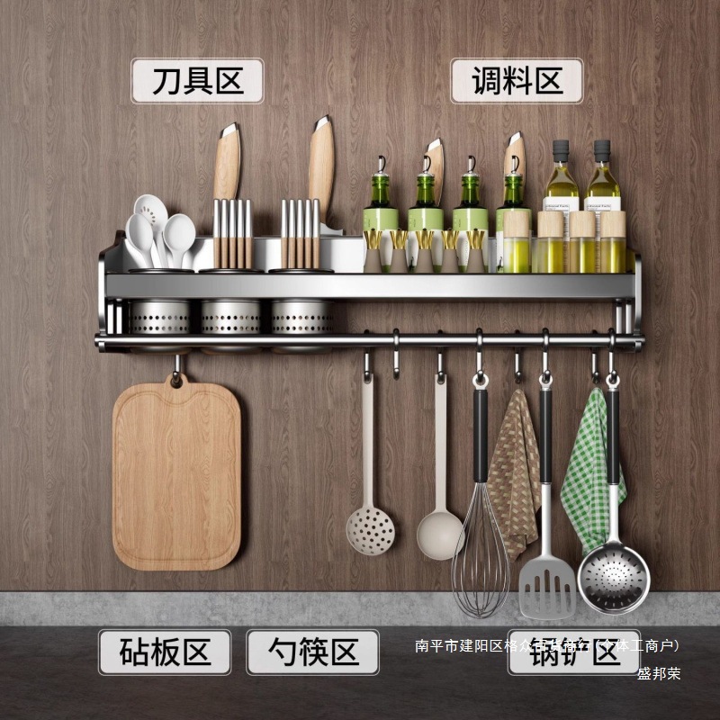 Настенная кухонная полка для хранения приправ без перфорации, вешалка с крючками, многофункциональная подвесная полка для хранения ложек, лопаток, ножей