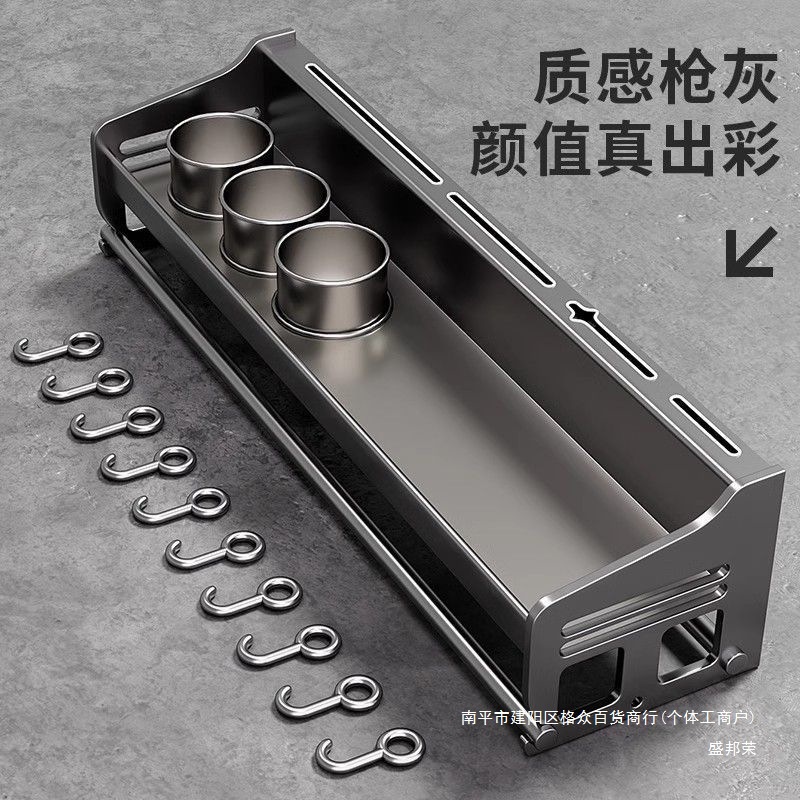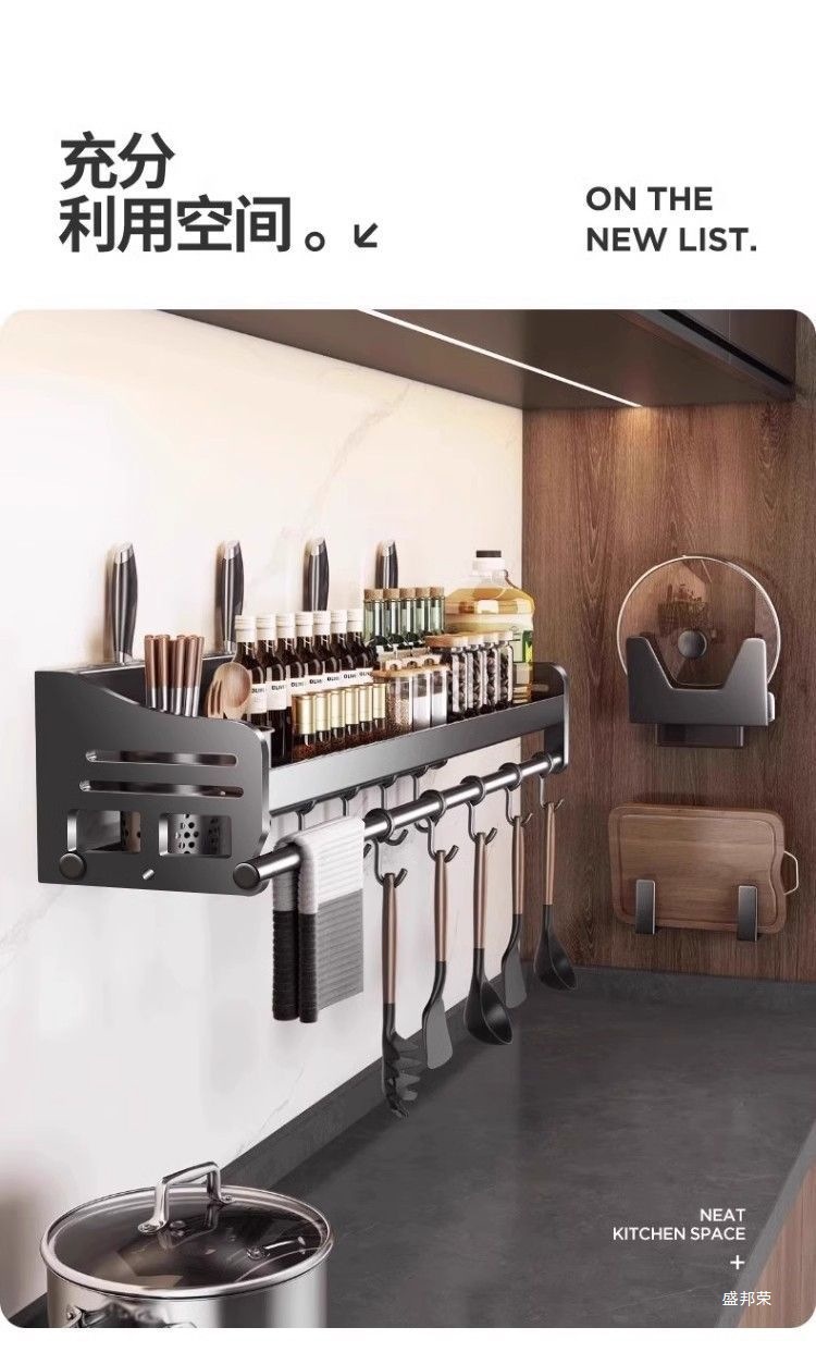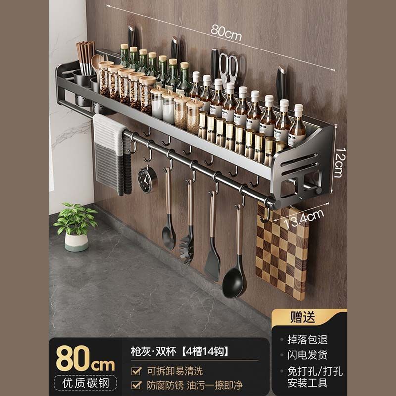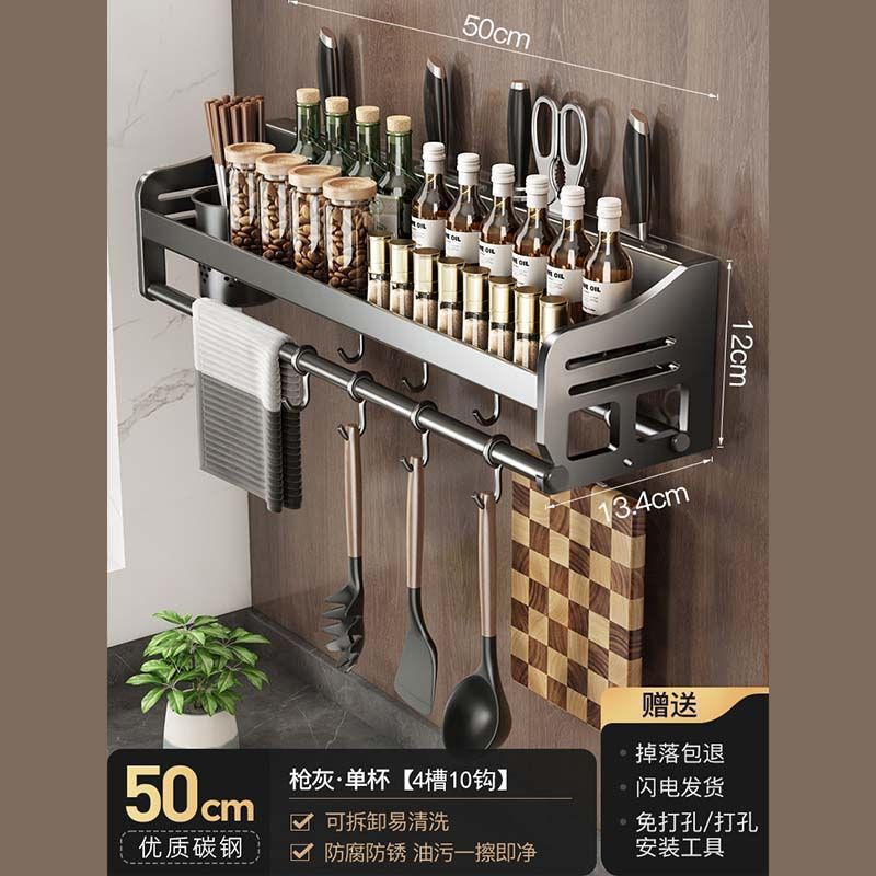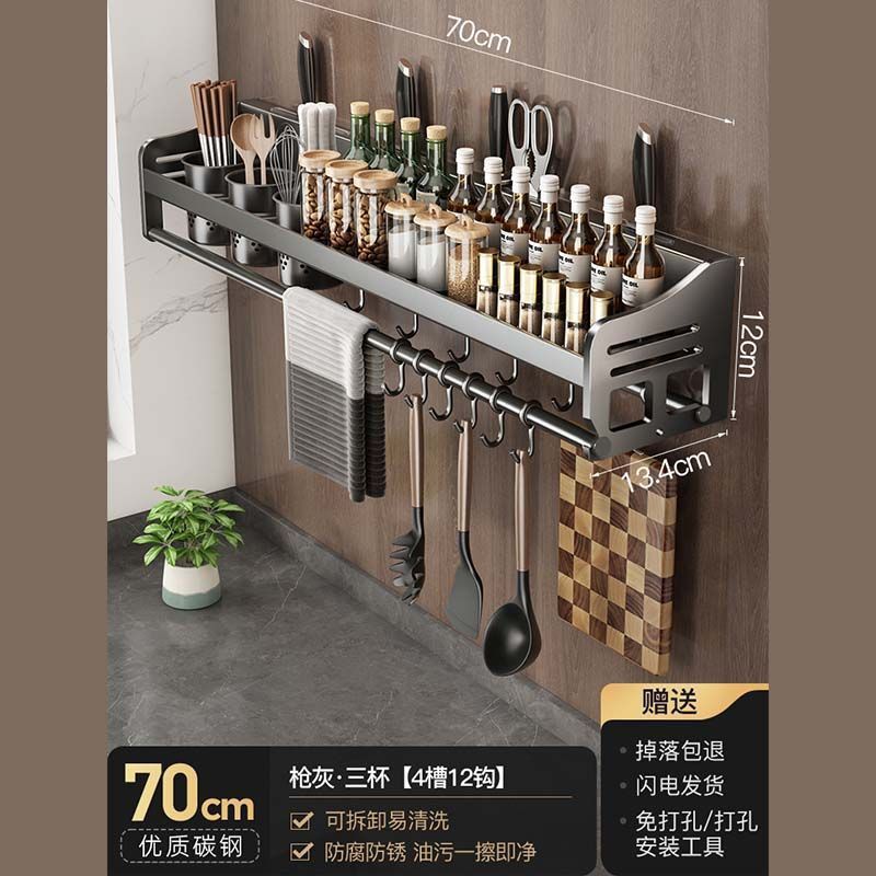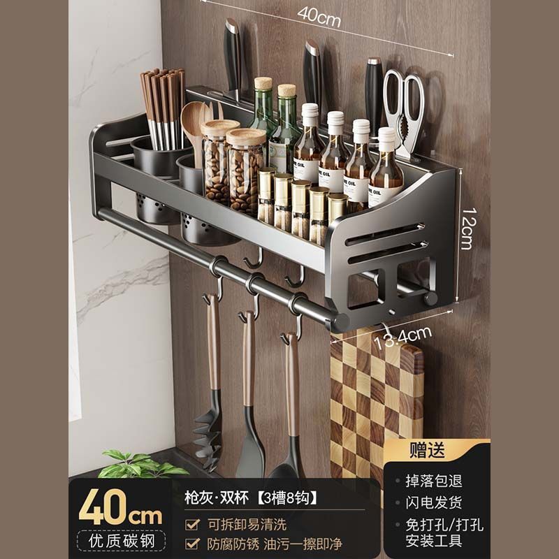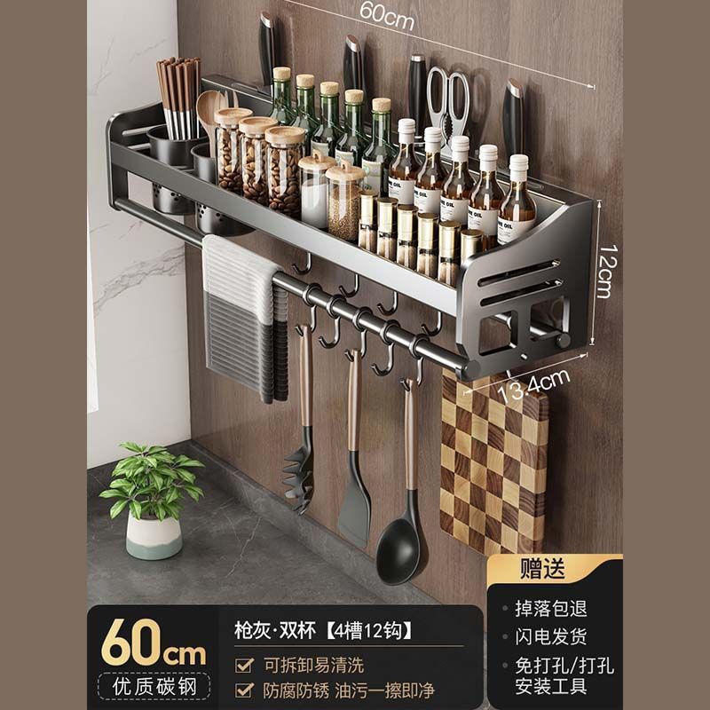Настенная кухонная полка для хранения приправ без перфорации, вешалка с крючками, многофункциональная подвесная полка для хранения ложек, лопаток, ножей