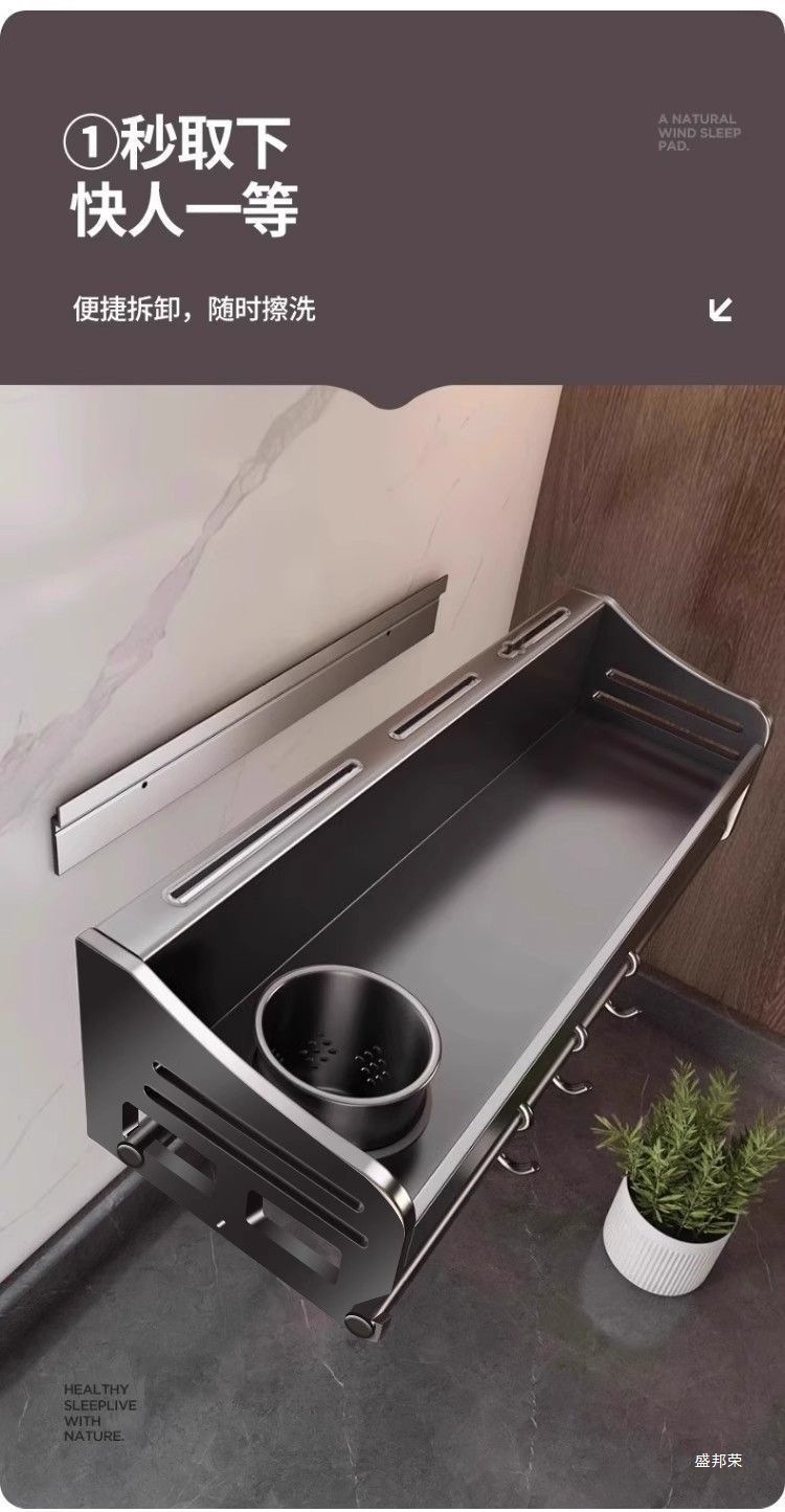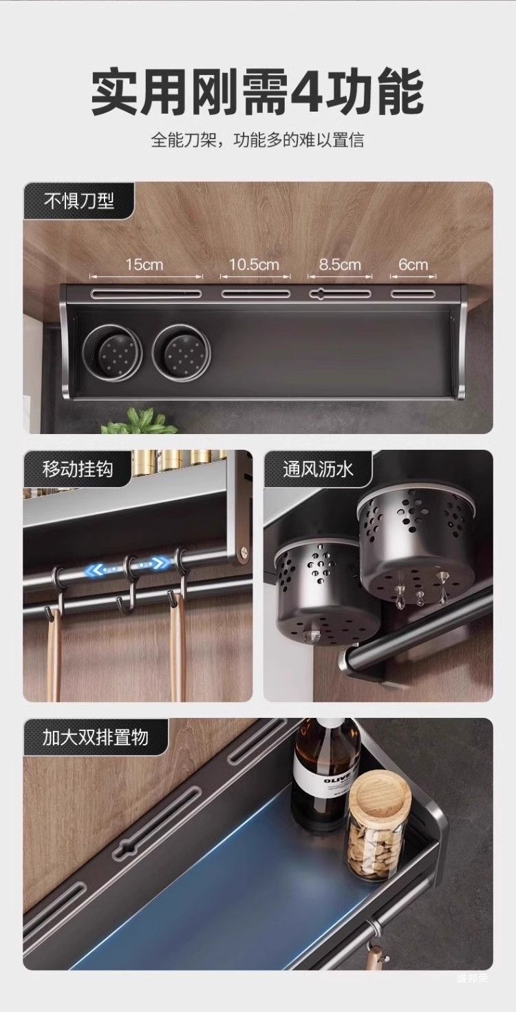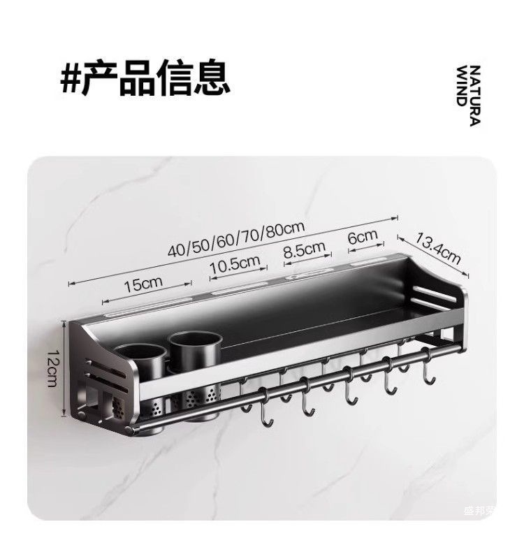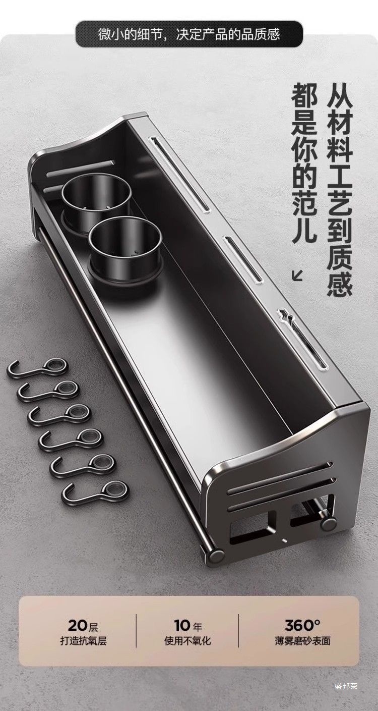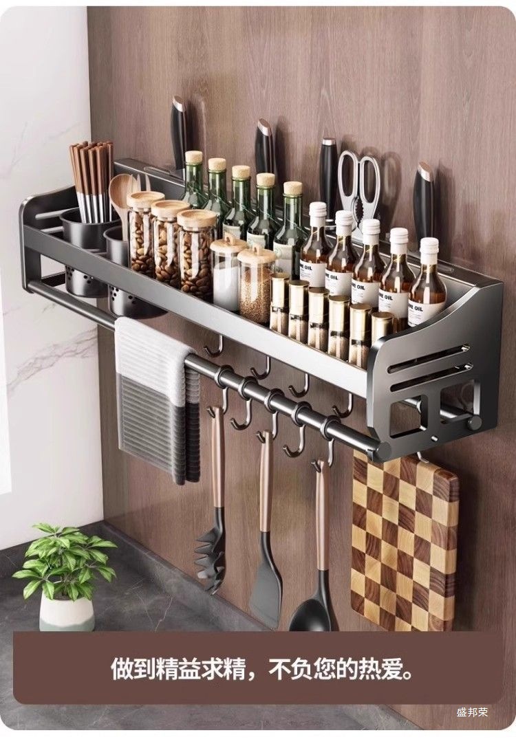 Настенная кухонная полка для хранения приправ без перфорации, вешалка с крючками, многофункциональная подвесная полка для хранения ложек, лопаток, ножей