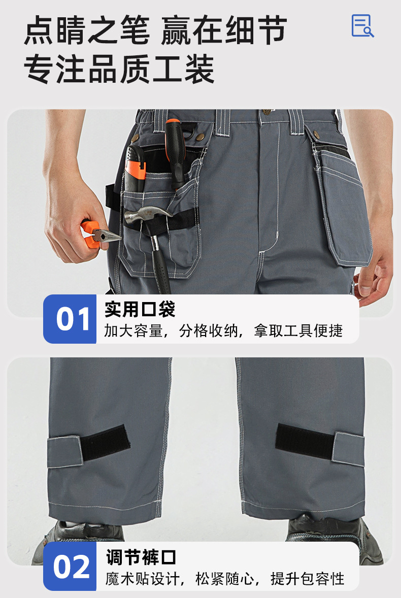 Многофункциональные рабочие брюки с несколькими карманами и съемным карманом на молнии, прочные и долговечные для мастерских, фабрик и строительных работ.