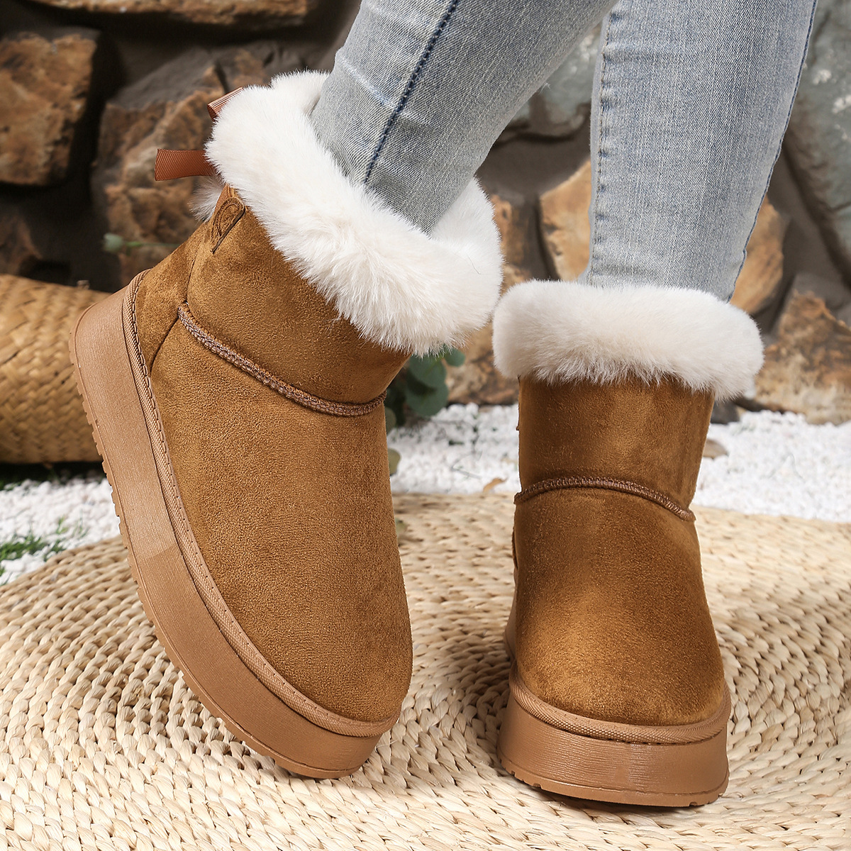 Зимние снежные ботинки для женщин 2025, новые корейские стильные короткие ботинки на флисовой подкладке на толстой подошве для женщин, модные теплые хлопковые ботинки большого размера