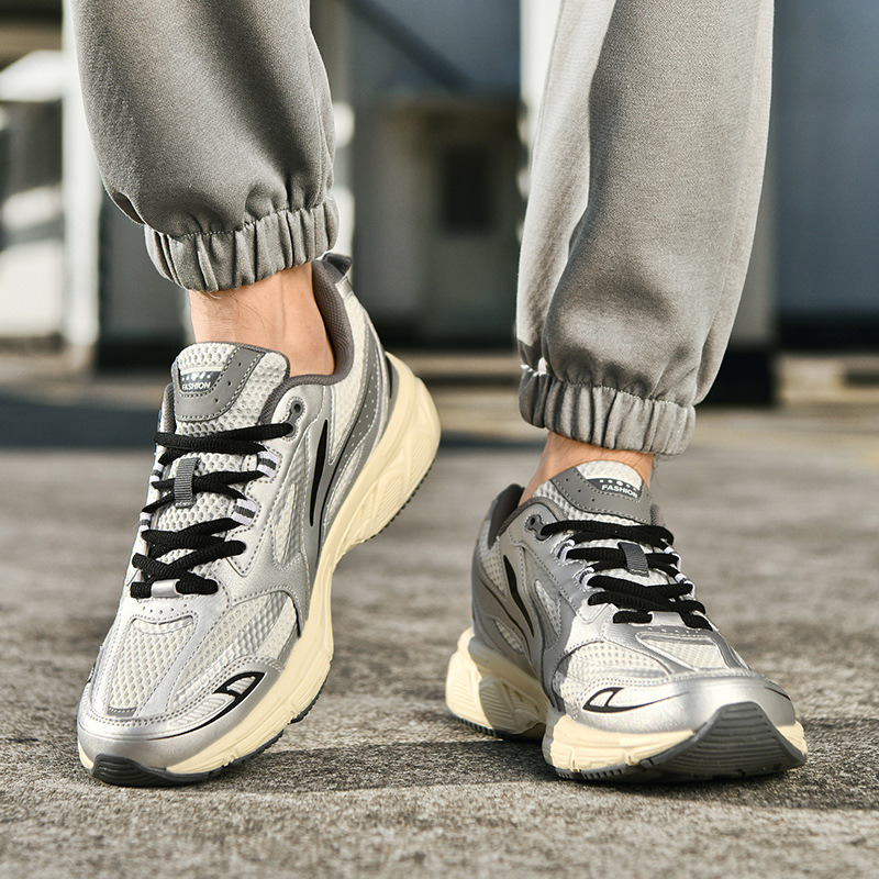 Мужские кроссовки в стиле ретро с двойной амортизацией, толстой подошвой, дышащей сеткой, универсальные кроссовки для фитнеса, которые не утомляют ноги.