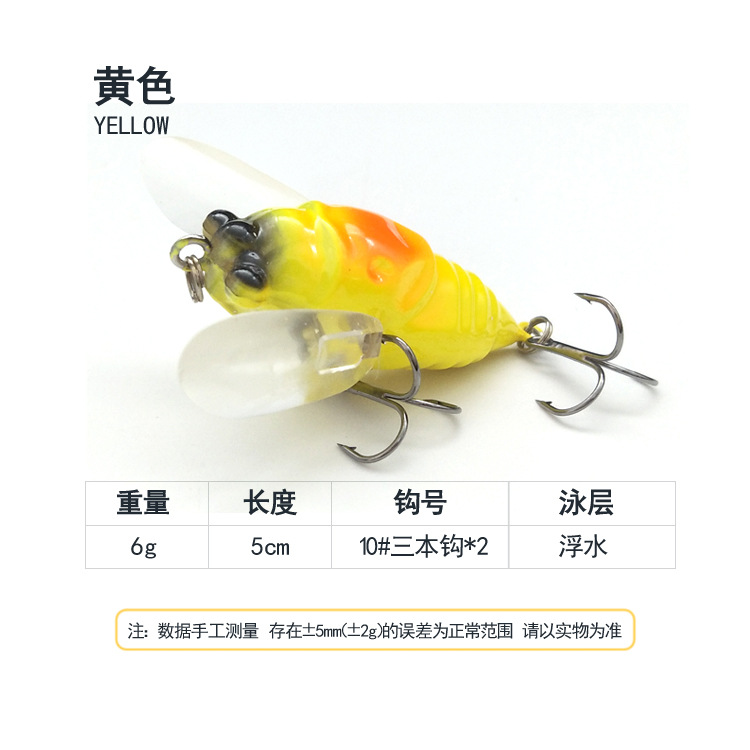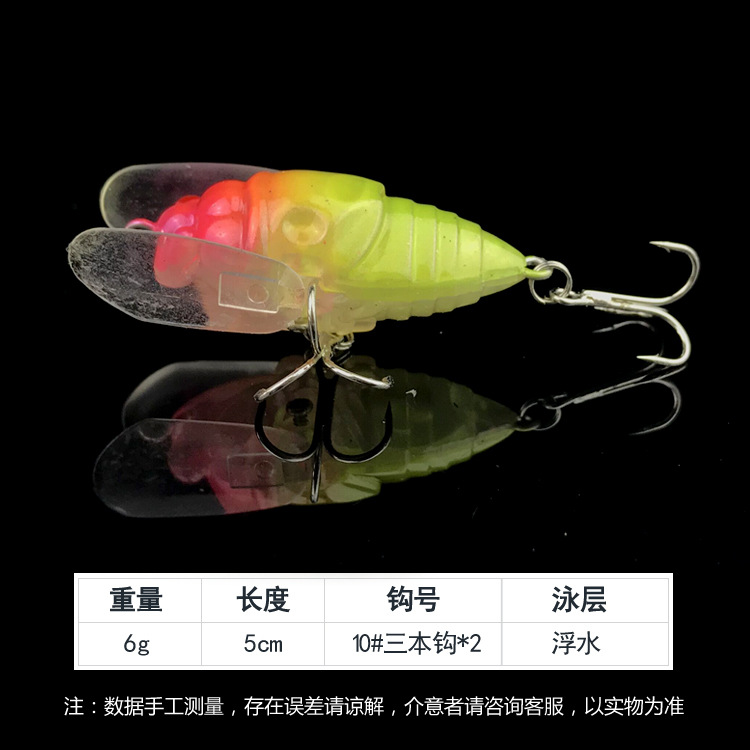 Приманка-имитация цикады 6,3г5см розовая голова белая; Приманка-имитация цикады 6,3г5см лимонно-желтая; Приманка-имитация цикады 6,3г5с прозрачная светящаяся; Приманка-имитация цикады 6,3г5с с красным сетчатым узором; Приманка-имитация цикады 6,3г5с зеленая; Приманка-имитация цикады 6,3г5с, черная голова, красная и желтая; Приманка-имитация цикады 6,3г5с, голова розовая, желтая; Приманка-имитация цикады 6.3g5c темно-серая спинка; Приманка-имитация цикады 6,3г5с светло-желтая спинка; Приманка-имитация цикады 6,3г5с прозрачный коричневый; Приманка-имитация цикады 6,3г5с, оранжевая спинка и белый живот