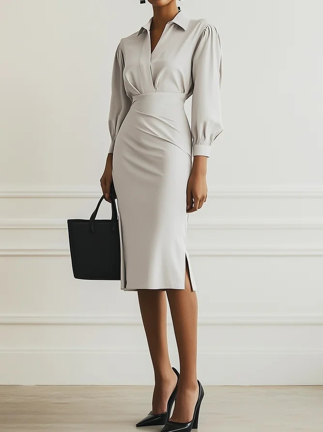 2025 Amazon трансграничный экспорт новое осеннее простое и модное платье с V-образным вырезом, однотонное, с плиссированной талией для женщин