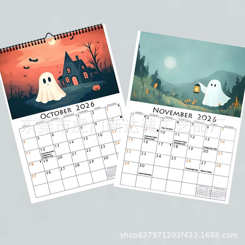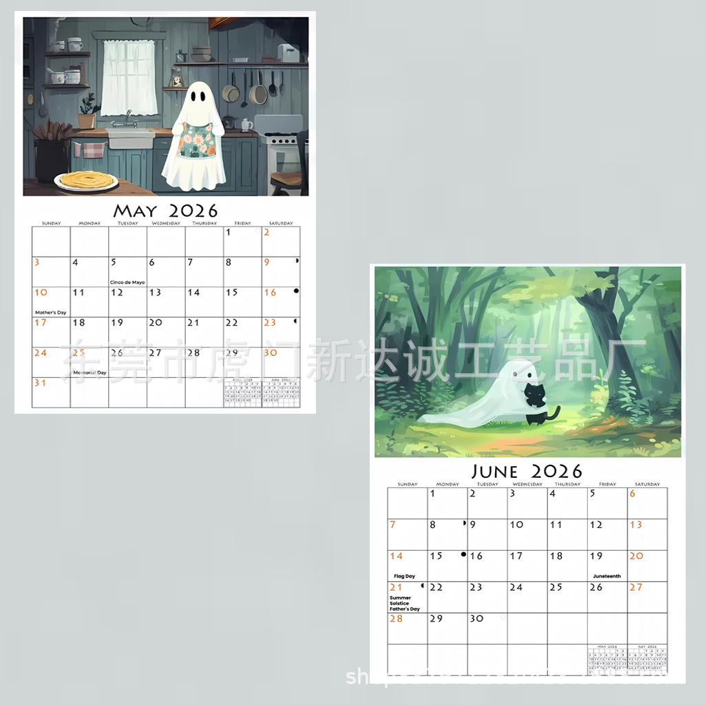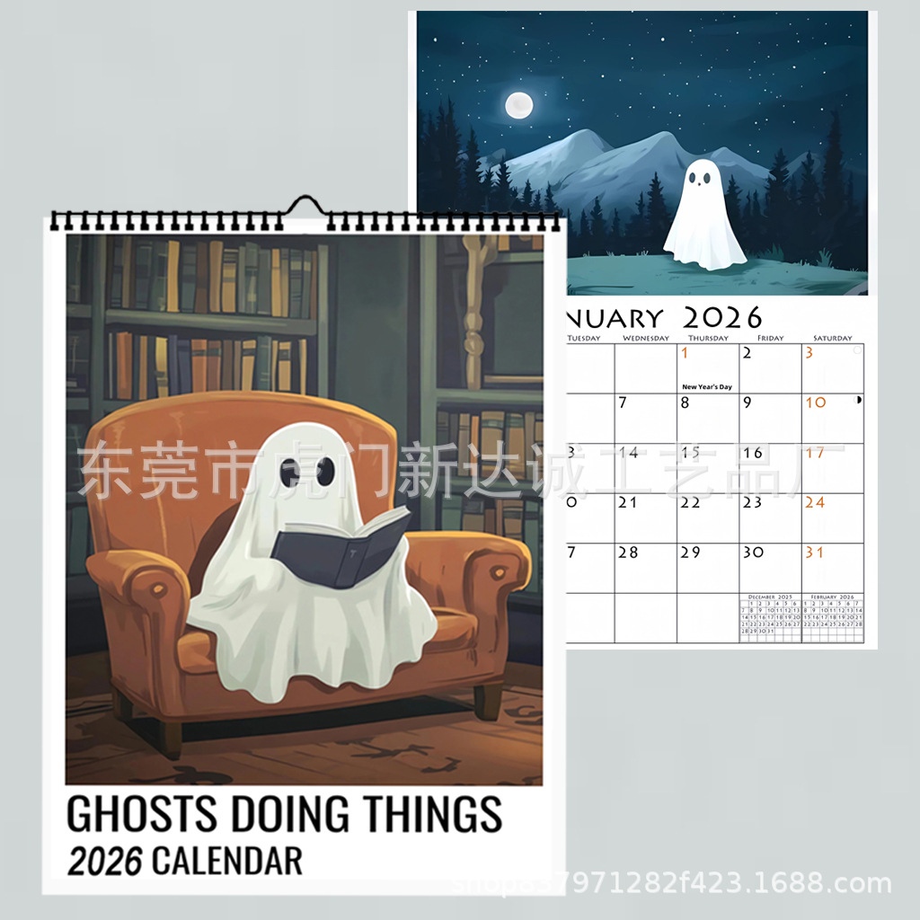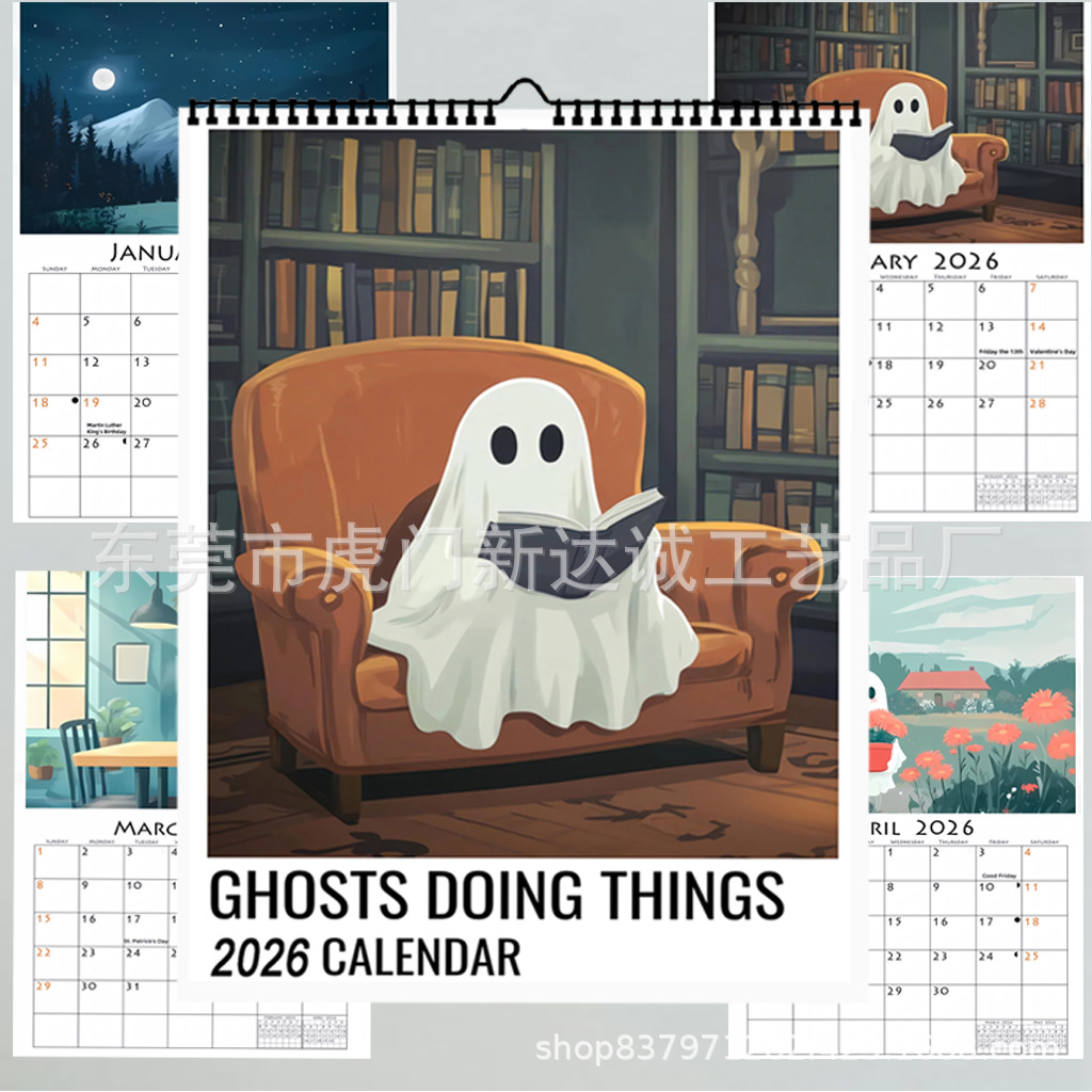 Хит продаж, в наличии календарь-призрак на 2026 год, ежемесячный настенный календарь, милая календарь-призрак на 2026 год.
