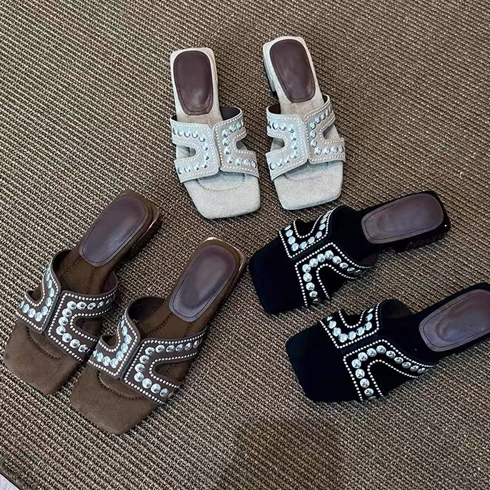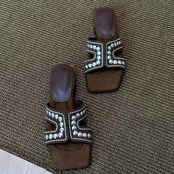 Версия из овчины ~ новые летние модные тапочки, универсальные ретро-сандалии на одной ноге на толстом каблуке для женщин с квадратным носком.