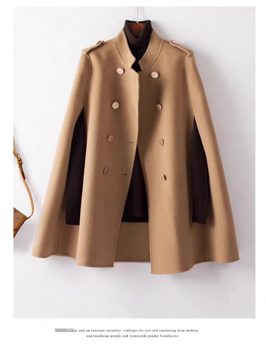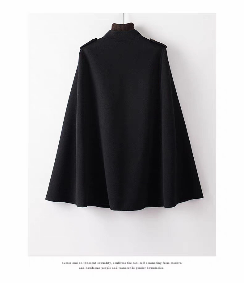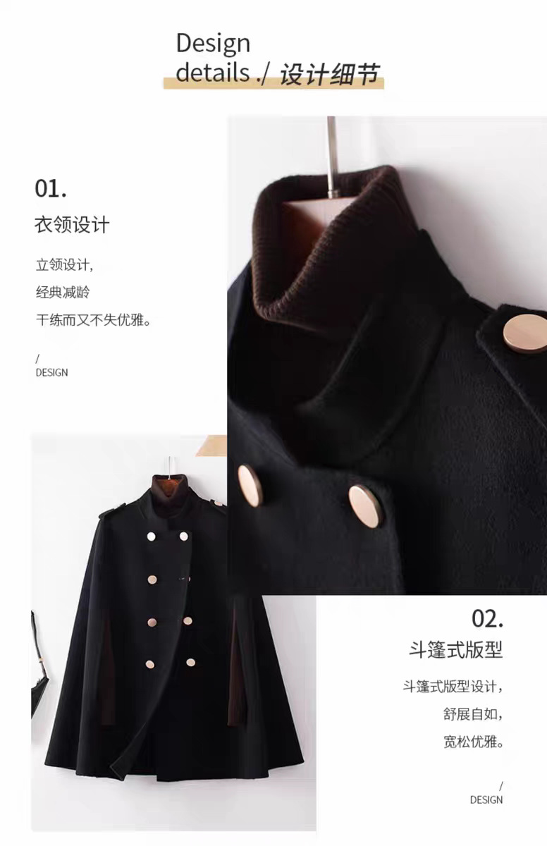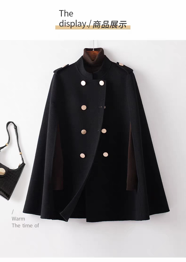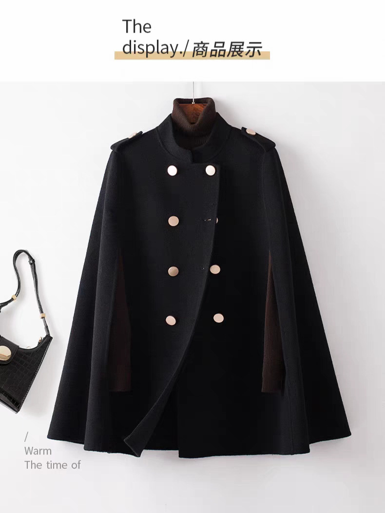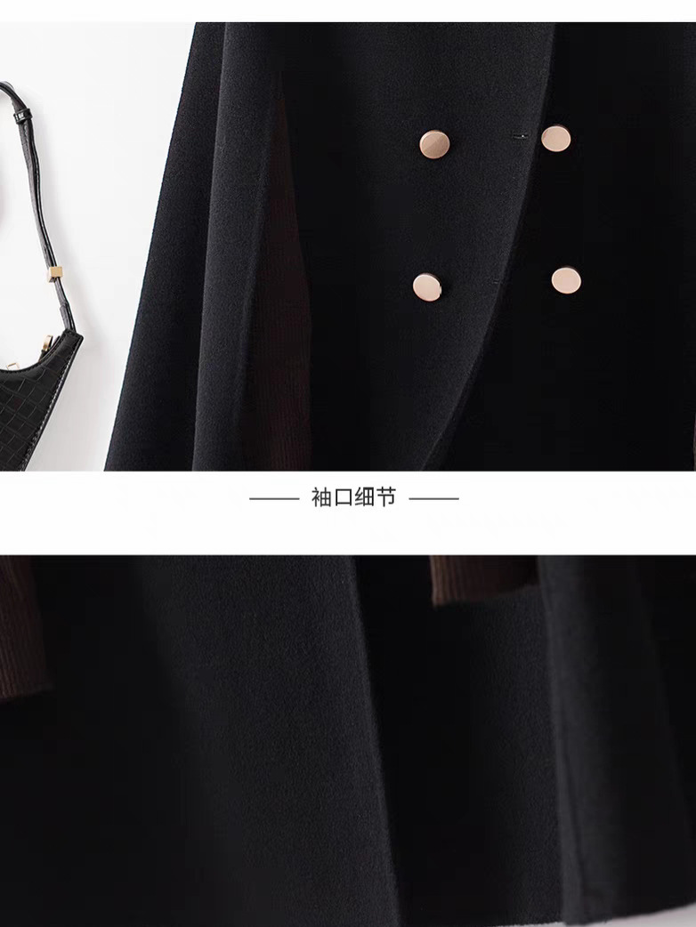 Черная накидка, двустороннее кашемировое пальто, женская накидка 2025, осенне-зимняя верхняя одежда из маленькой австралийской шерсти