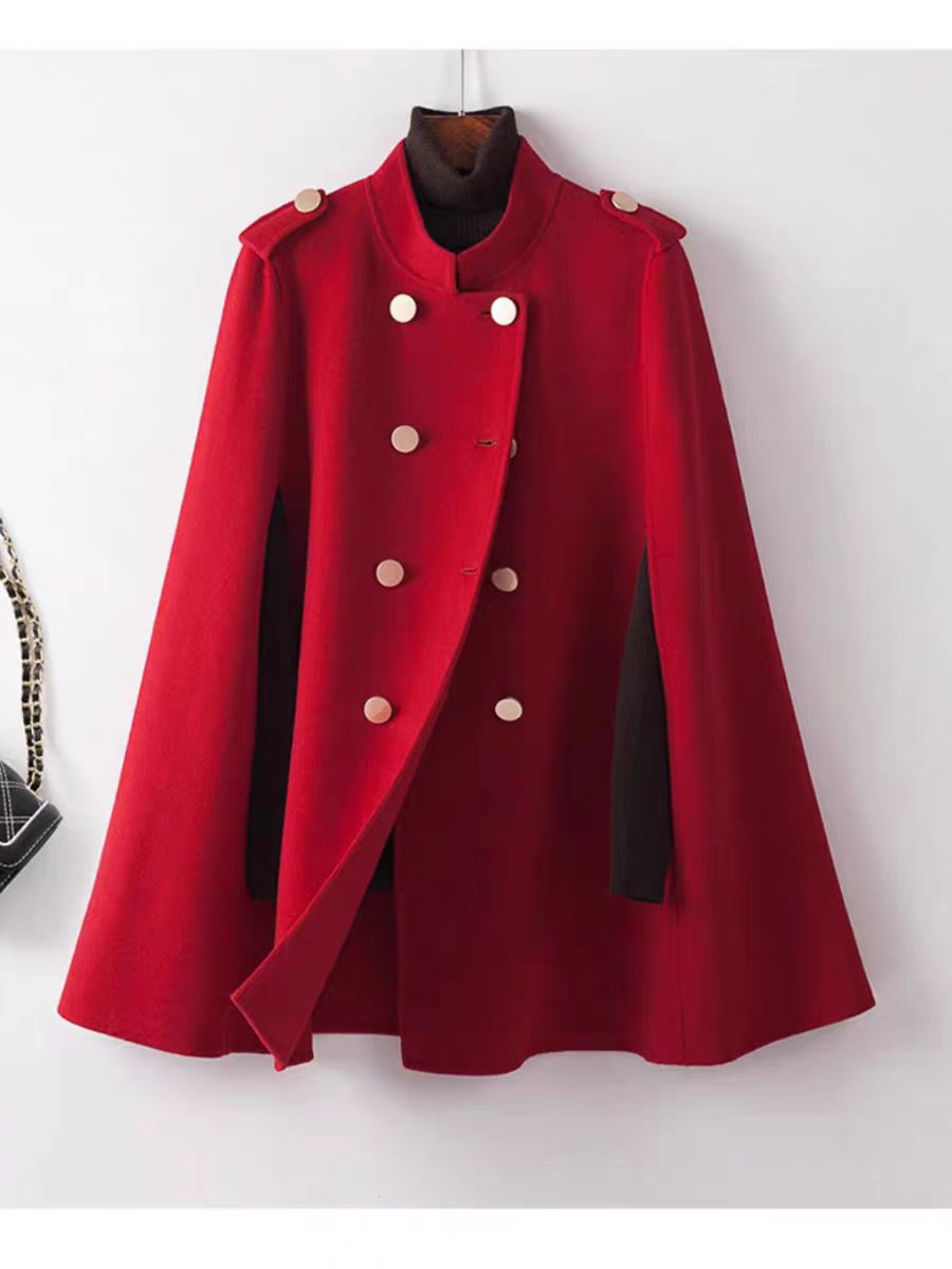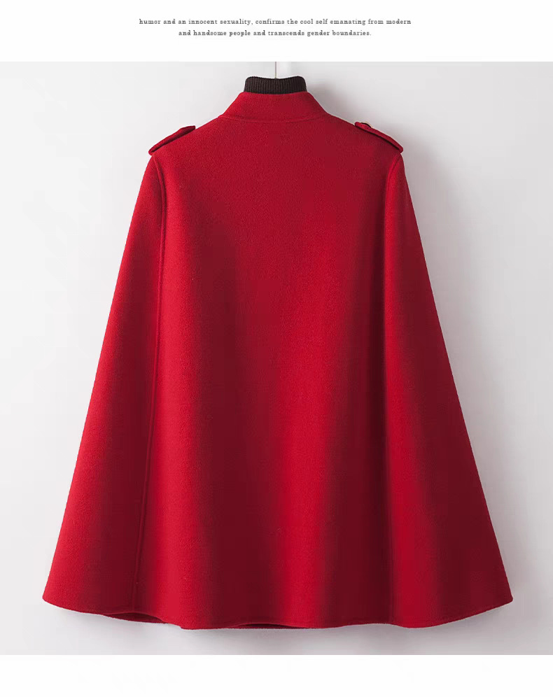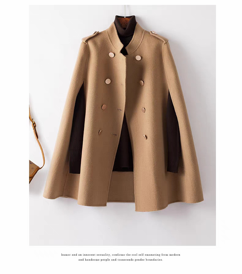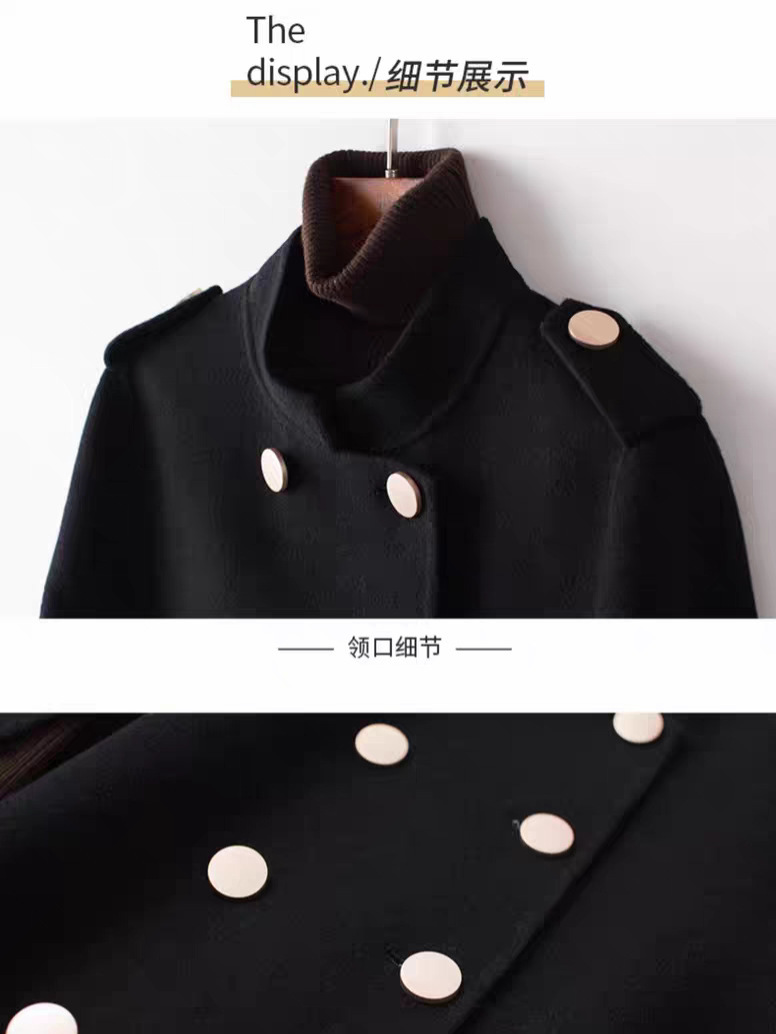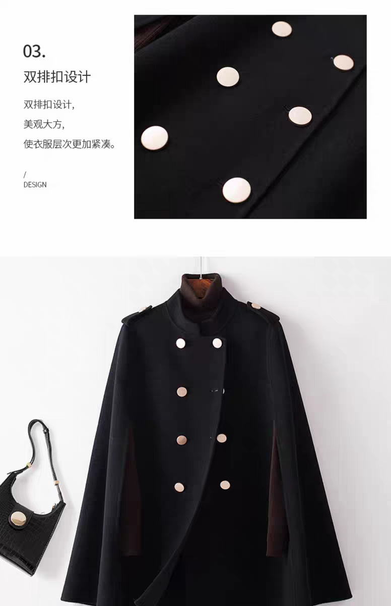 Черная накидка, двустороннее кашемировое пальто, женская накидка 2025, осенне-зимняя верхняя одежда из маленькой австралийской шерсти