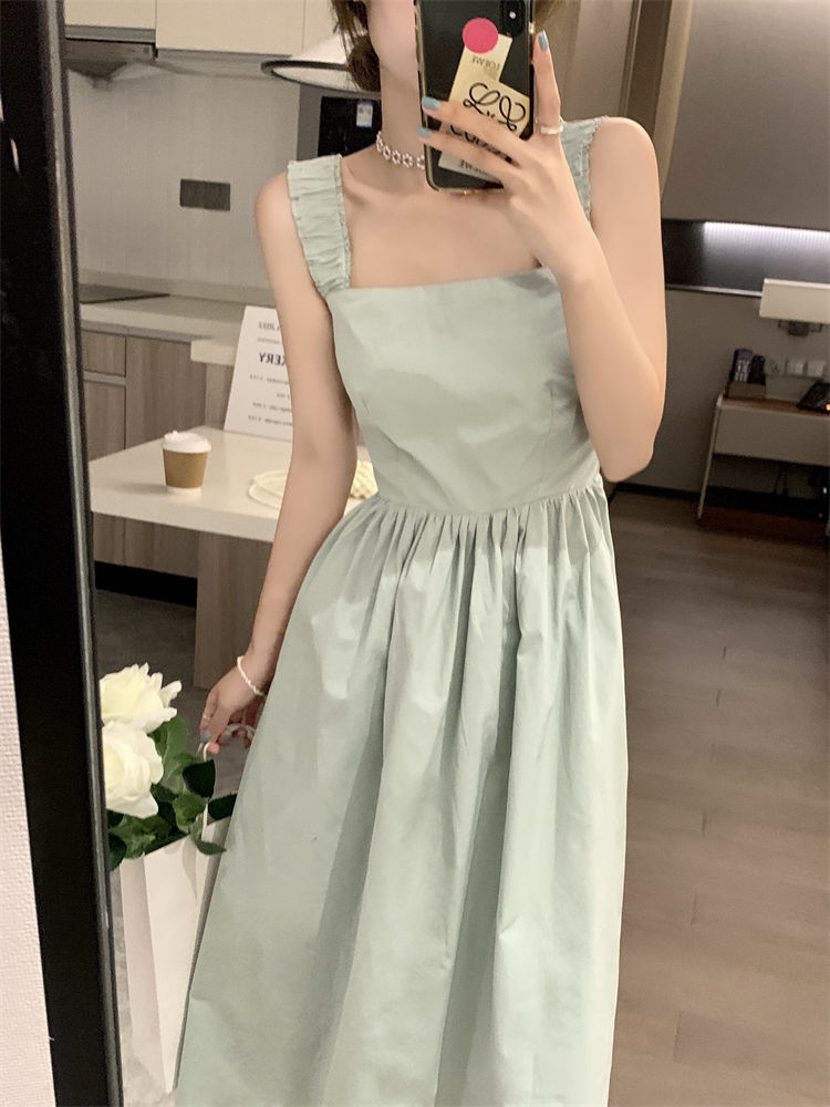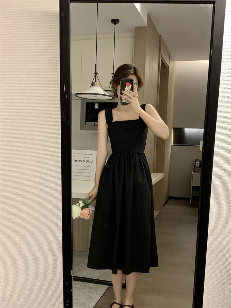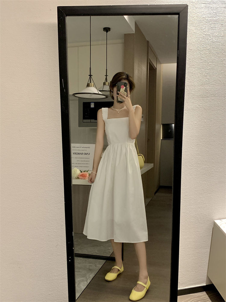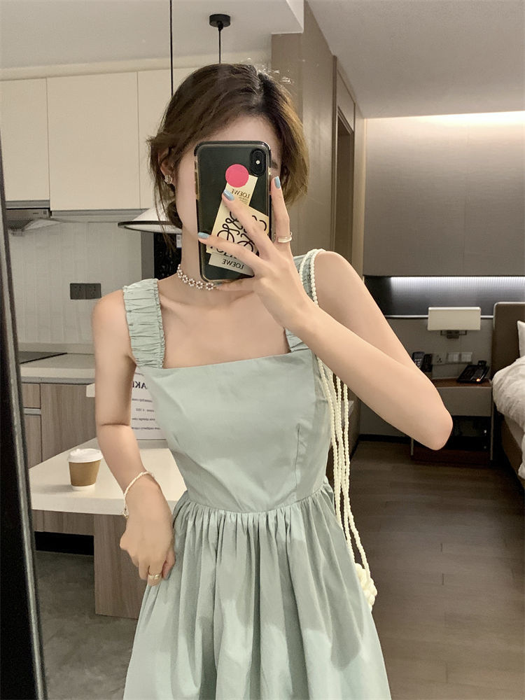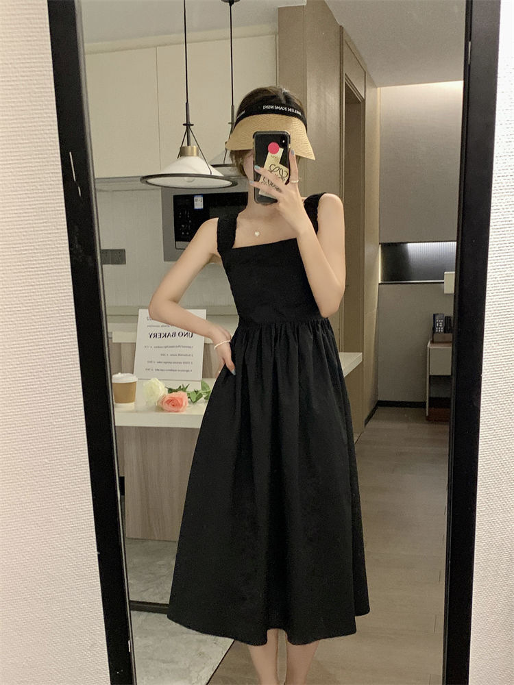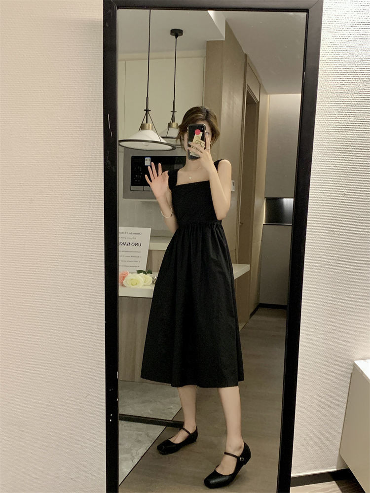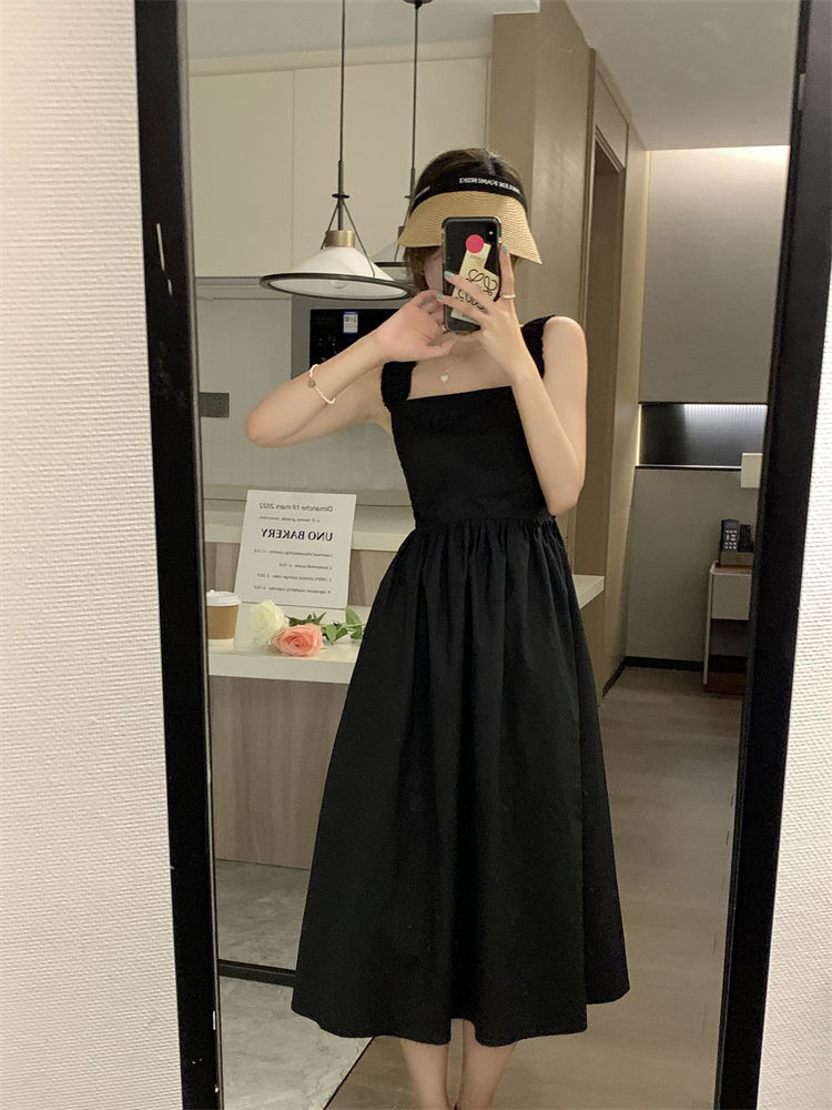 Летнее женское платье-сарафан без рукавов с квадратным вырезом, новая модель 2025 года, нишевый дизайн, юбка с эффектом стройности талии