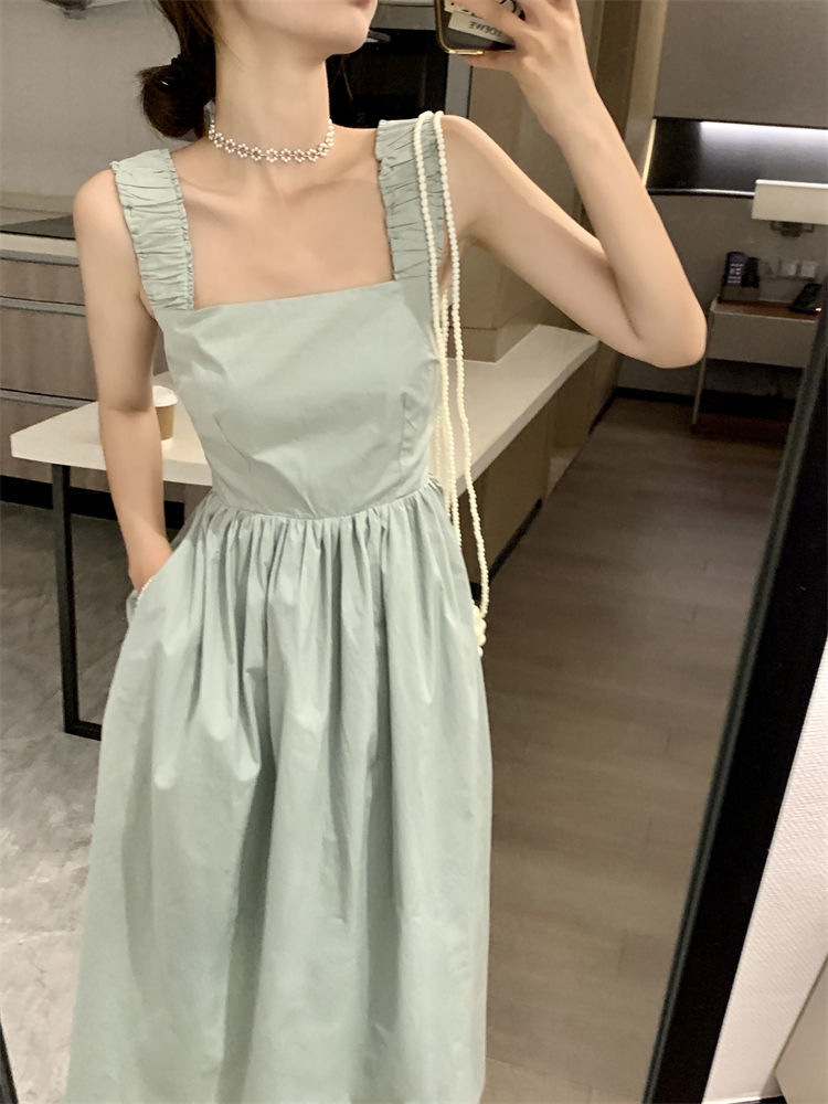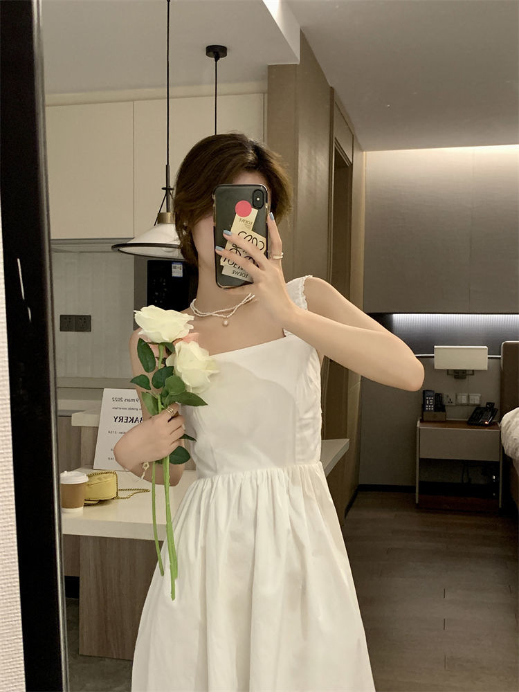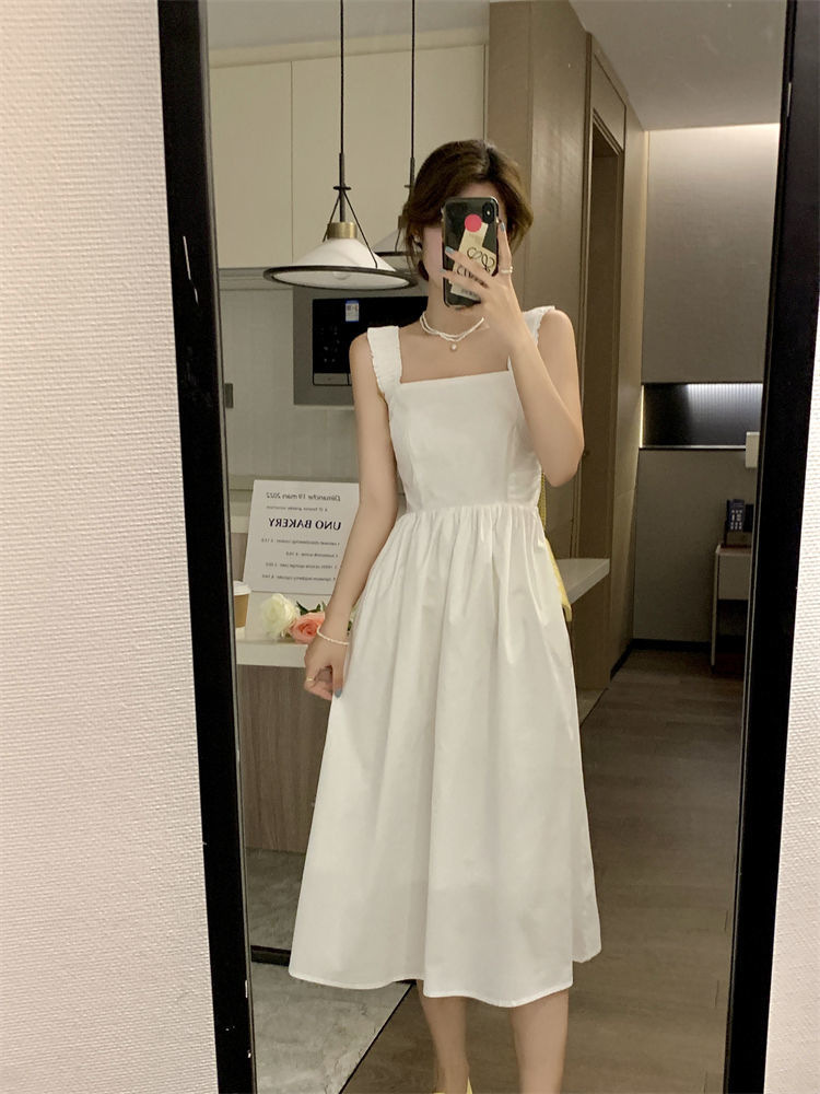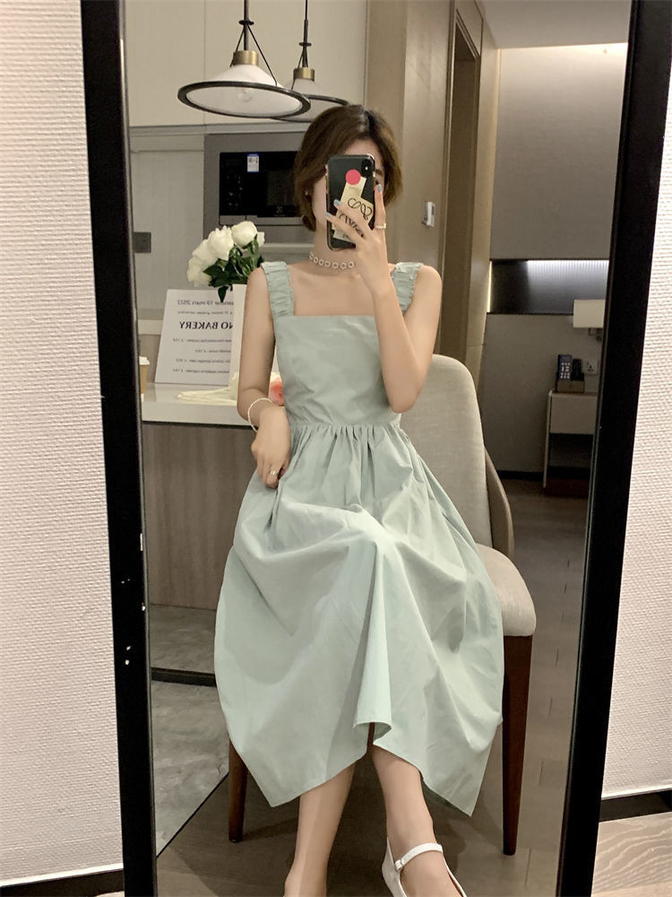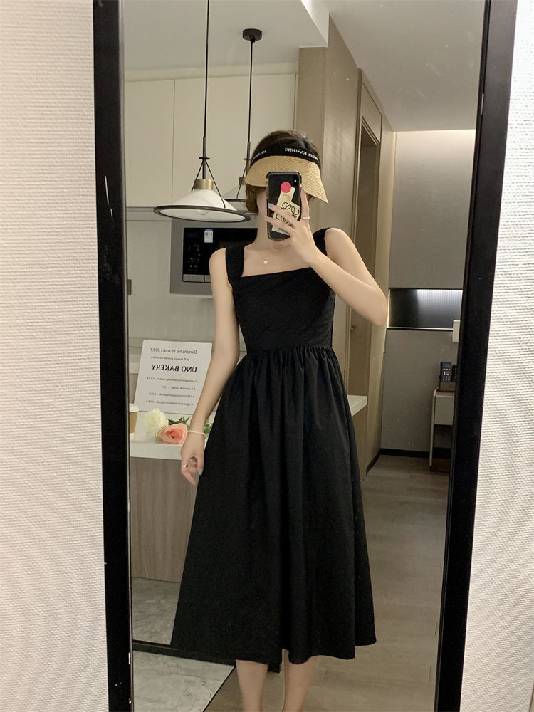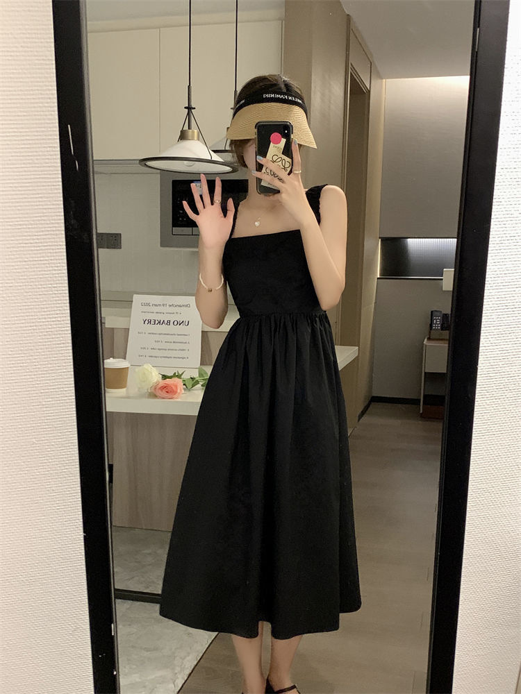 Летнее женское платье-сарафан без рукавов с квадратным вырезом, новая модель 2025 года, нишевый дизайн, юбка с эффектом стройности талии