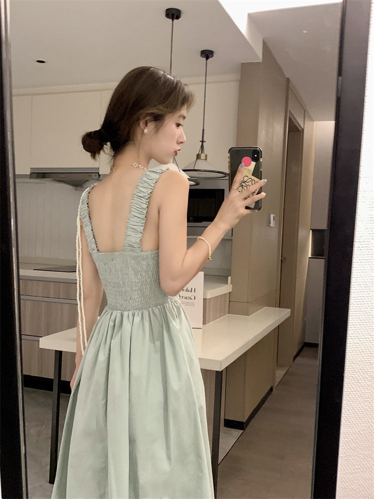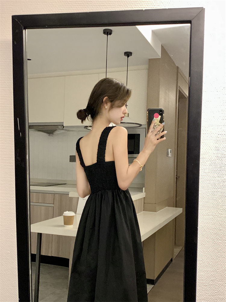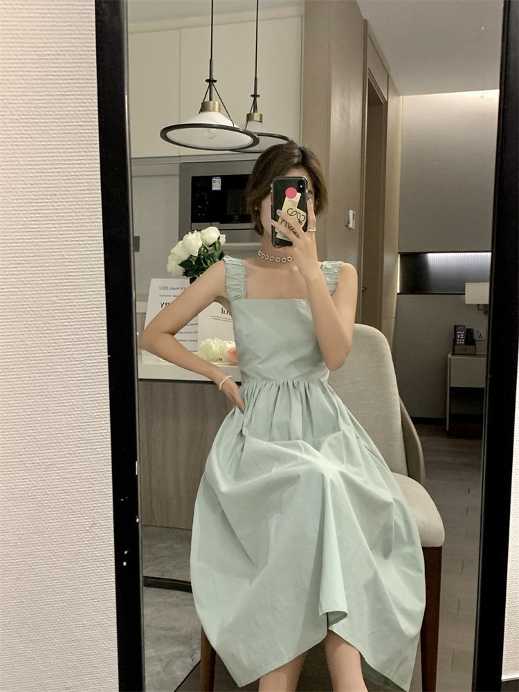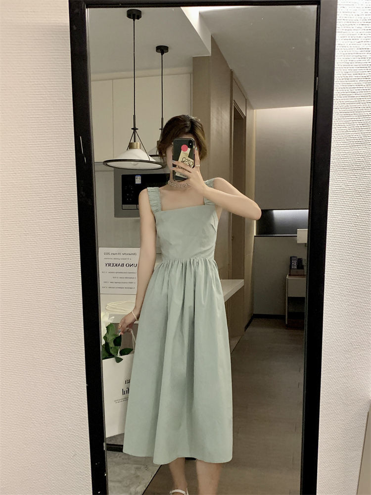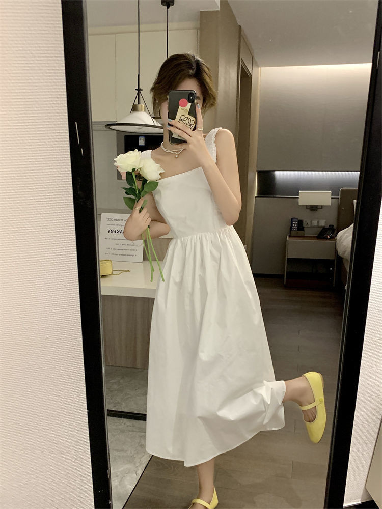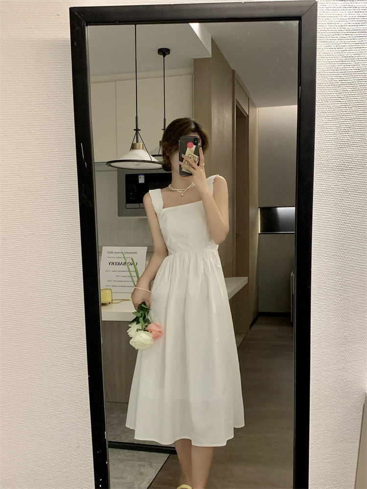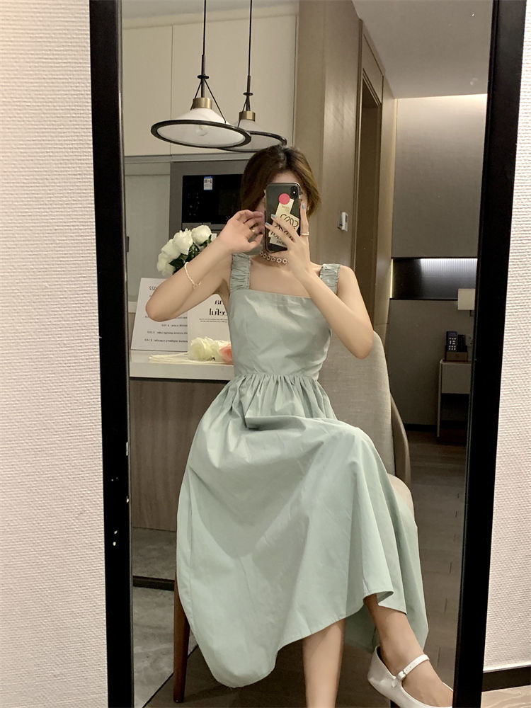 Летнее женское платье-сарафан без рукавов с квадратным вырезом, новая модель 2025 года, нишевый дизайн, юбка с эффектом стройности талии
