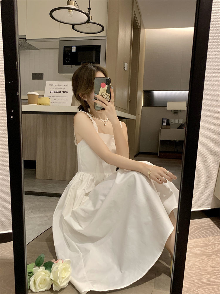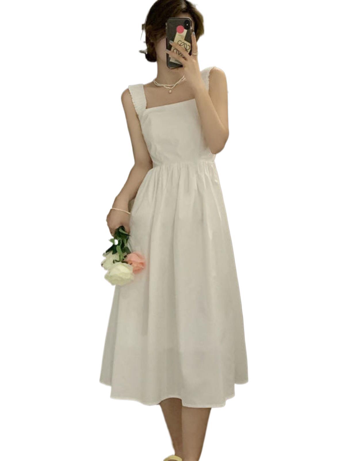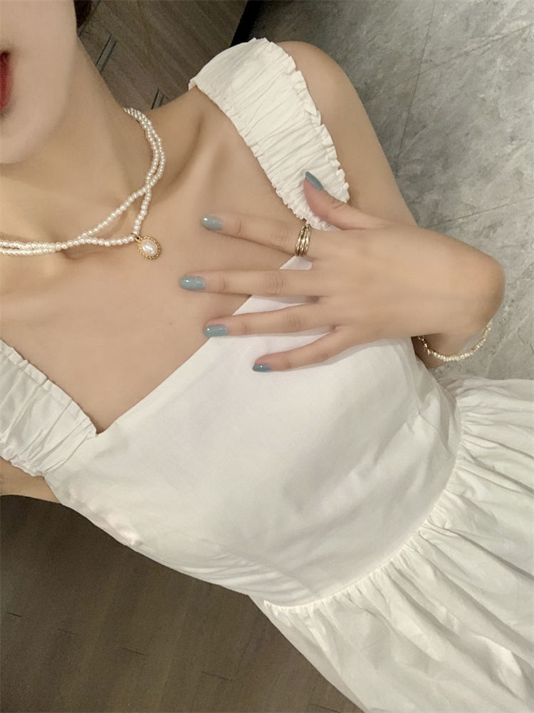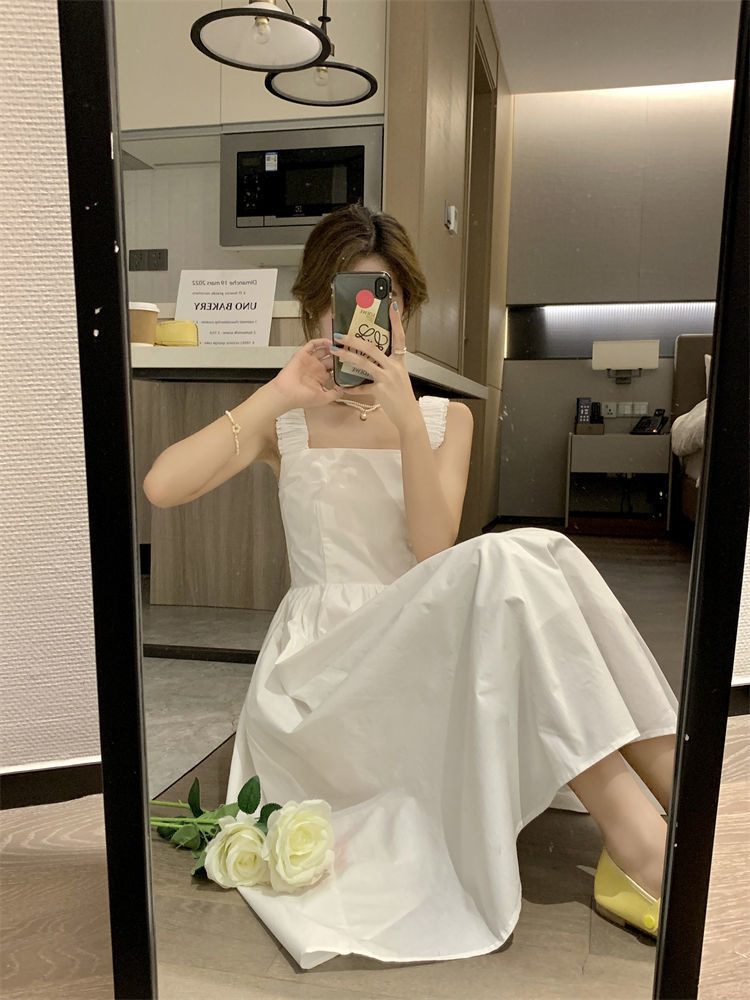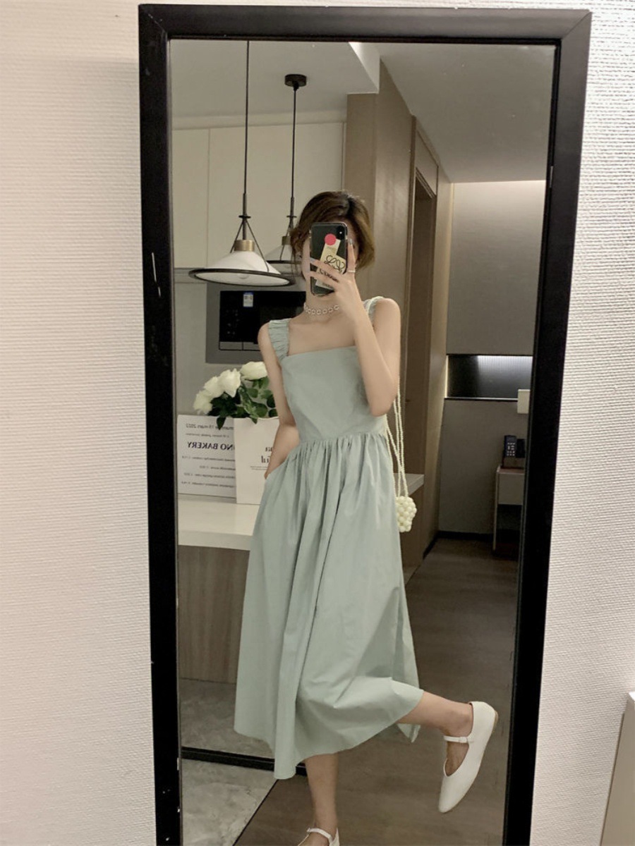 Летнее женское платье-сарафан без рукавов с квадратным вырезом, новая модель 2025 года, нишевый дизайн, юбка с эффектом стройности талии