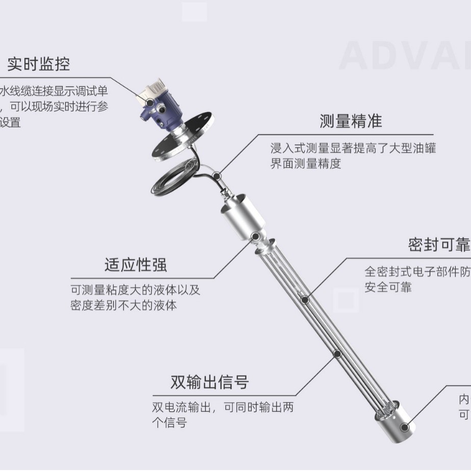 Погружной прибор для измерения масляно-водной интерфейсной поверхности, прибор для измерения радиочастотного сопротивления масляно-водной интерфейсной поверхности, полностью герметичные цифровые компоненты, водонепроницаемые и маслостойкие.