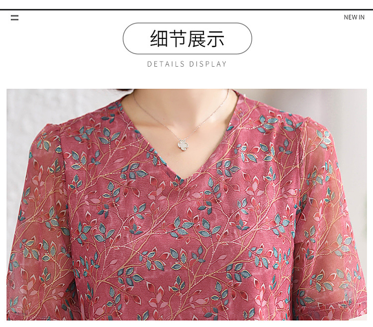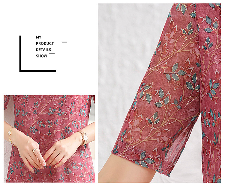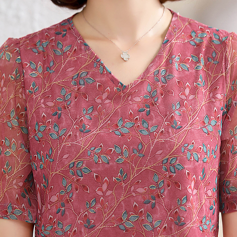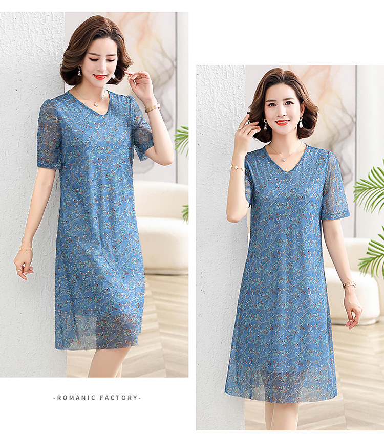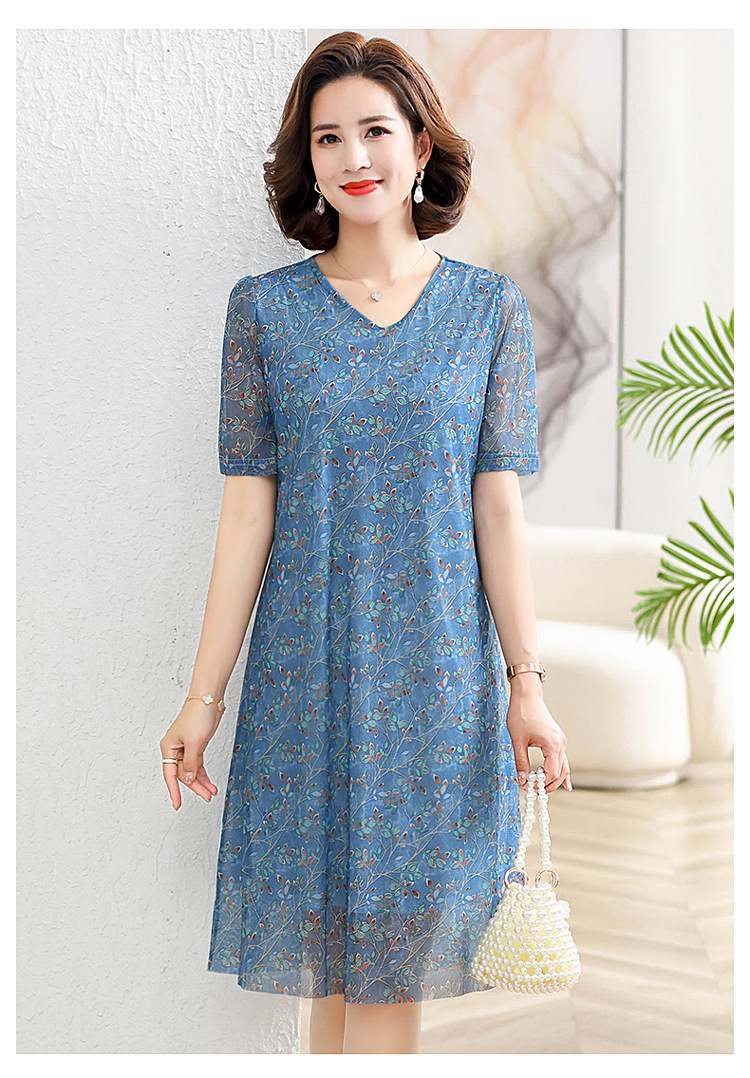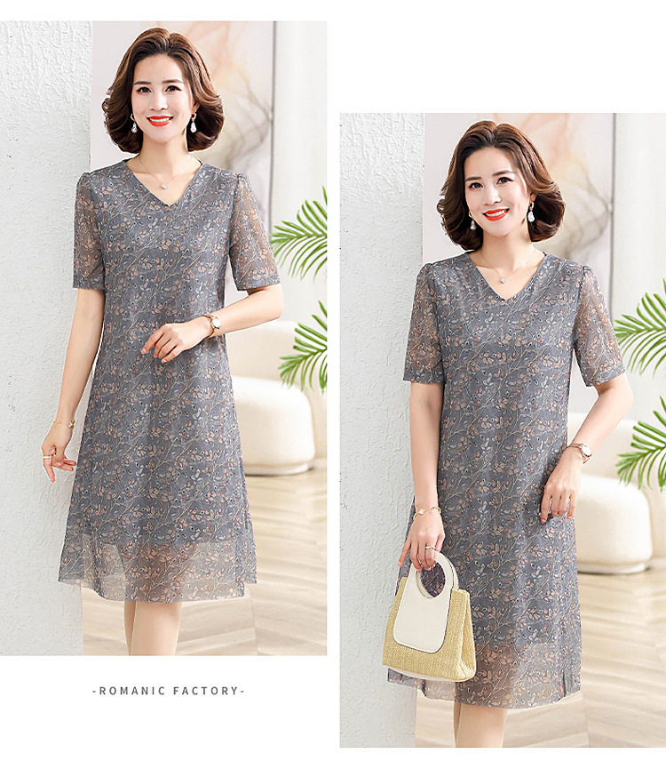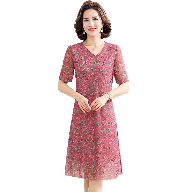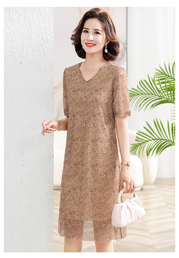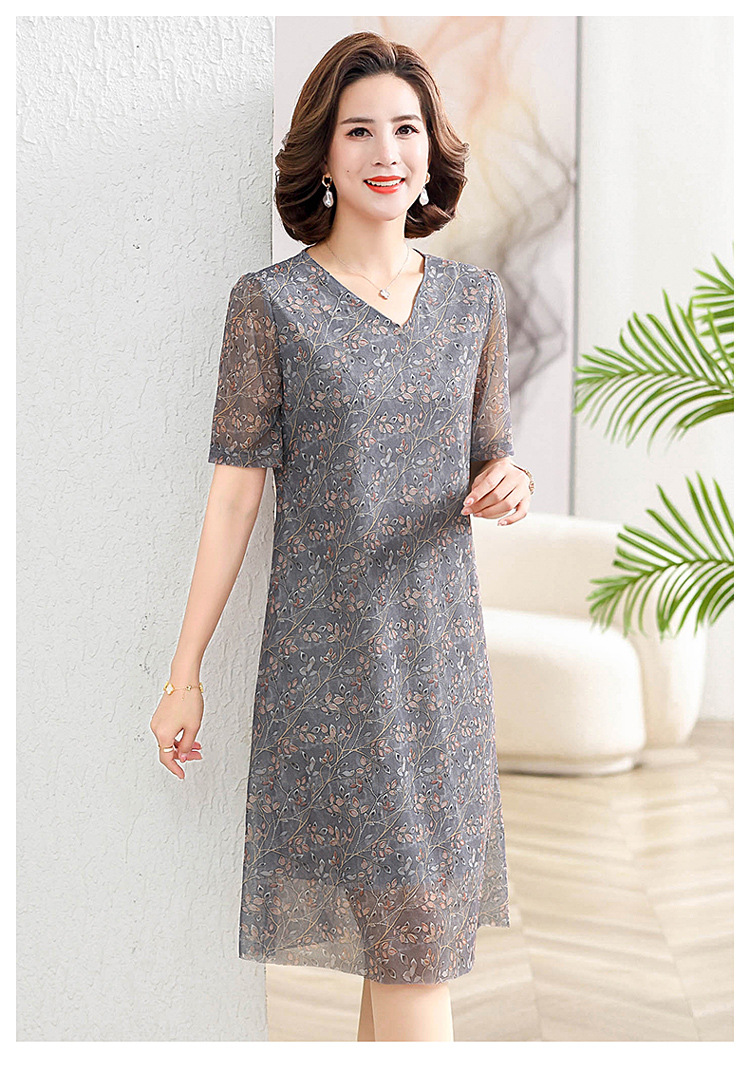 Новая летняя одежда для мам, платье с v-образным вырезом и короткими рукавами, чтобы уменьшить возраст и похудеть, модная юбка с цветочным принтом для женщин среднего и пожилого возраста.
