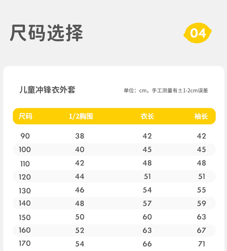 (4)尺码:90码、100码、110码、120码、130码、140码、150码、160码、170码