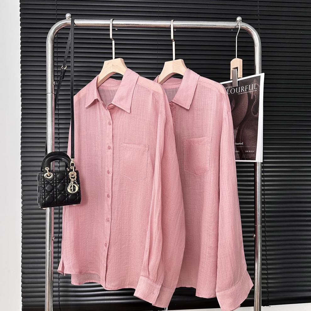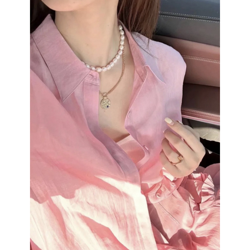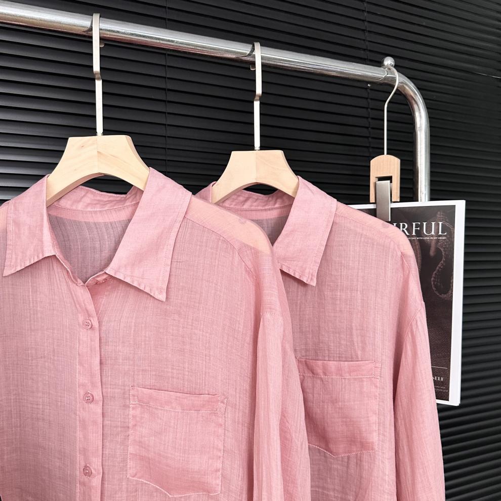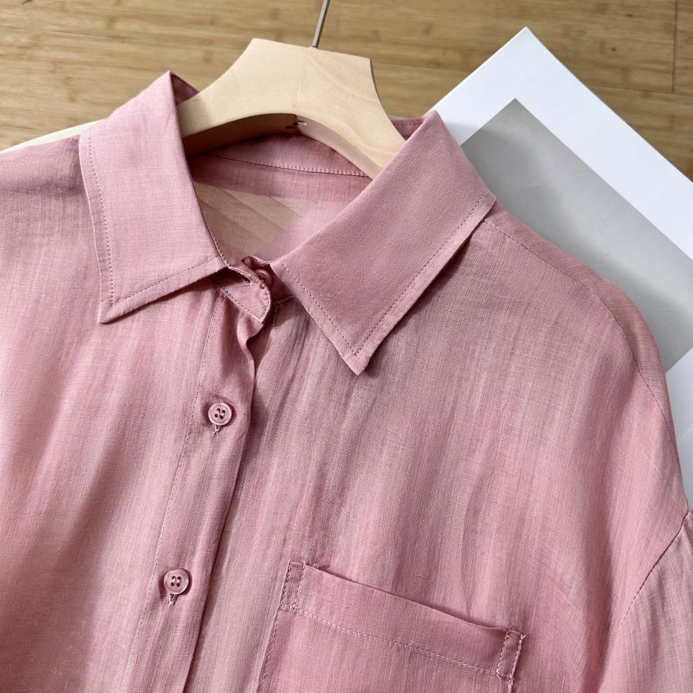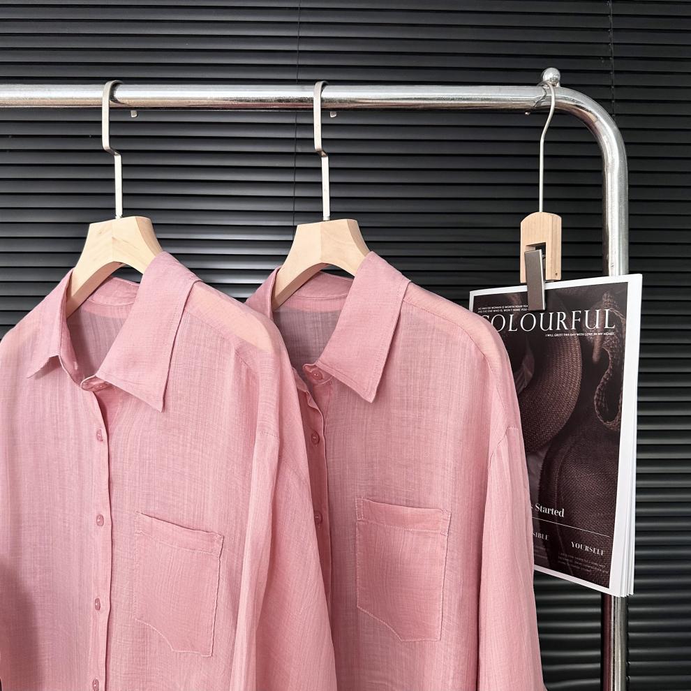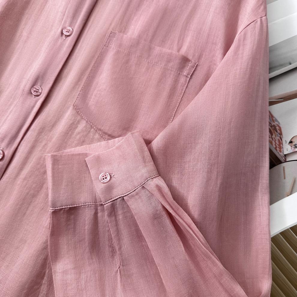 YS8 розово-розовая роскошная летняя новая женская рубашка из рами нежно-розового цвета с защитой от солнца