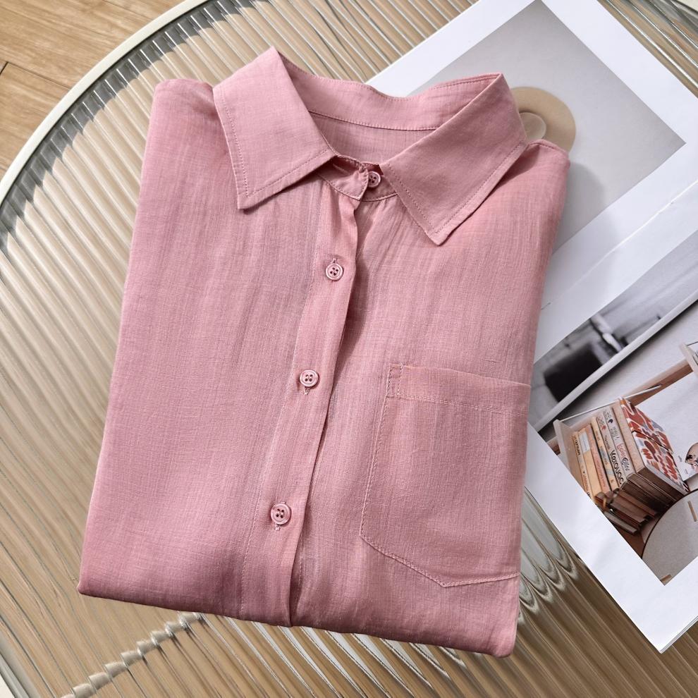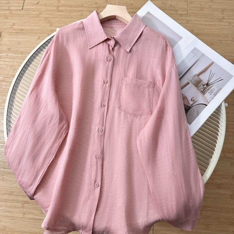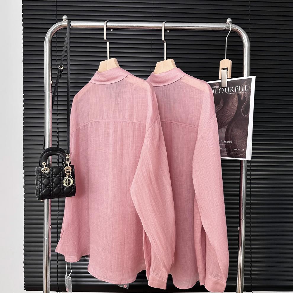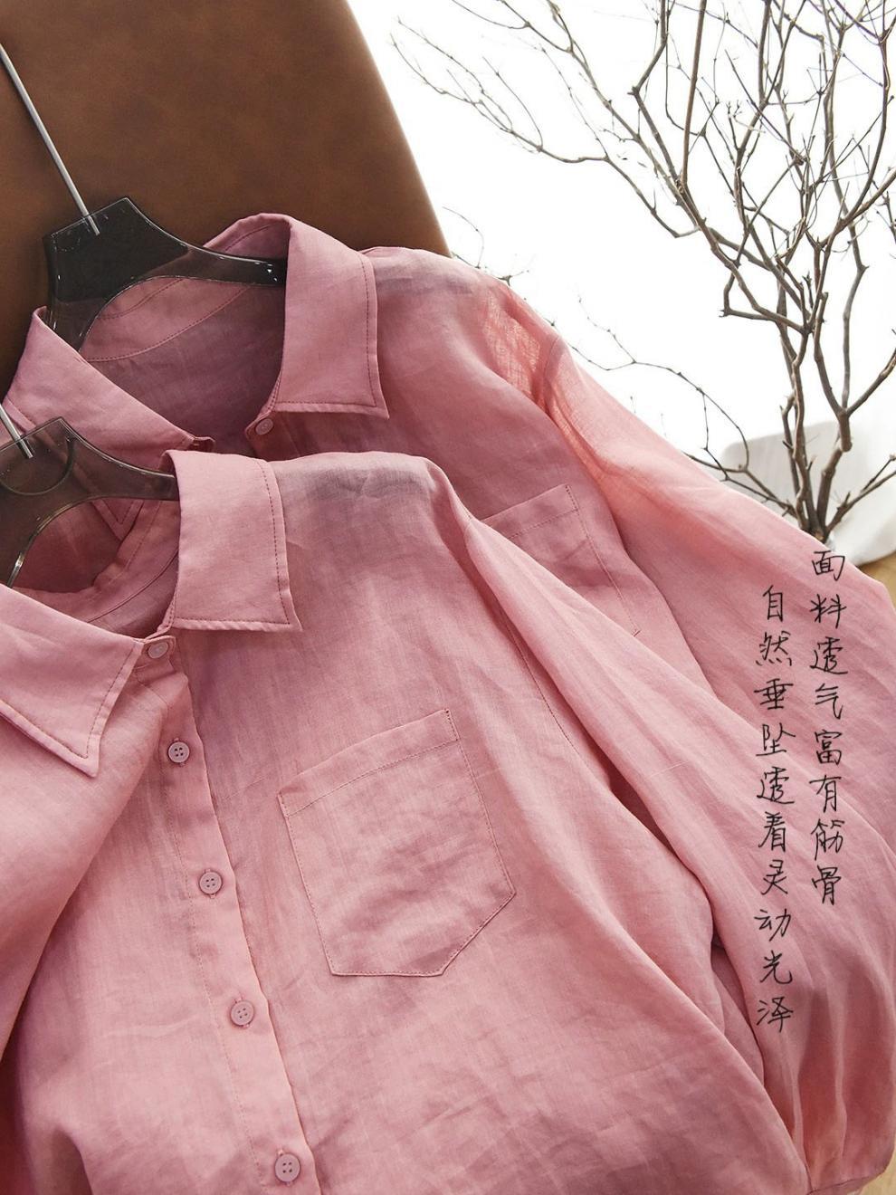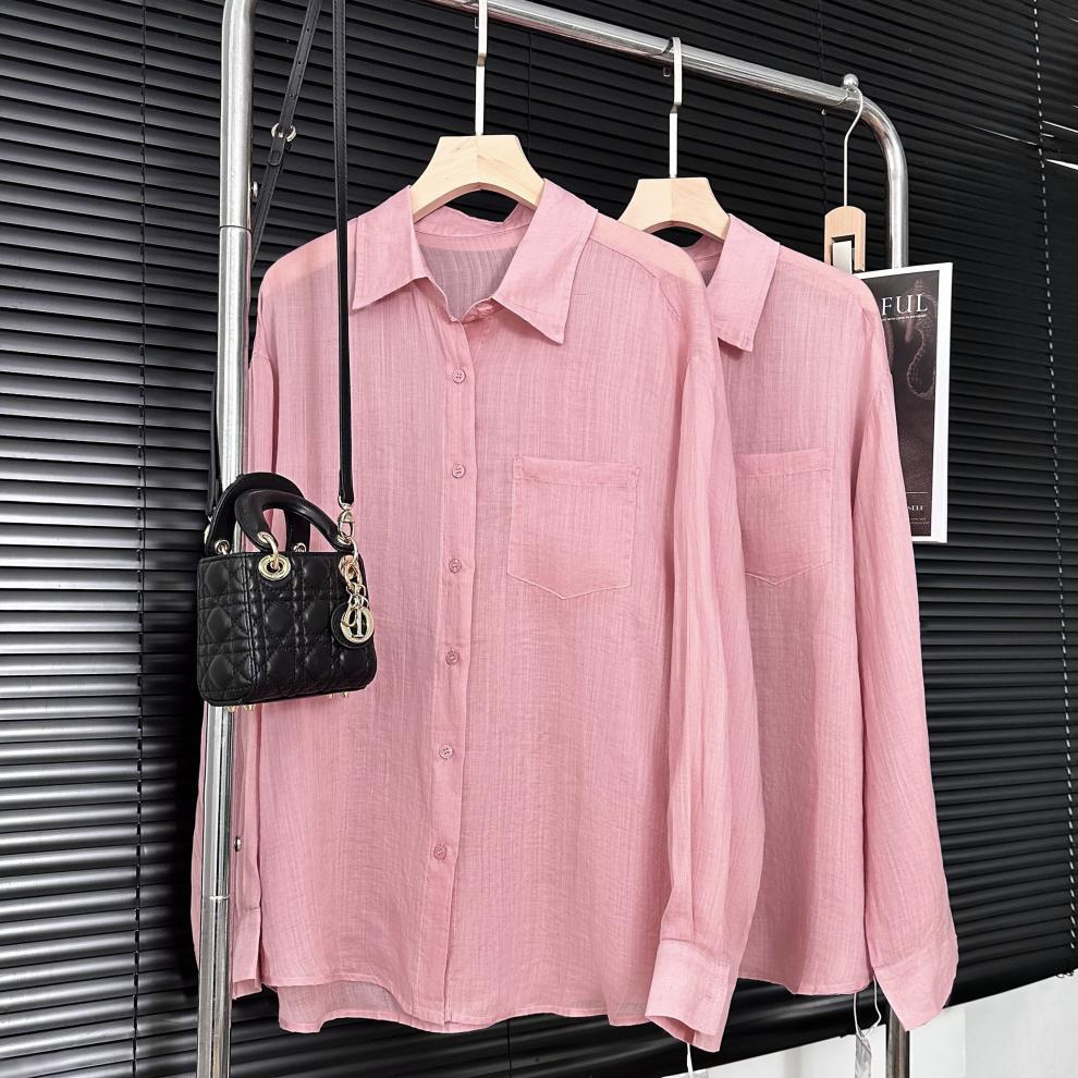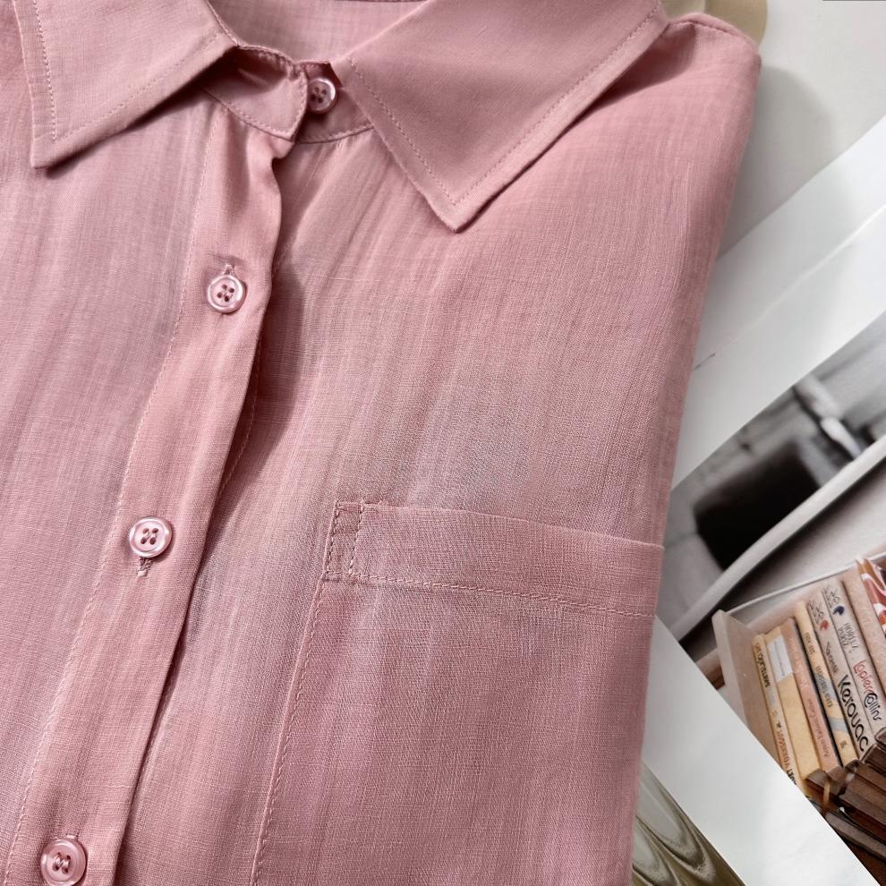 YS8 розово-розовая роскошная летняя новая женская рубашка из рами нежно-розового цвета с защитой от солнца