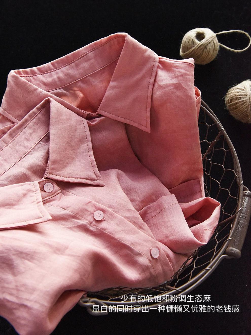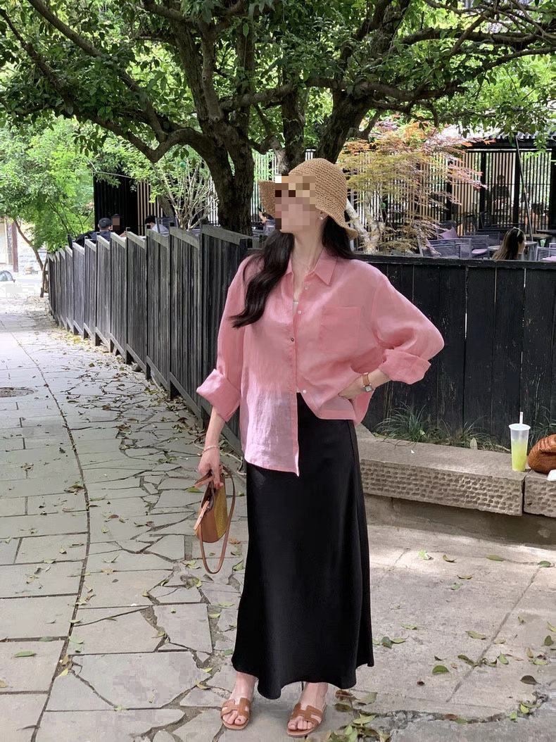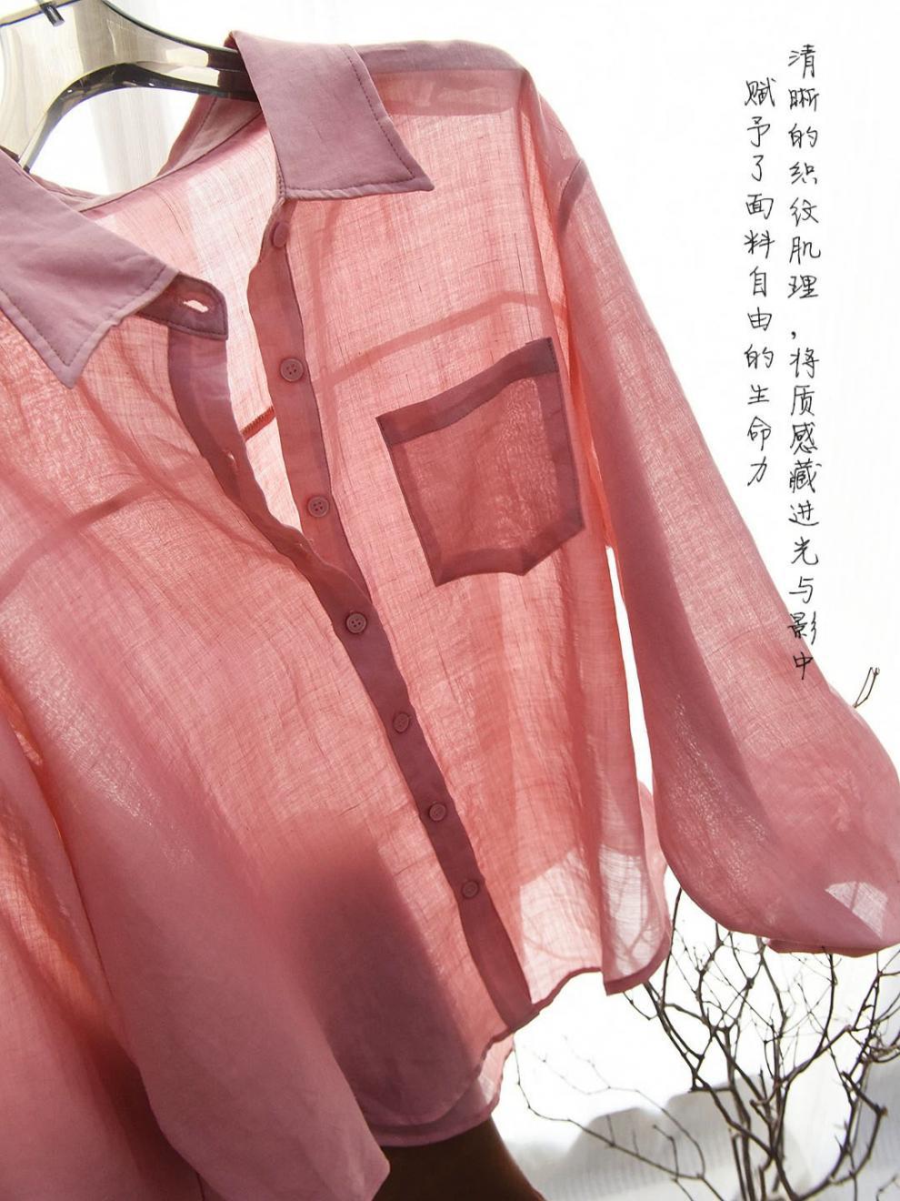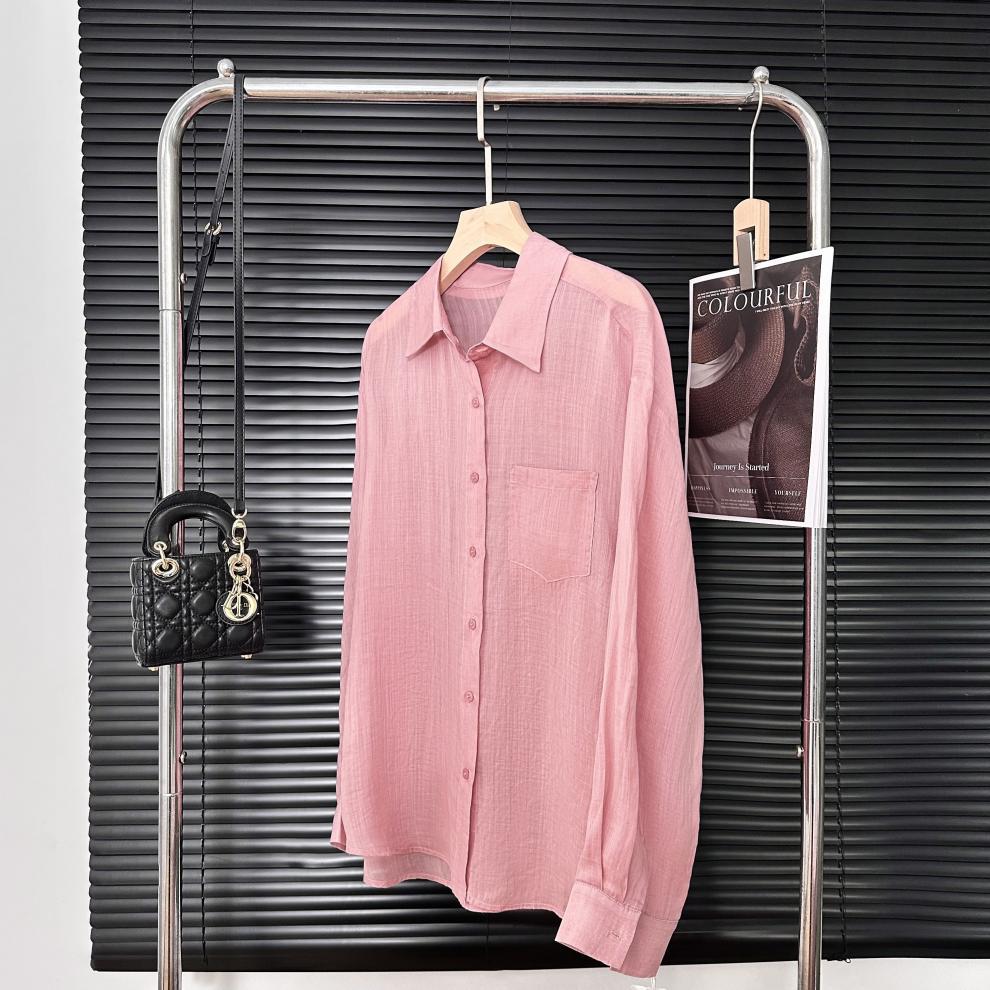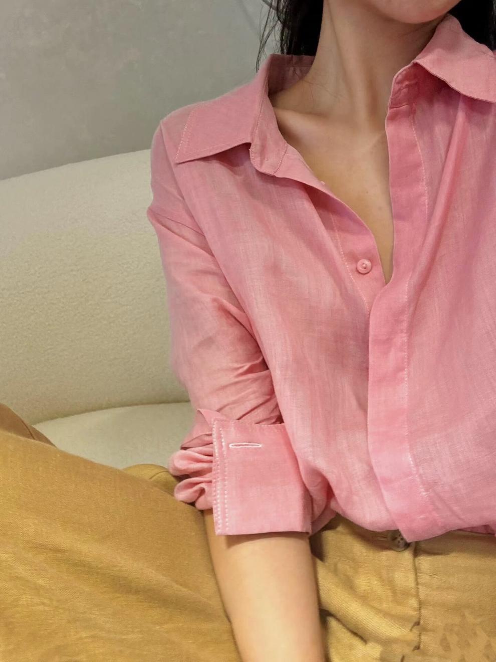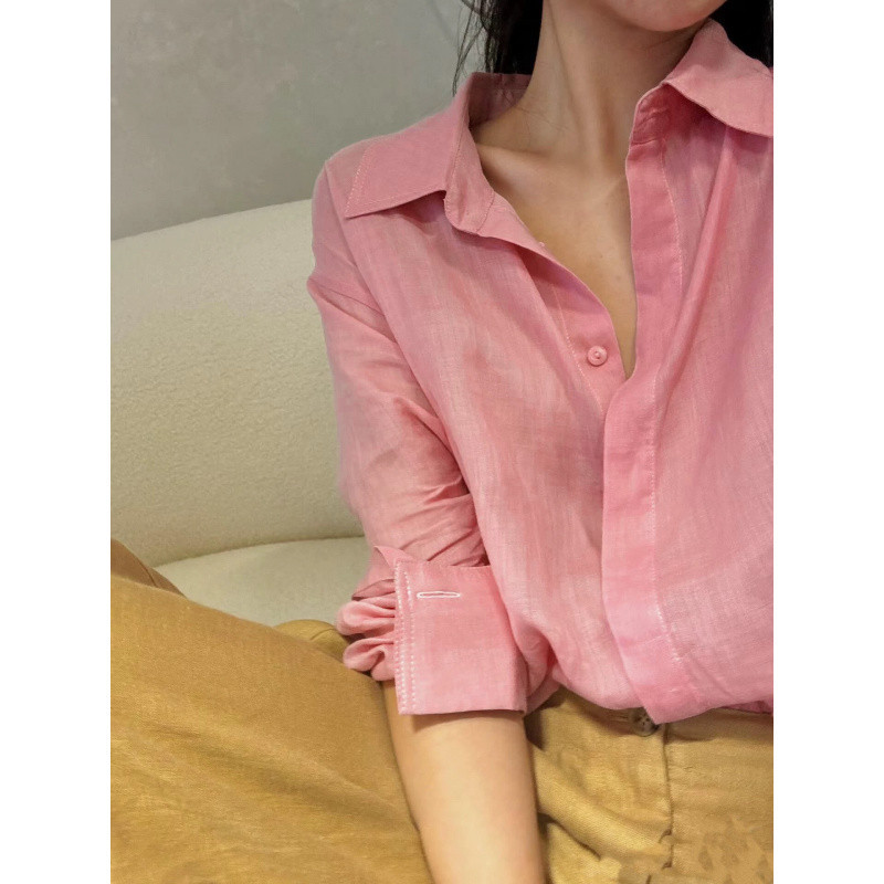 YS8 розово-розовая роскошная летняя новая женская рубашка из рами нежно-розового цвета с защитой от солнца