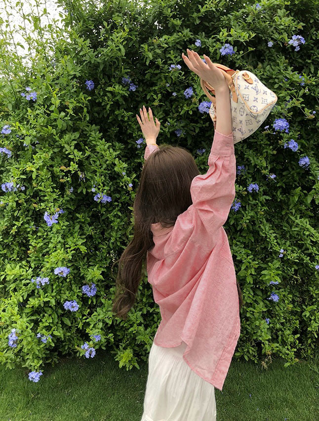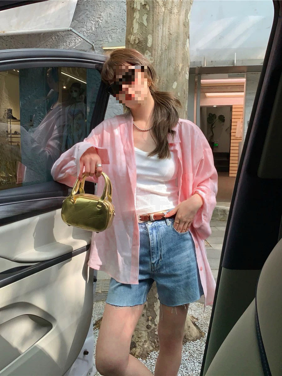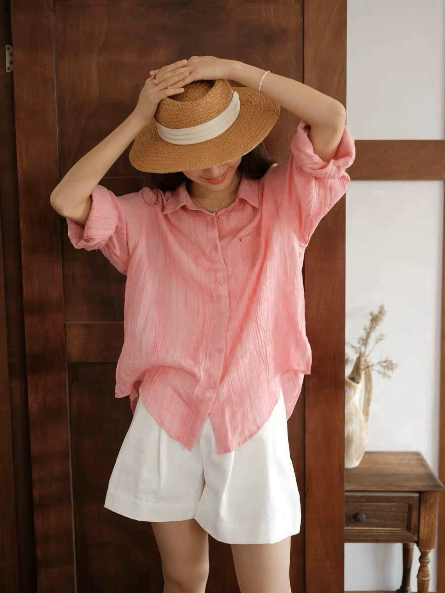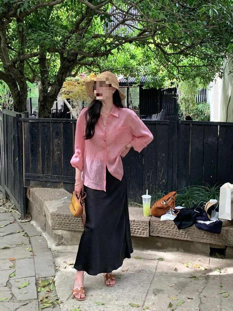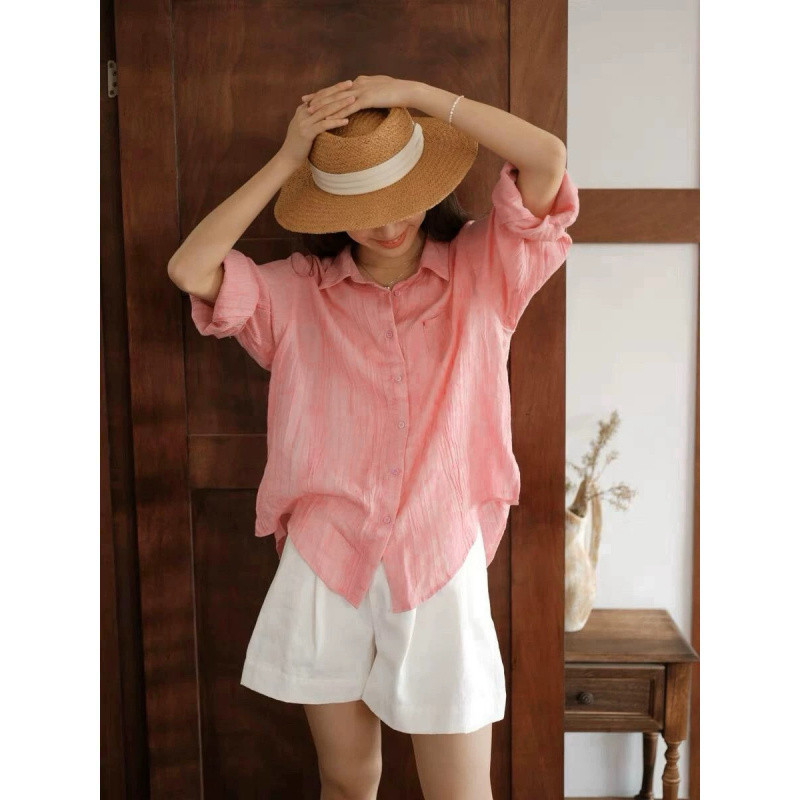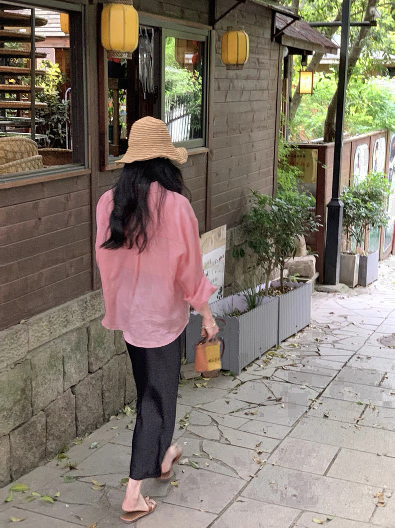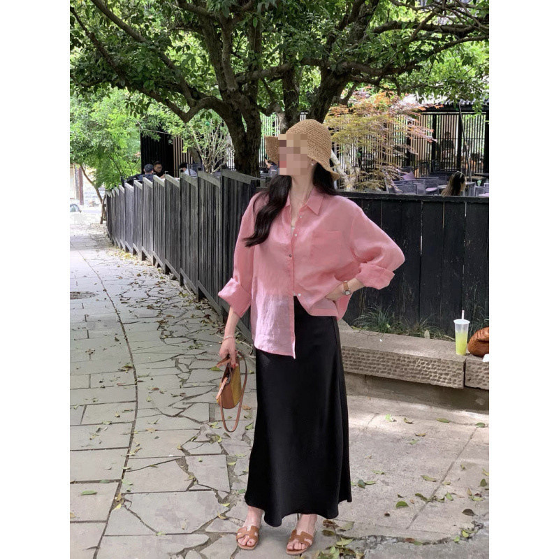 YS8 розово-розовая роскошная летняя новая женская рубашка из рами нежно-розового цвета с защитой от солнца