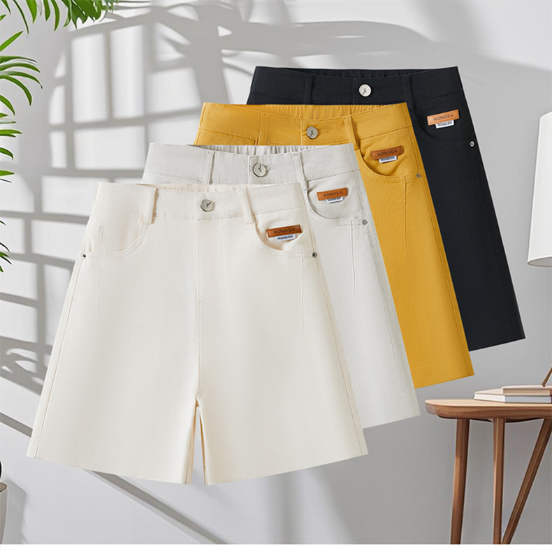 Летняя тонкая утягивающая верхняя одежда с высокой талией, шорты трапециевидной формы для женщин, модные универсальные джинсовые широкие свободные повседневные брюки