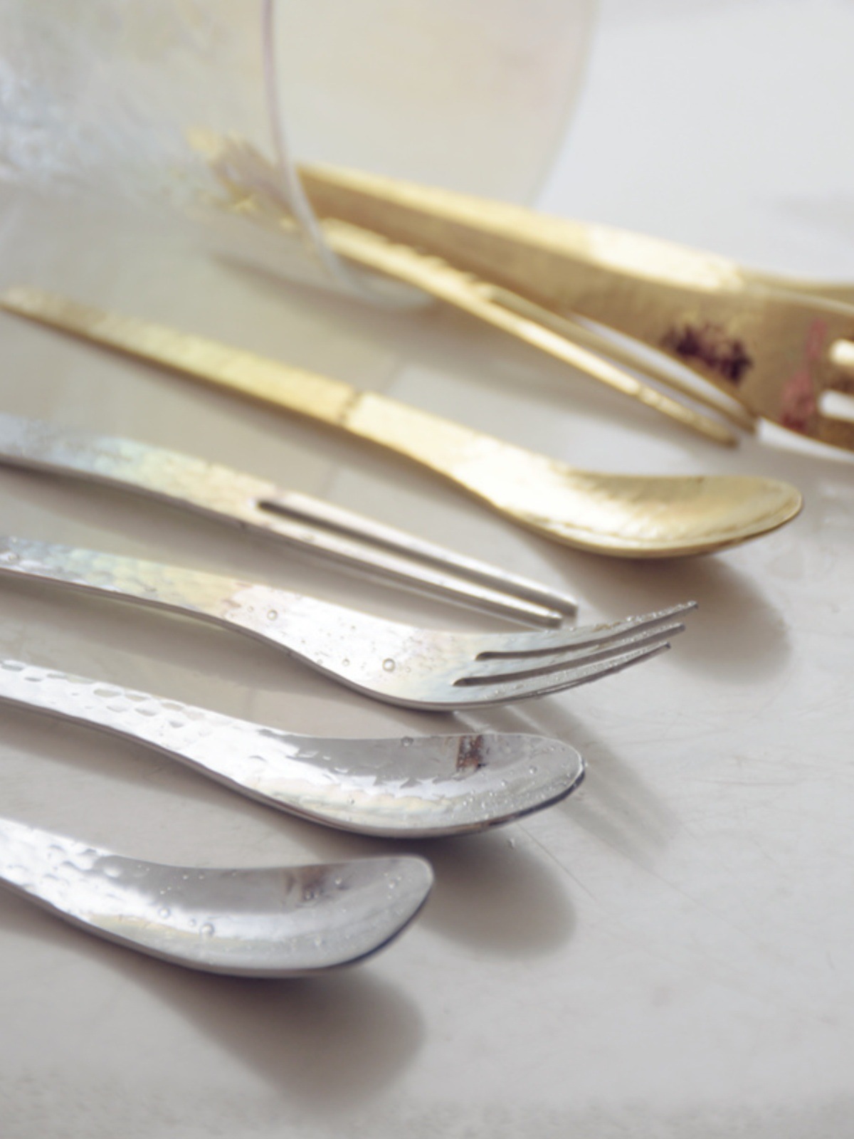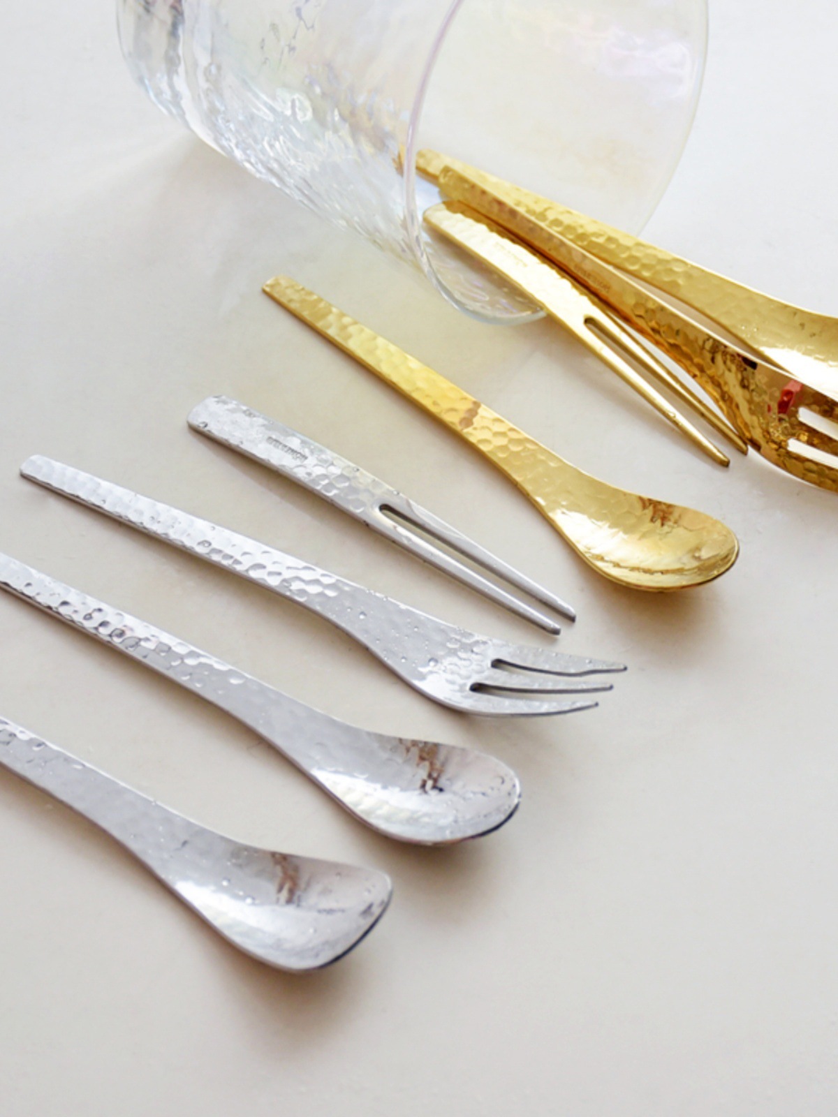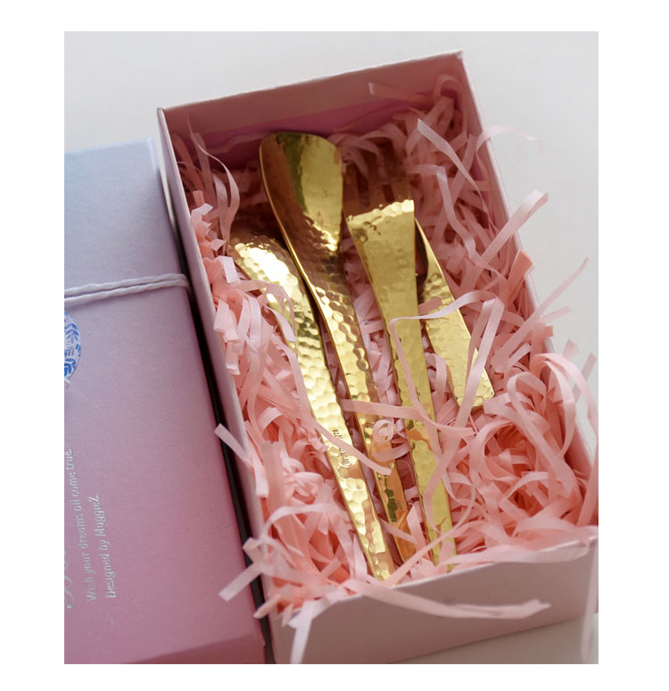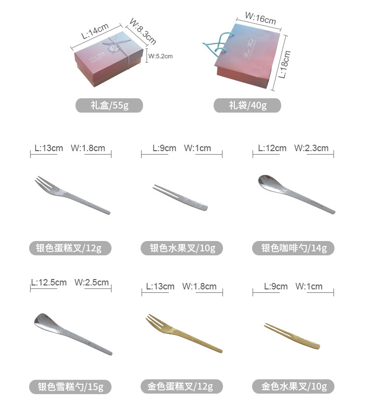 золотая вилка для торта; золотая вилка для фруктов; золотая кофейная ложка; золотая ложка для мороженого; серебряная вилка для торта; серебряная вилка для фруктов; серебряная кофейная ложка; серебряная ложка для мороженого
