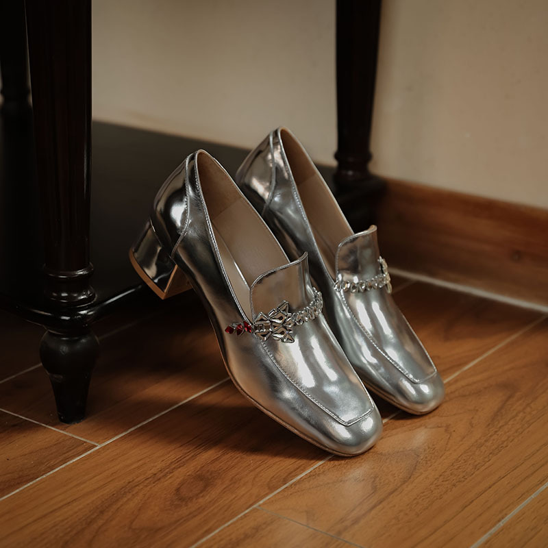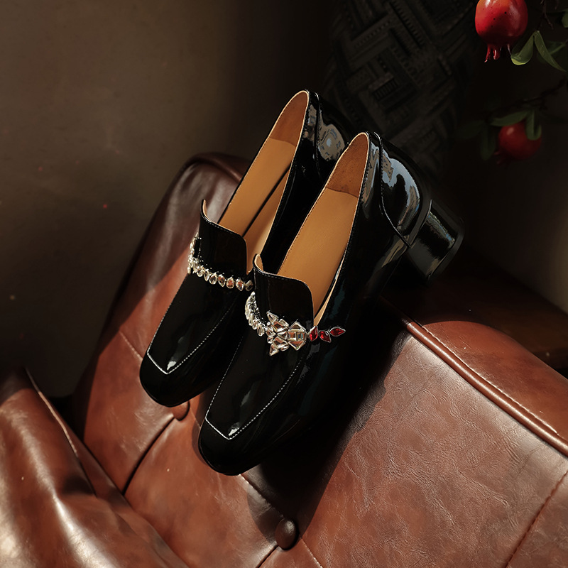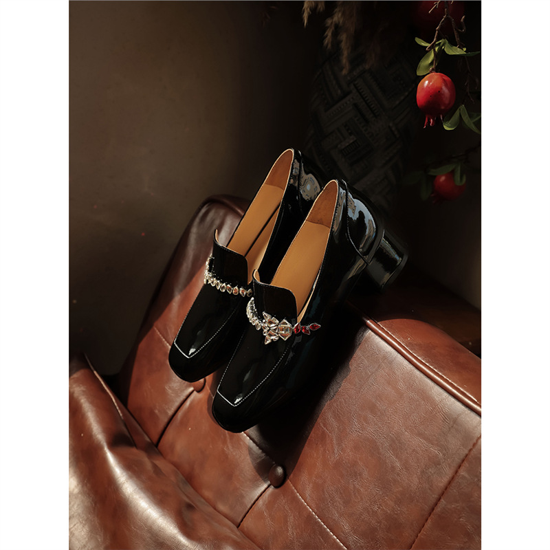 Можно разработать новую модель 2025 года для оптовой продажи, неоформленные лоферы черного золота серии лимитированного выпуска на толстом каблуке для экспорта в Россию.