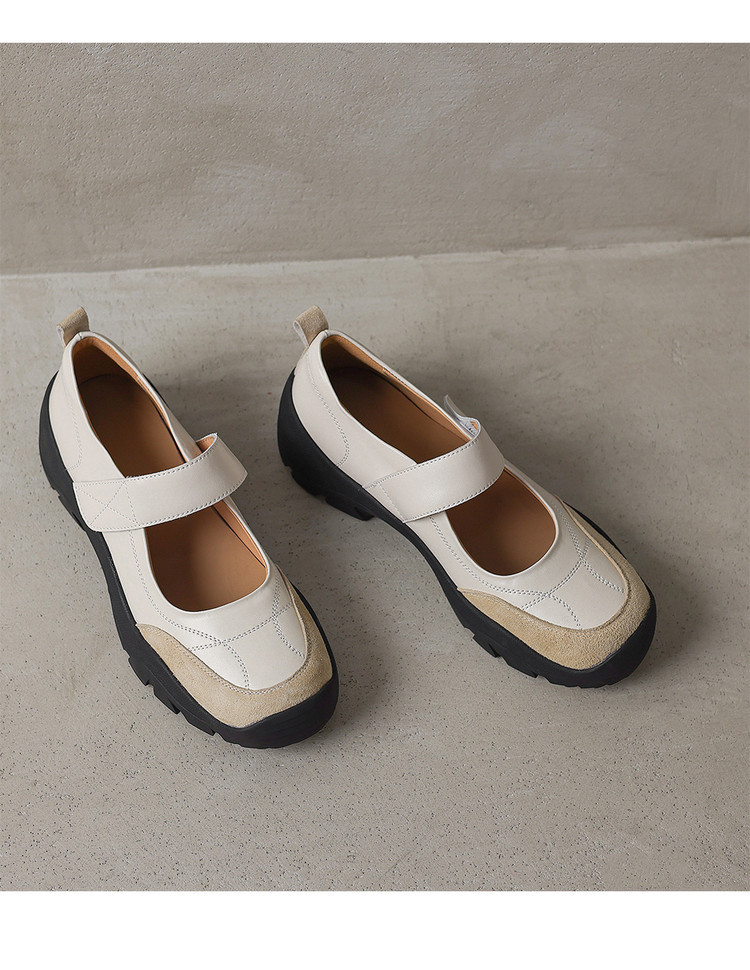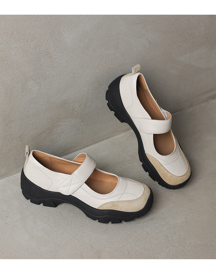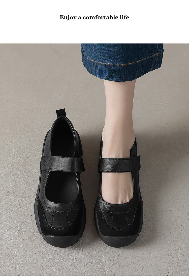 Женские туфли Мэри Джейн из натуральной кожи в британском стиле, новинка 2025 года, маленькие кожаные туфли на мягкой подошве, повседневная женская обувь на плоской подошве с неглубоким носком, туфли на толстой подошве
