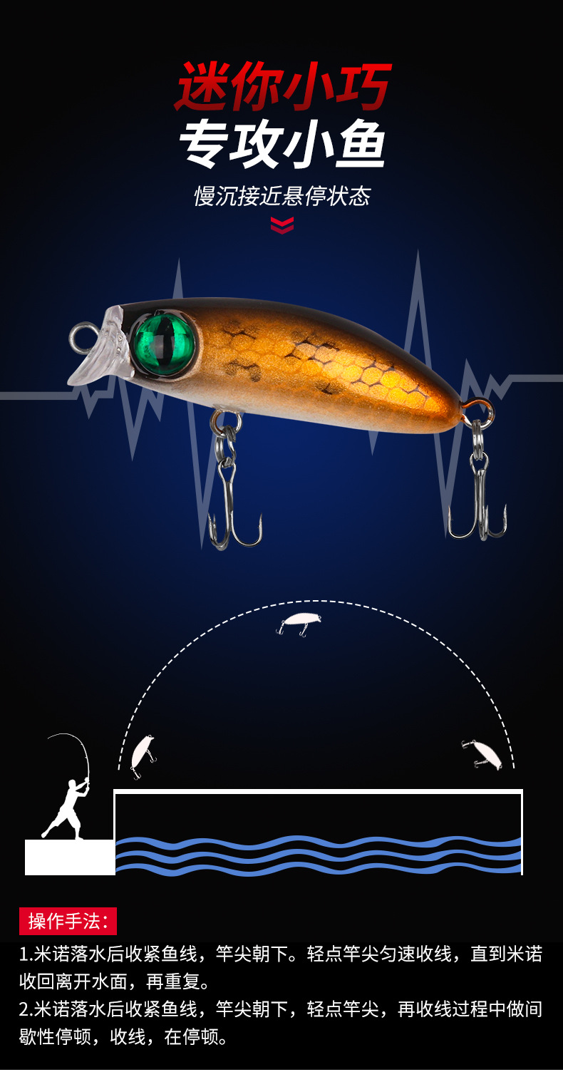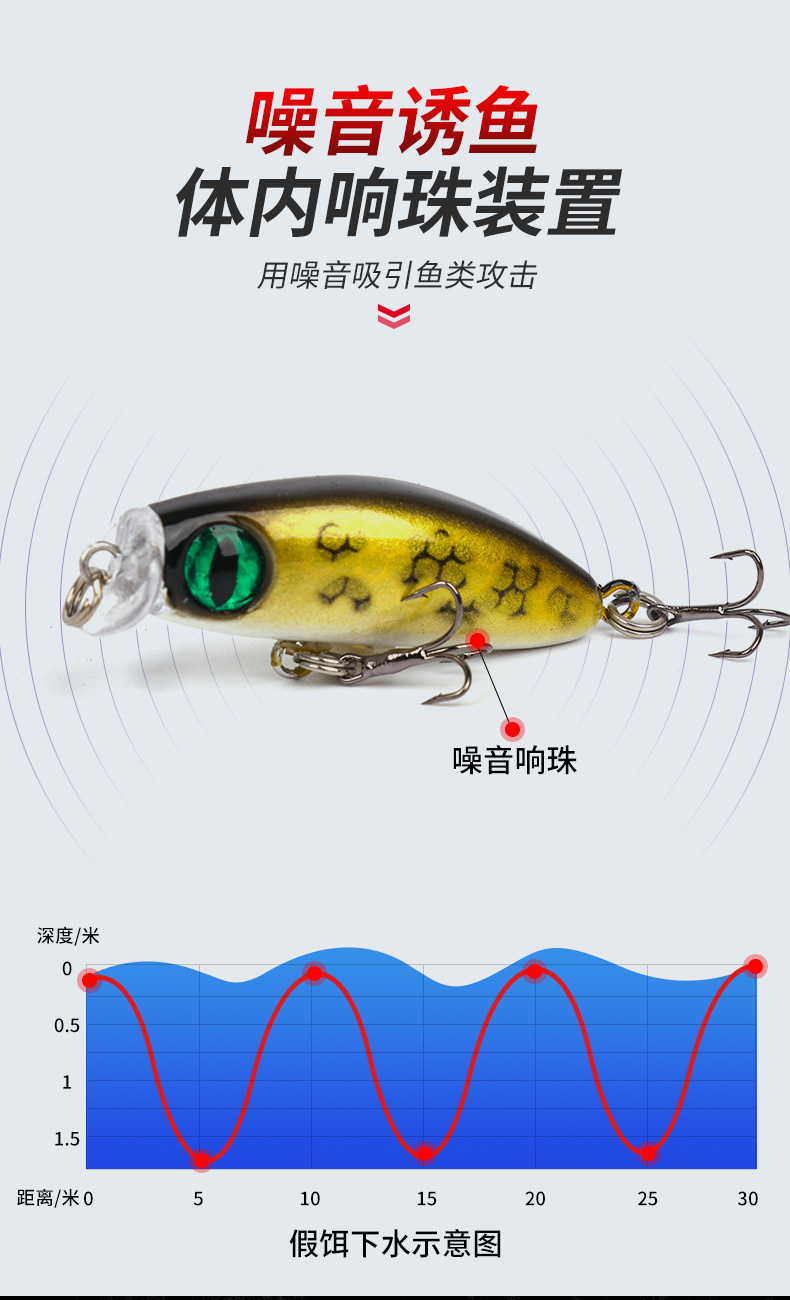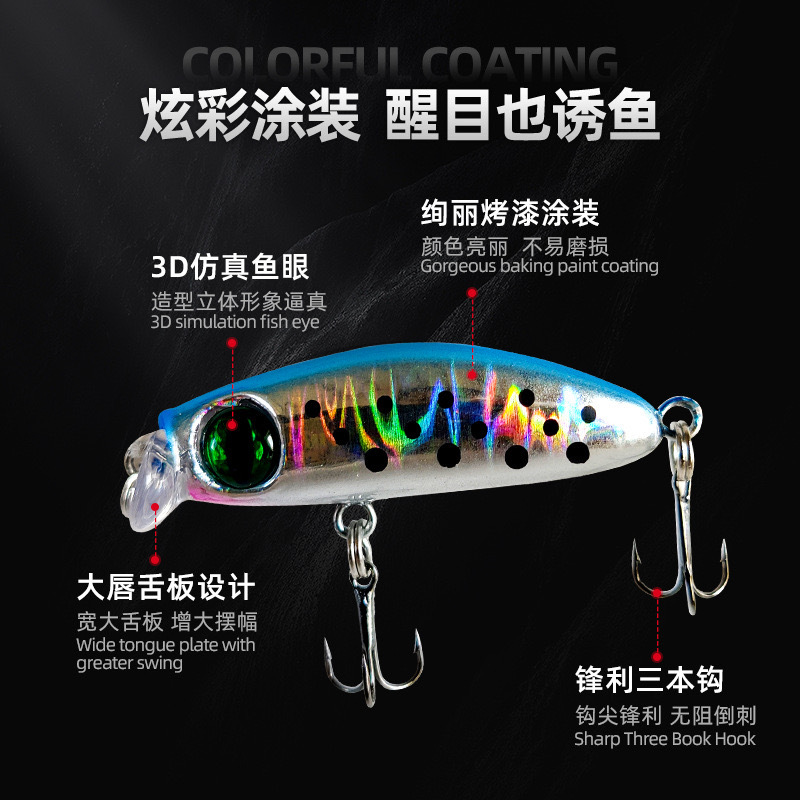 Набор приманок Micro Bait для пресноводных ручьев, подходящий для ловли белого и поверхностного лова, со светящимся плавающим и тонущим действием.