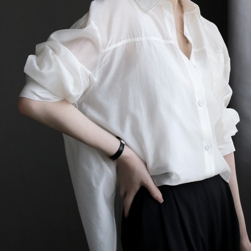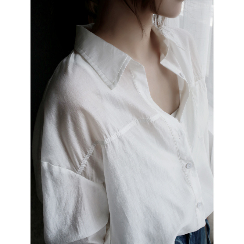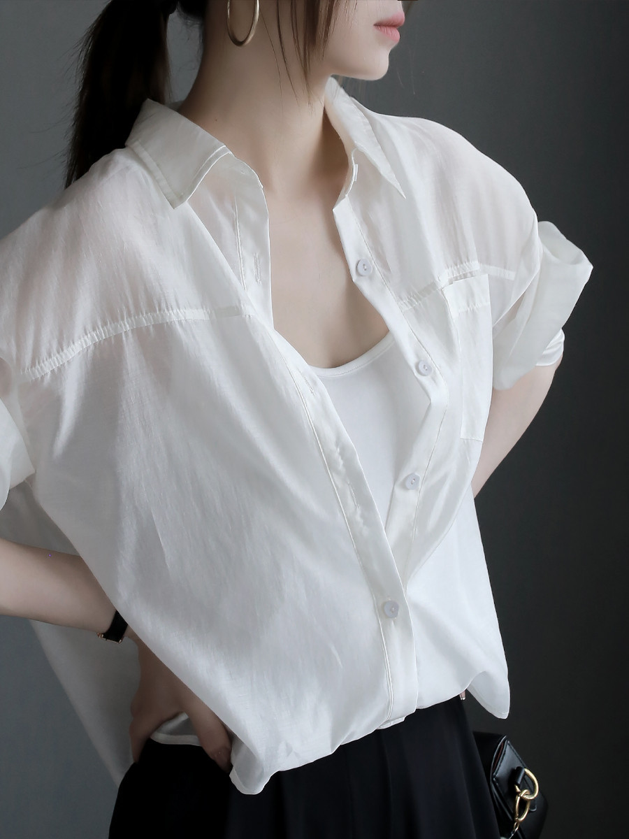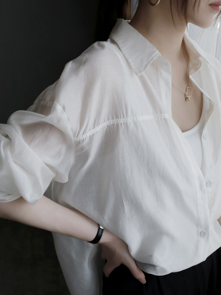 YS82025 Летняя рубашка в французском стиле с драпировкой из тенселя, свободная блузка для защиты от солнца