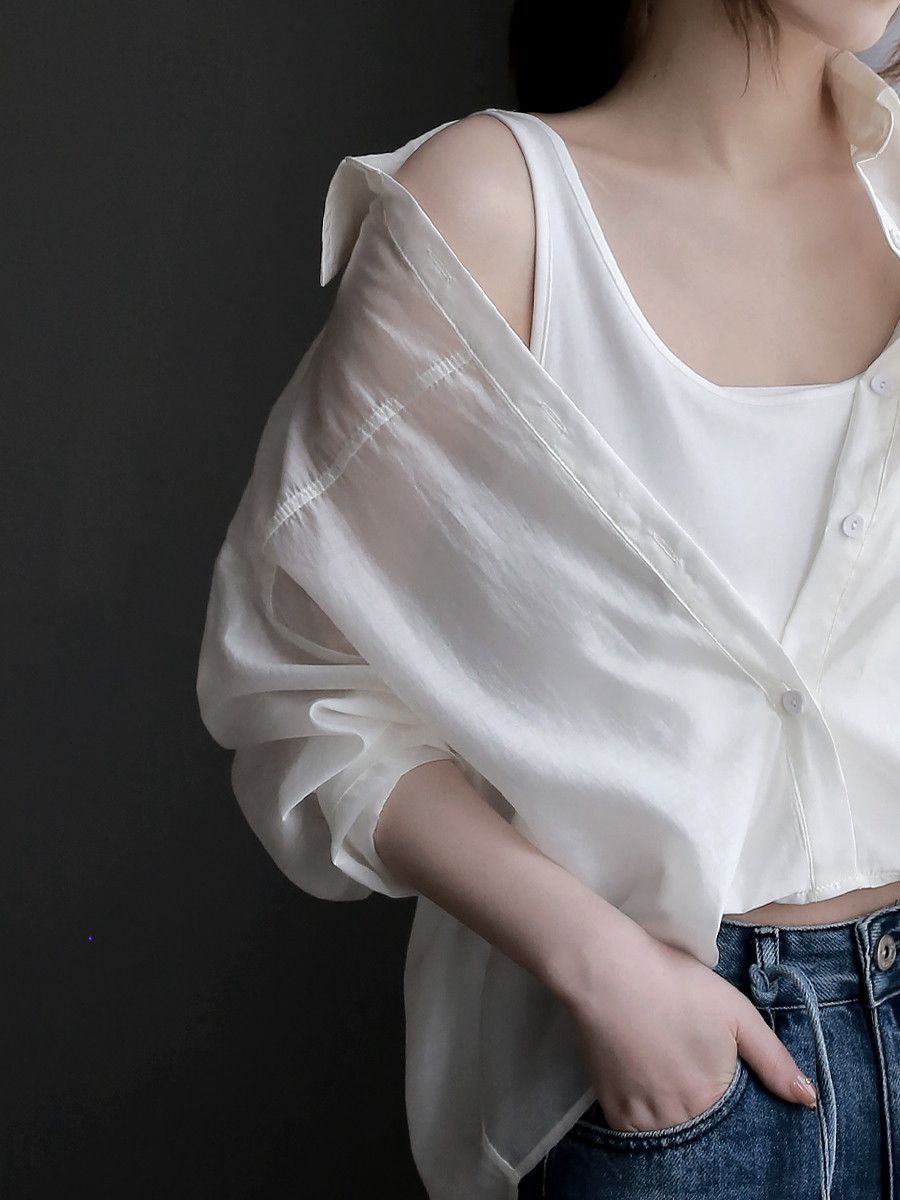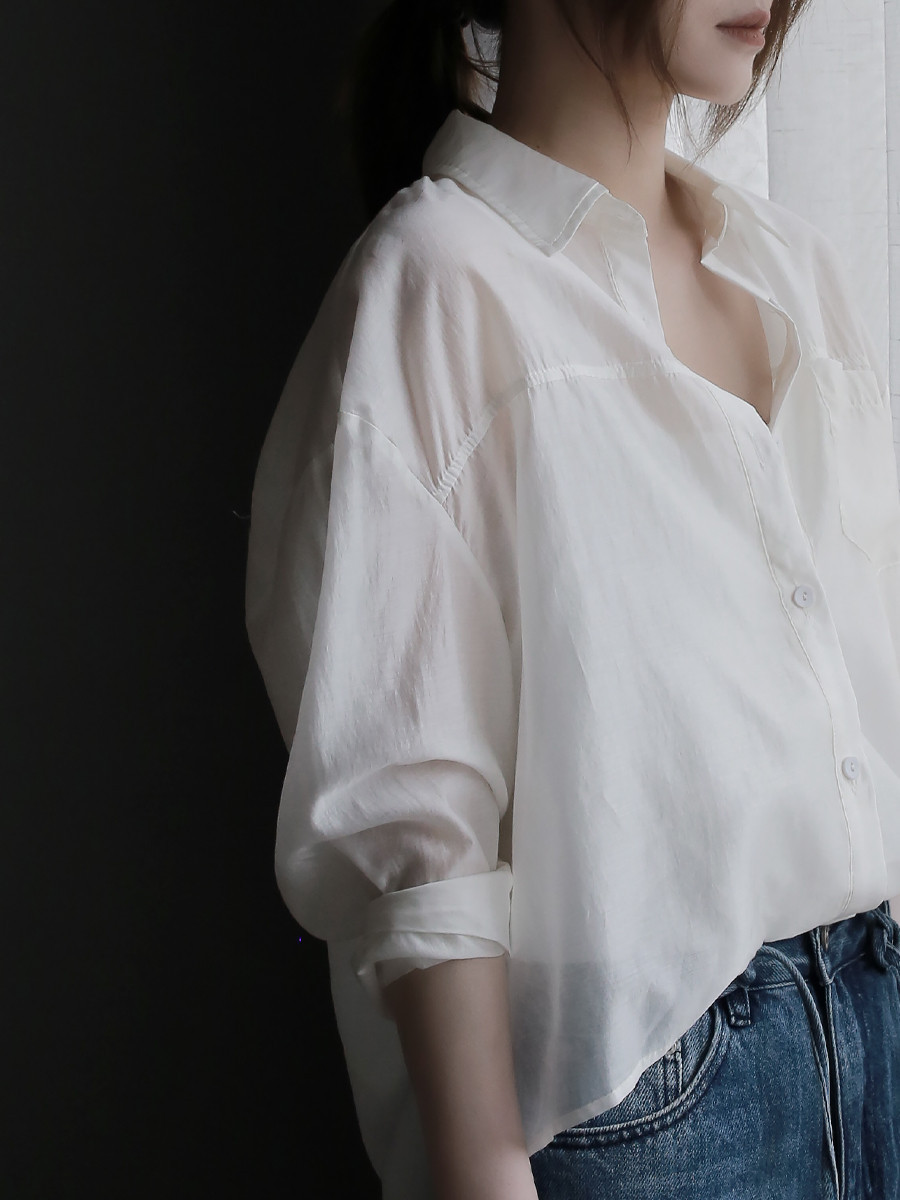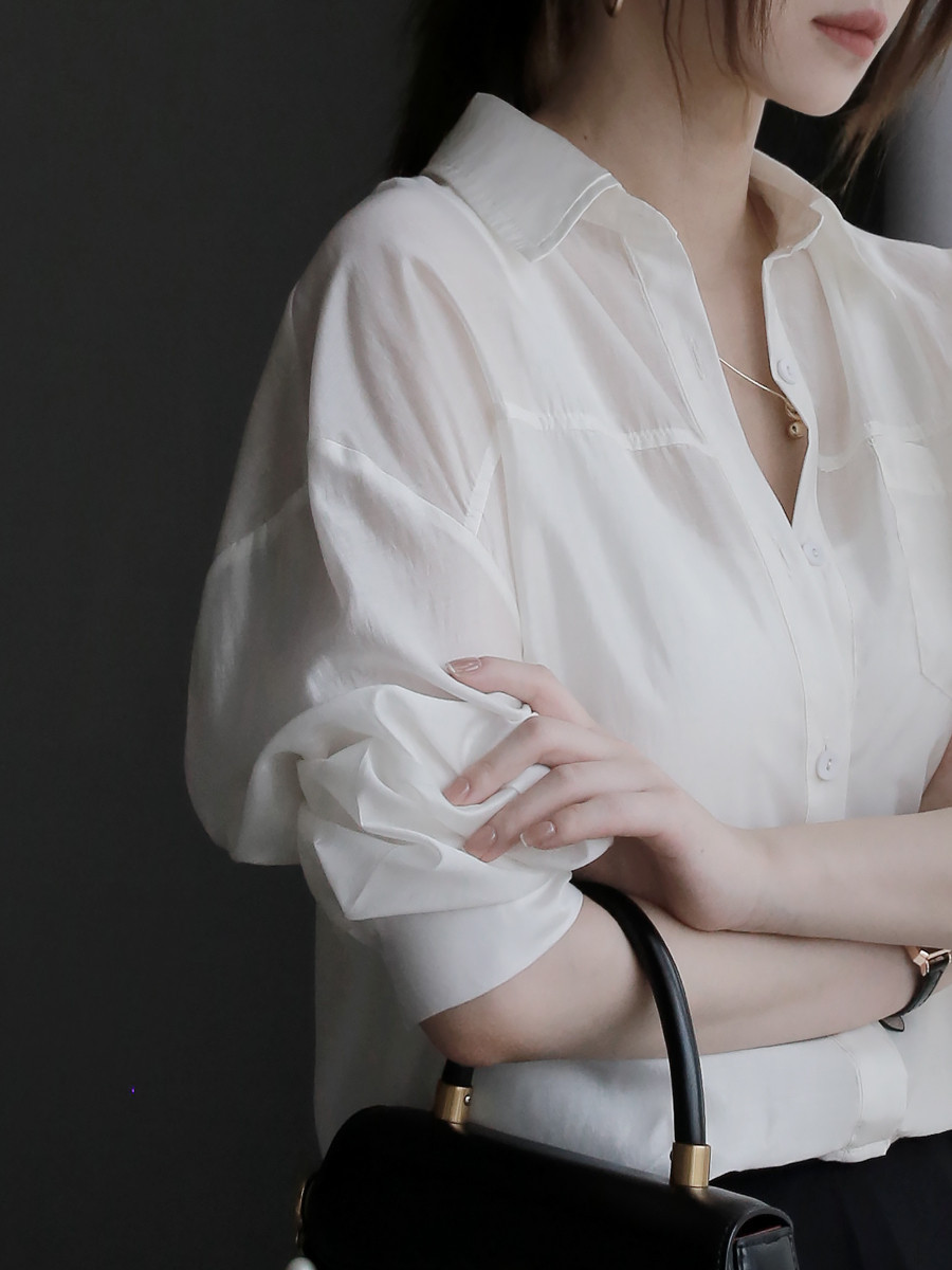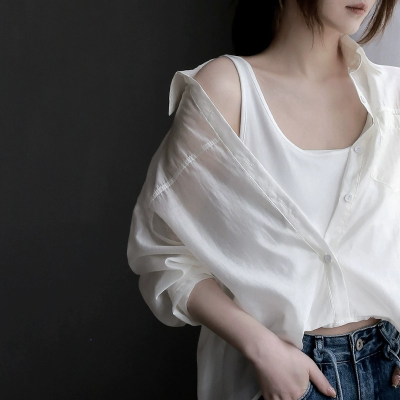 YS82025 Летняя рубашка в французском стиле с драпировкой из тенселя, свободная блузка для защиты от солнца