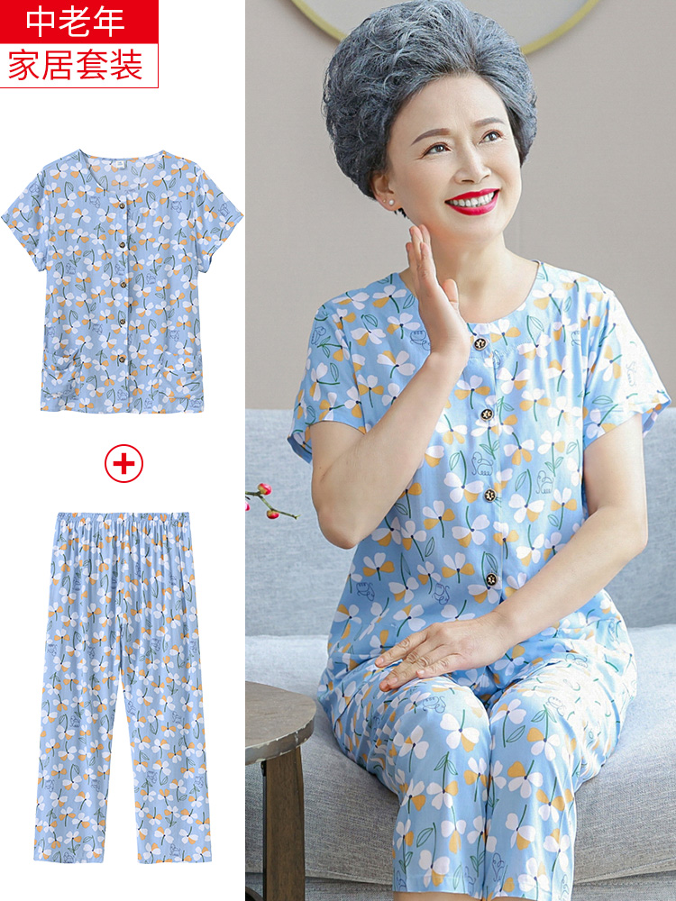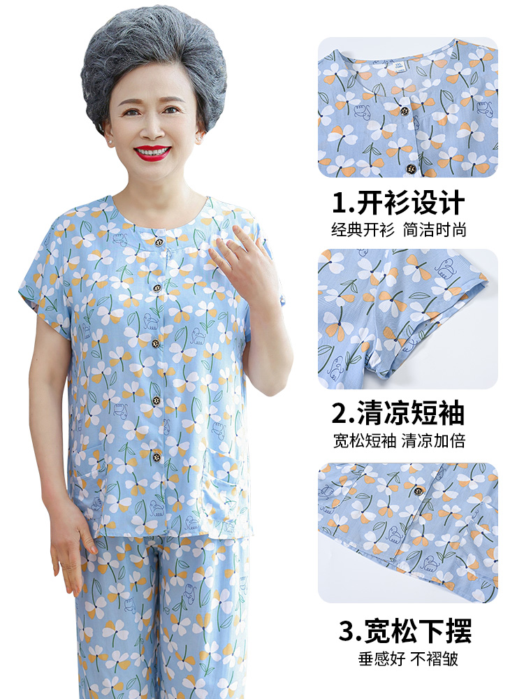Летняя одежда для мам, хлопчатобумажные шелковые пижамы для женщин среднего и пожилого возраста, женские кардиганы с короткими рукавами, новая летняя одежда для пожилых людей 2025 года.
