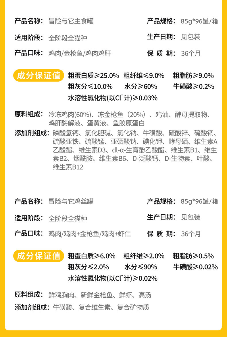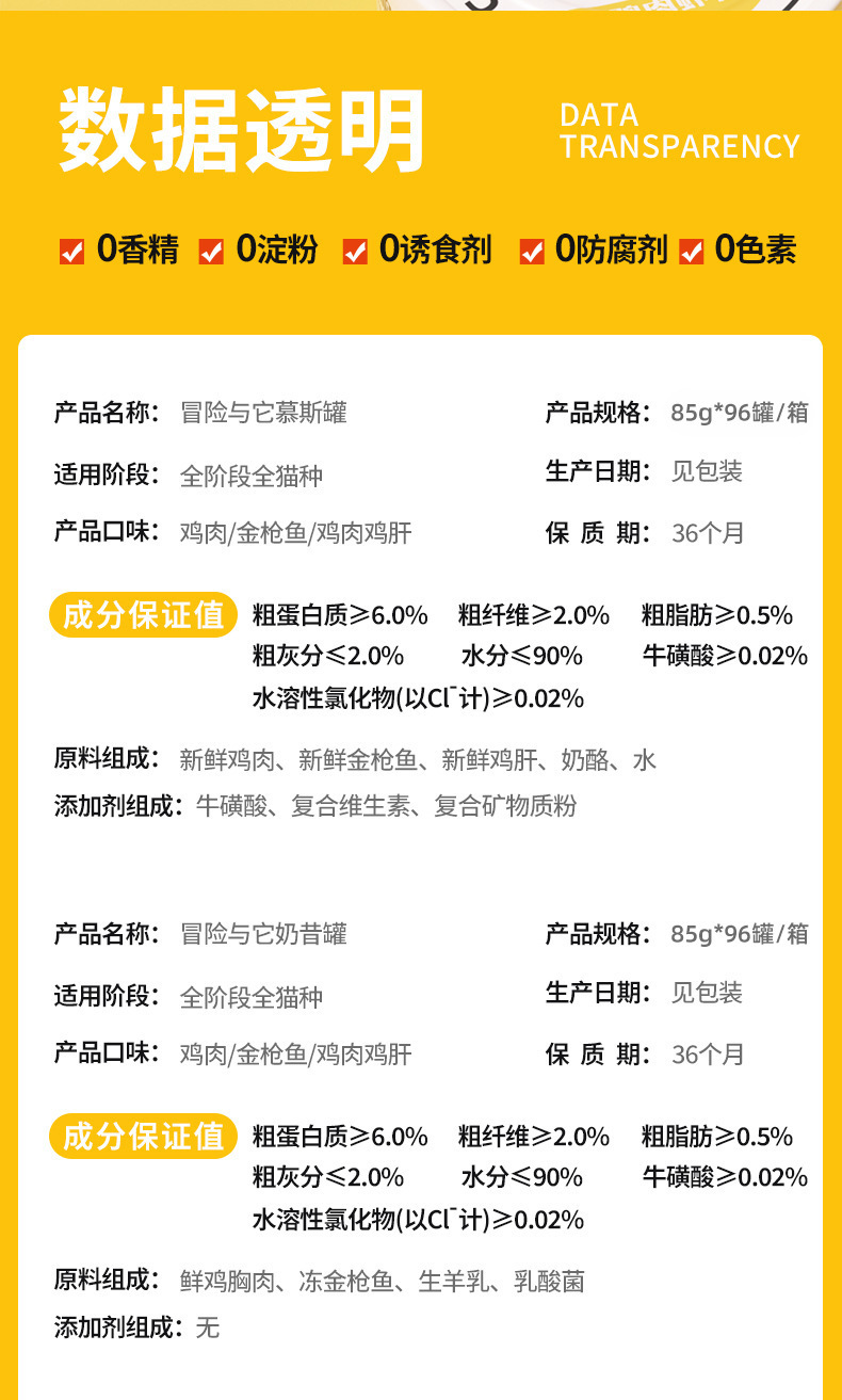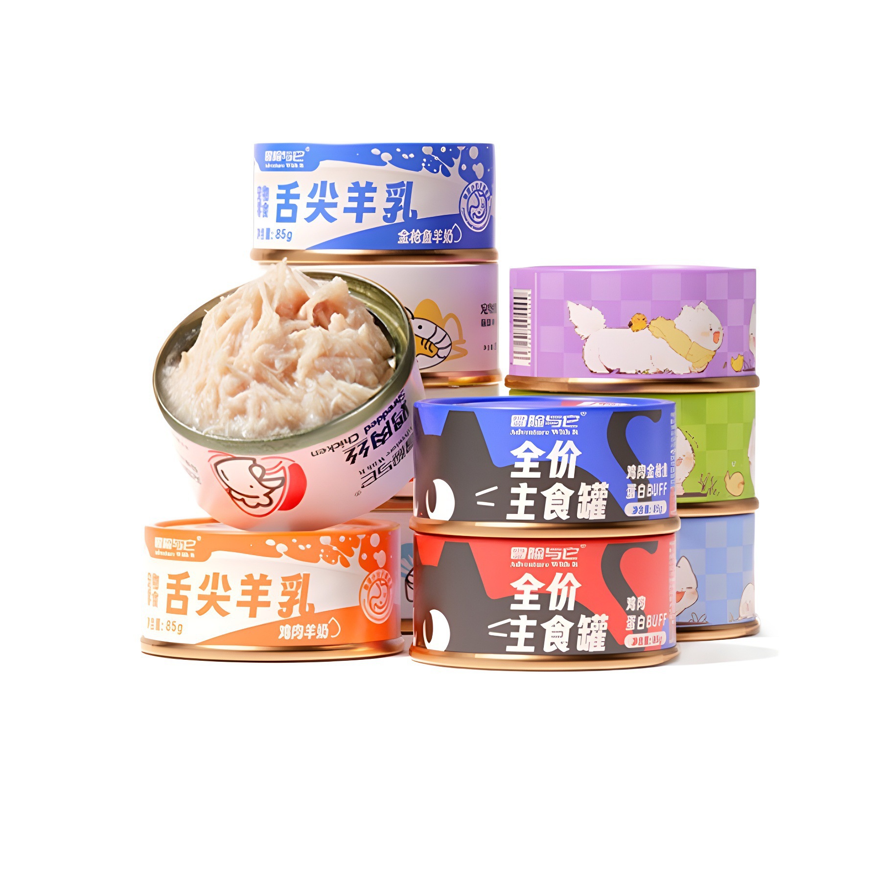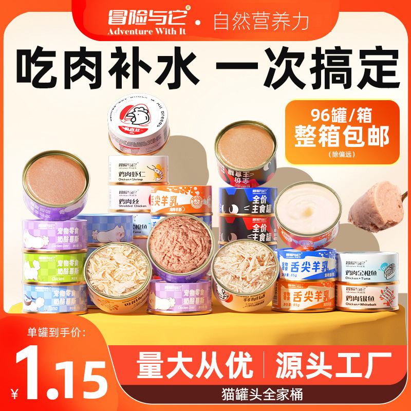 Приключение и полный ассортимент банок 85 г, целая коробка 96 банок, свежий суп для кошек, консервированная курица, измельченная основа, консервированные банки с муссом для кошек