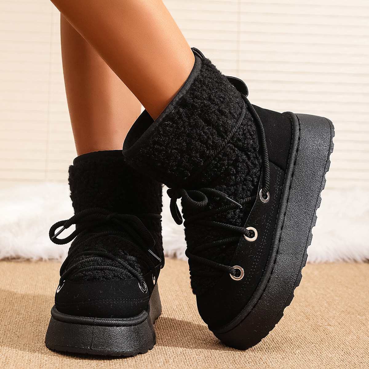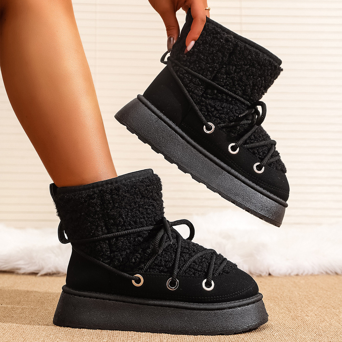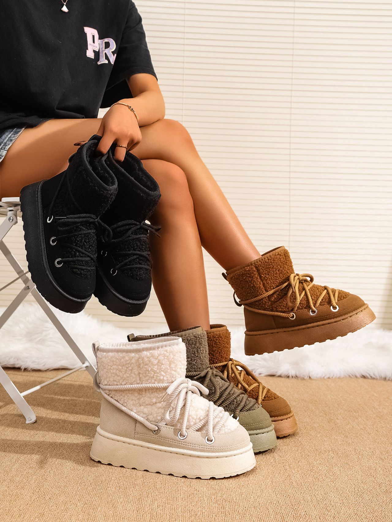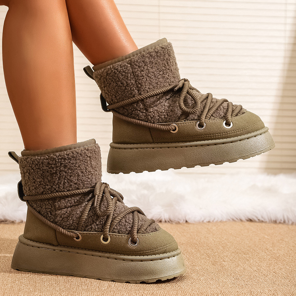 Женские зимние ботинки 2025, новые зимние утепленные хлопковые ботинки на платформе с флисовой подкладкой, увеличивающие рост, модная теплая хлопковая обувь на шнуровке для внешней торговли