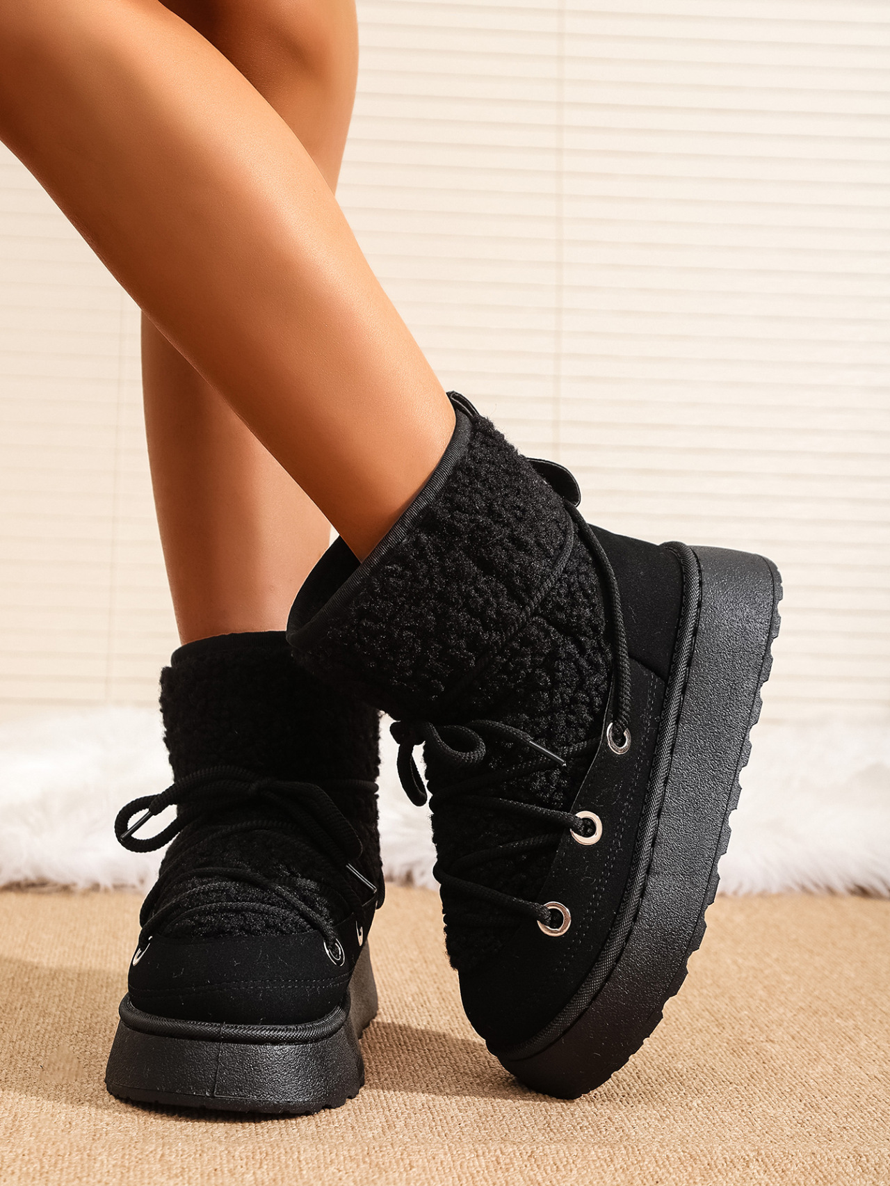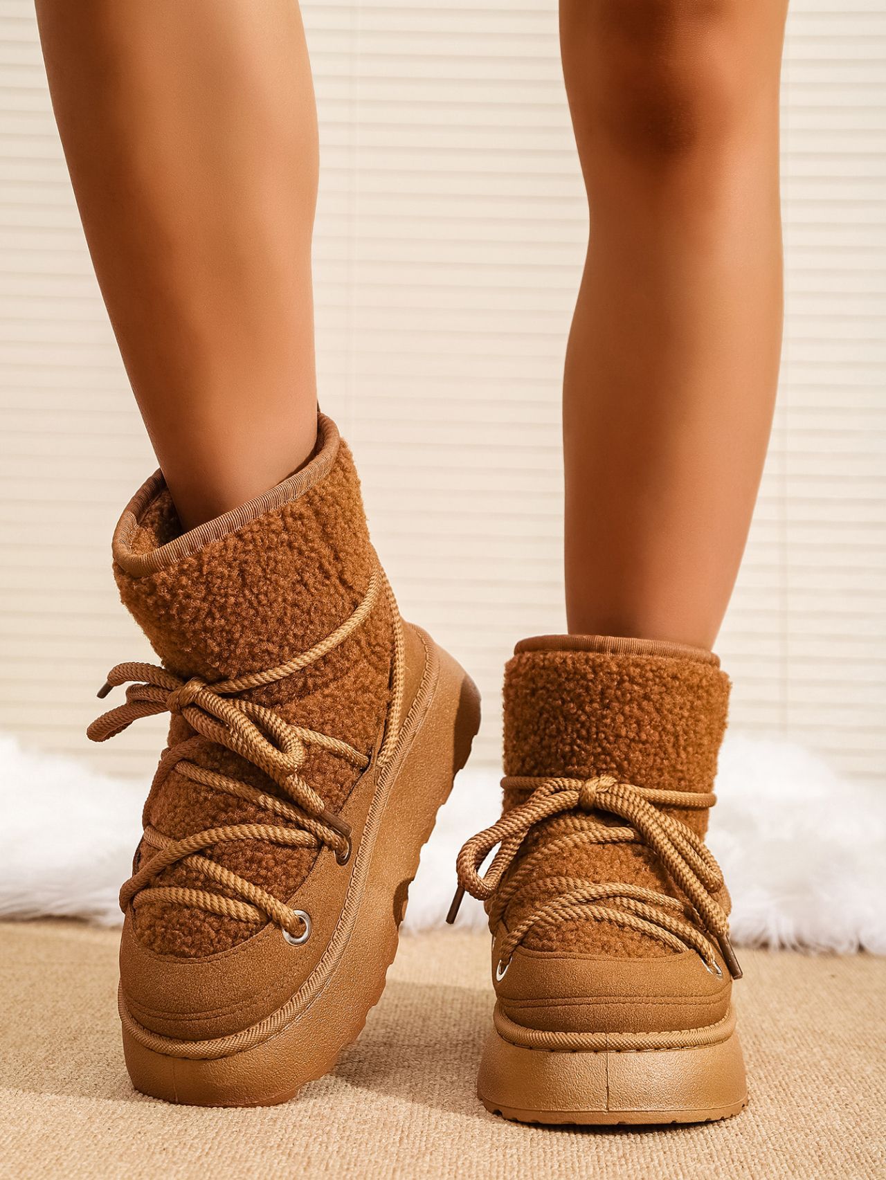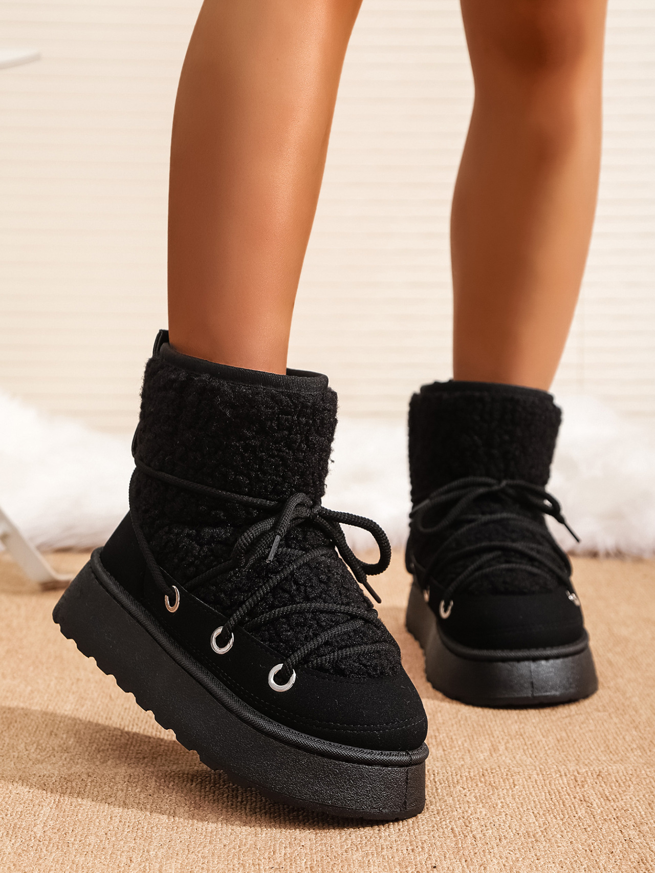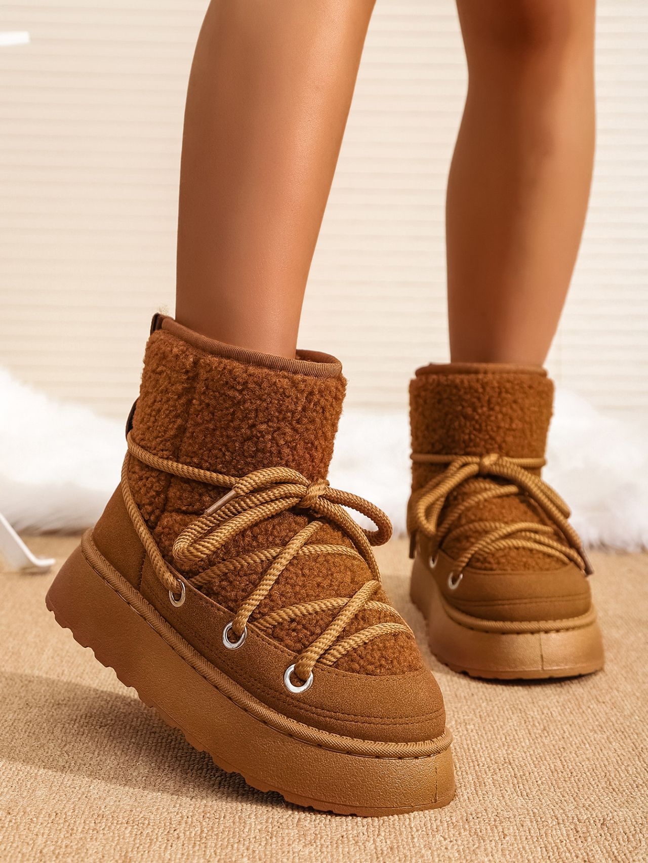 Женские зимние ботинки 2025, новые зимние утепленные хлопковые ботинки на платформе с флисовой подкладкой, увеличивающие рост, модная теплая хлопковая обувь на шнуровке для внешней торговли