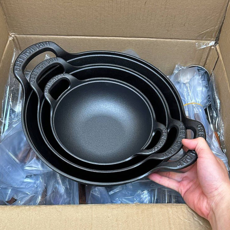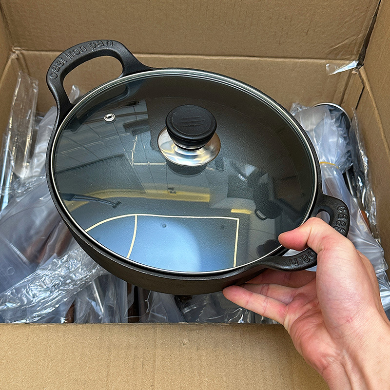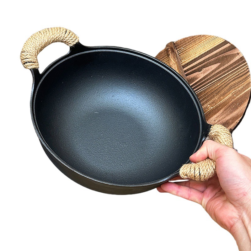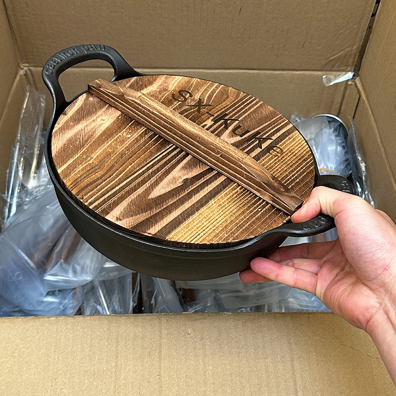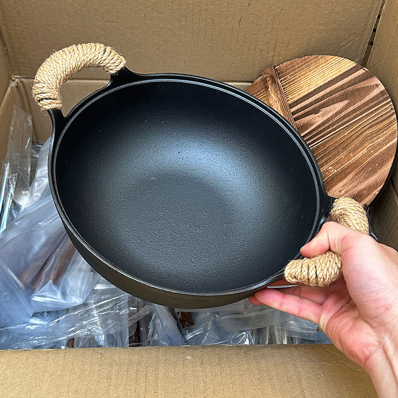 Маленькая чугунная кастрюля без покрытия, домашняя кастрюля для тушения с крышкой, чугунная кастрюля оптом