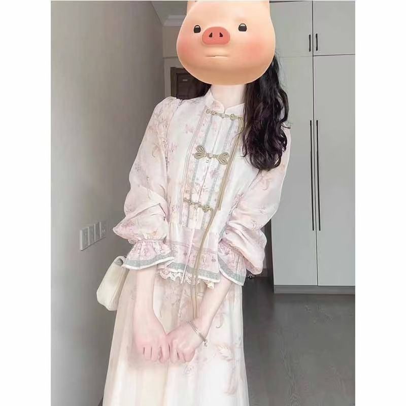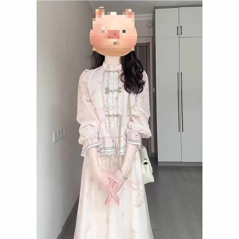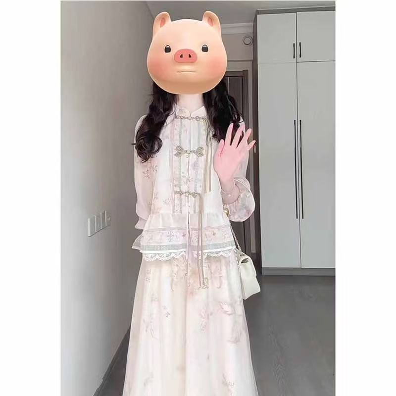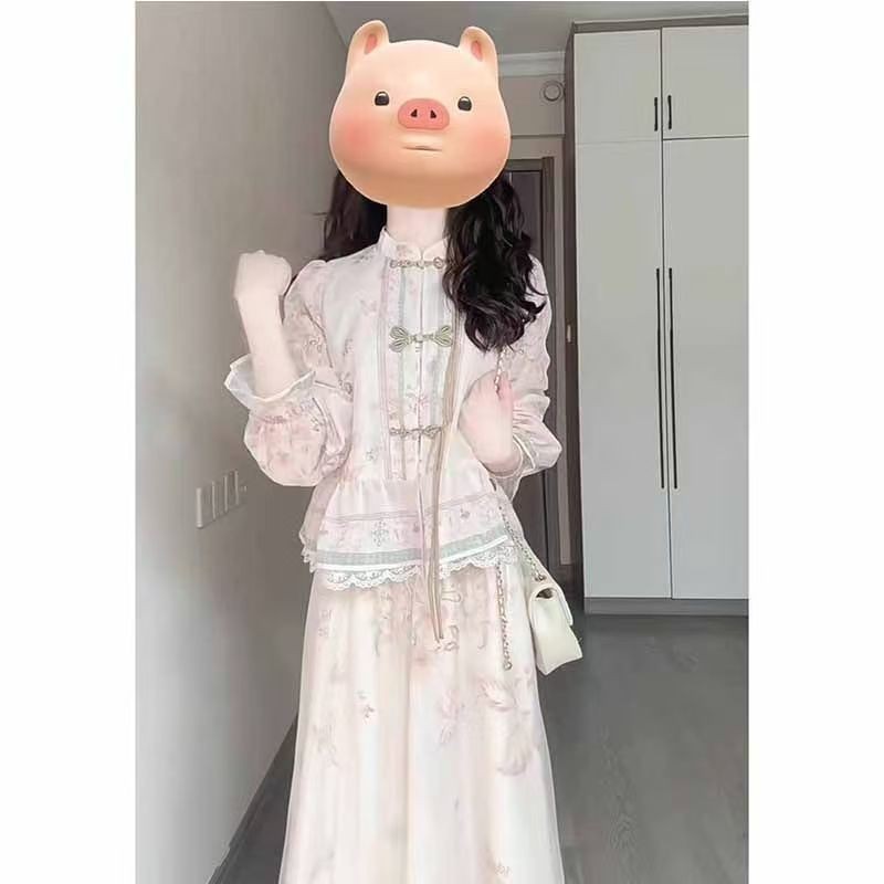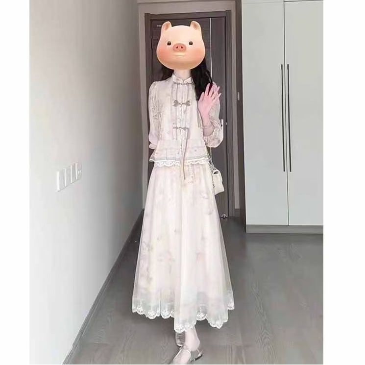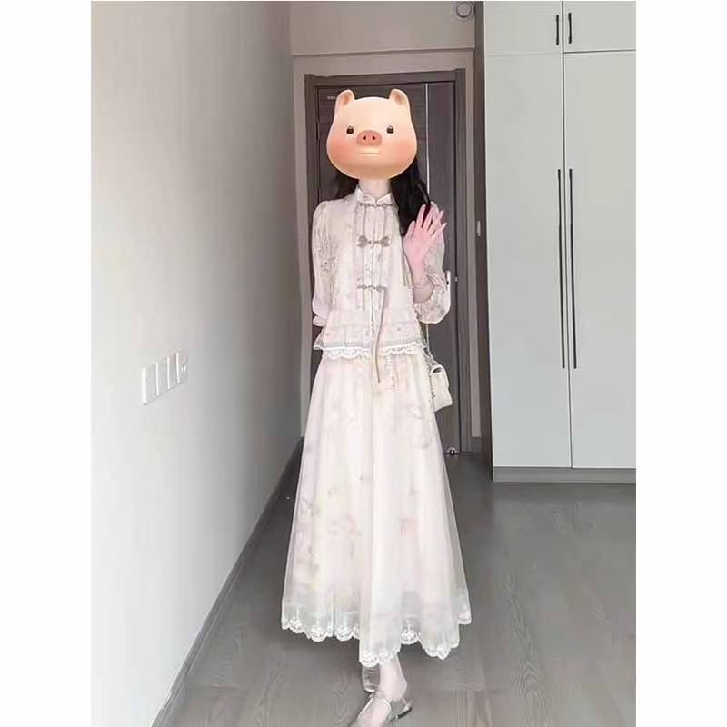Новый китайский стиль женского легкого люкса: комплект из топа на бретелях и юбки, новые акриловые длинные юбки 2025 года