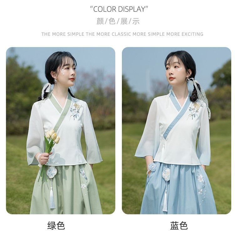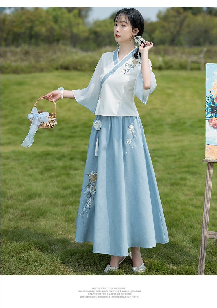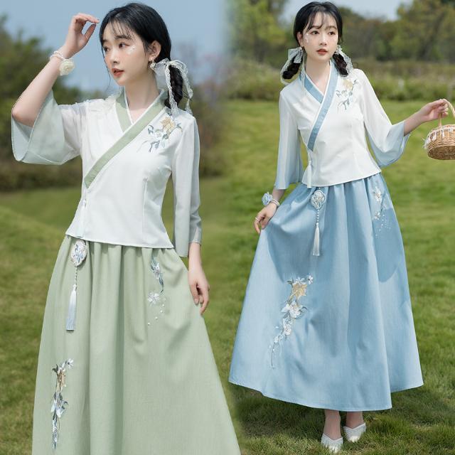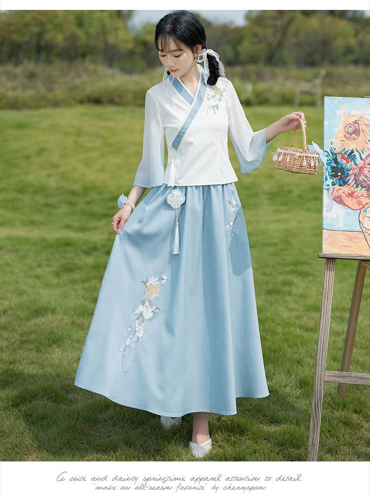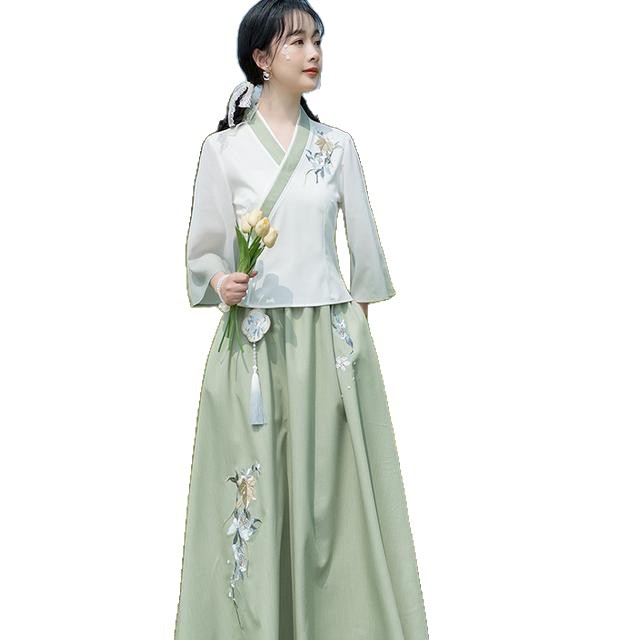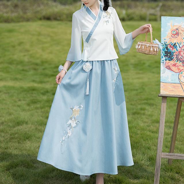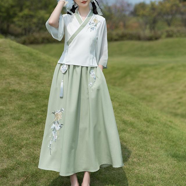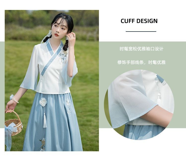 Женский костюм Тан в стиле Республики Китай с пуговицами, вышитый топ Cheongsam в китайском стиле, улучшенный комплект из двух предметов династии Хань
