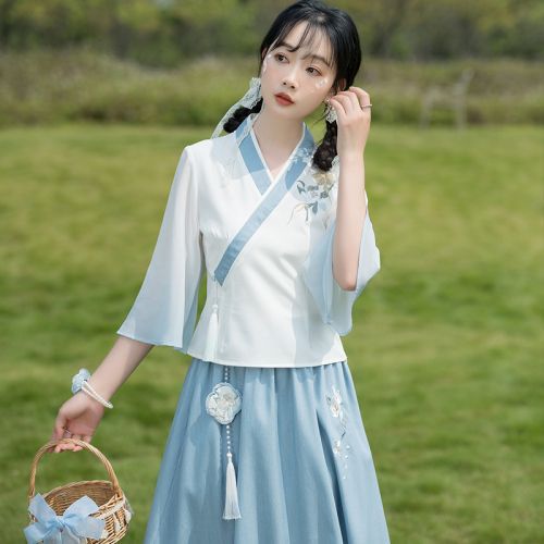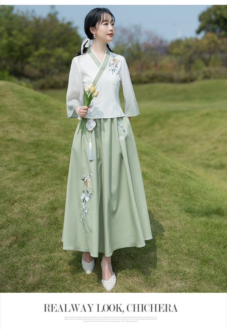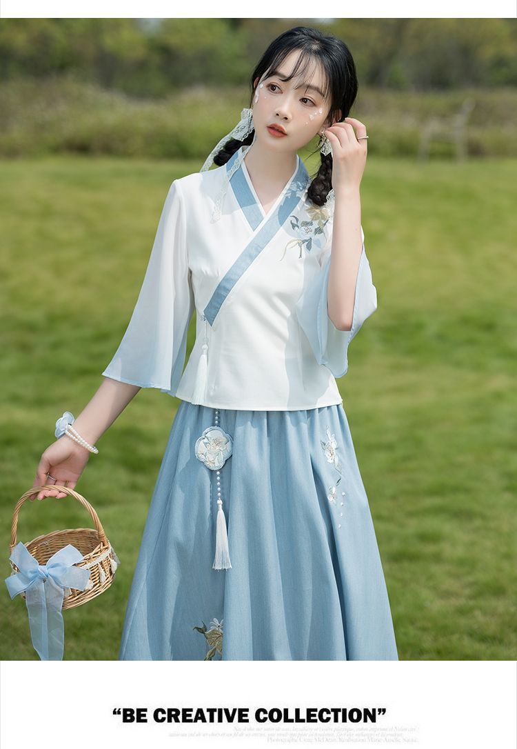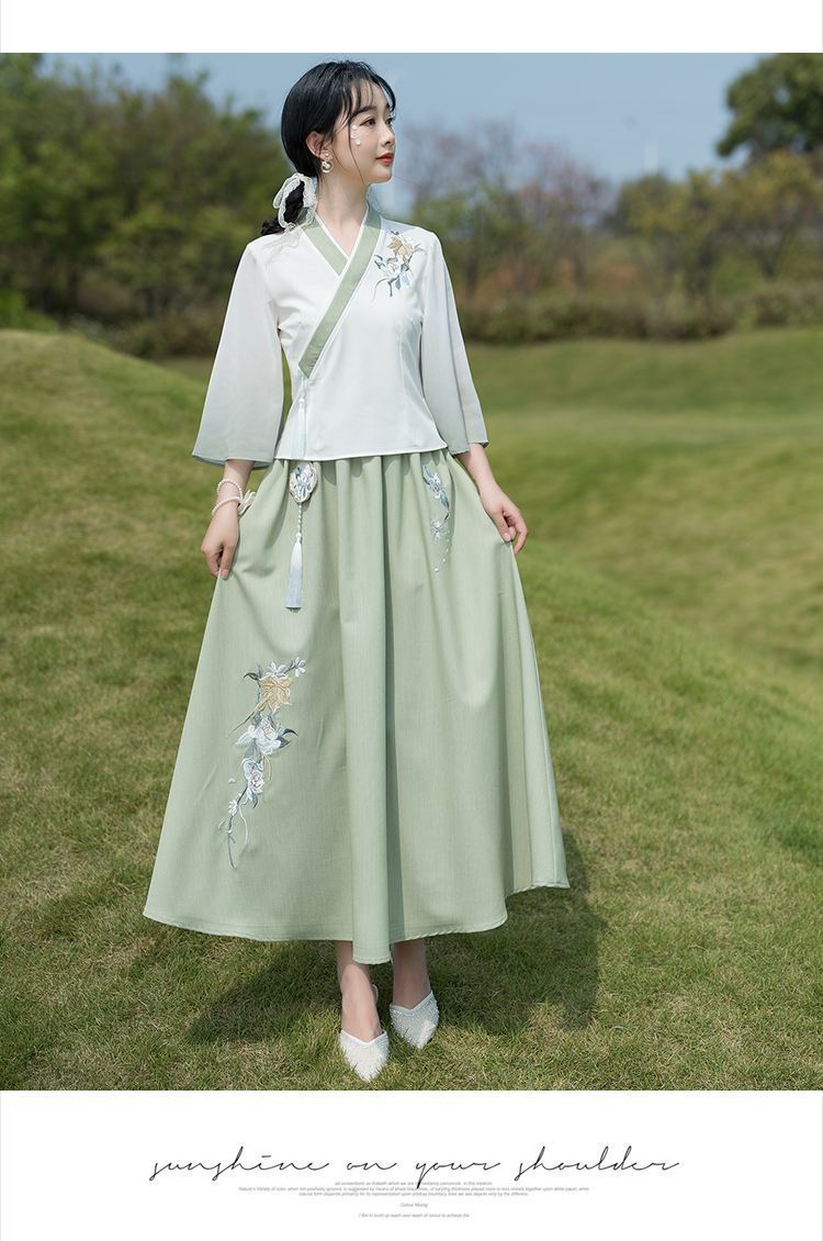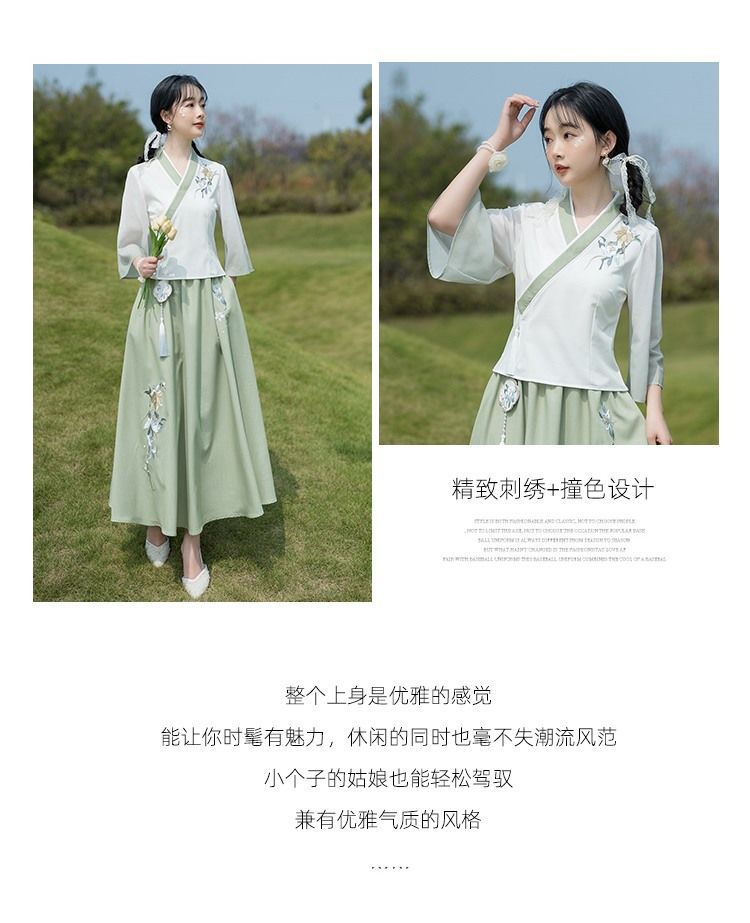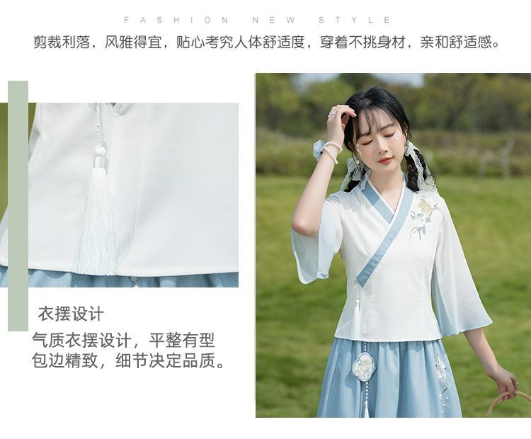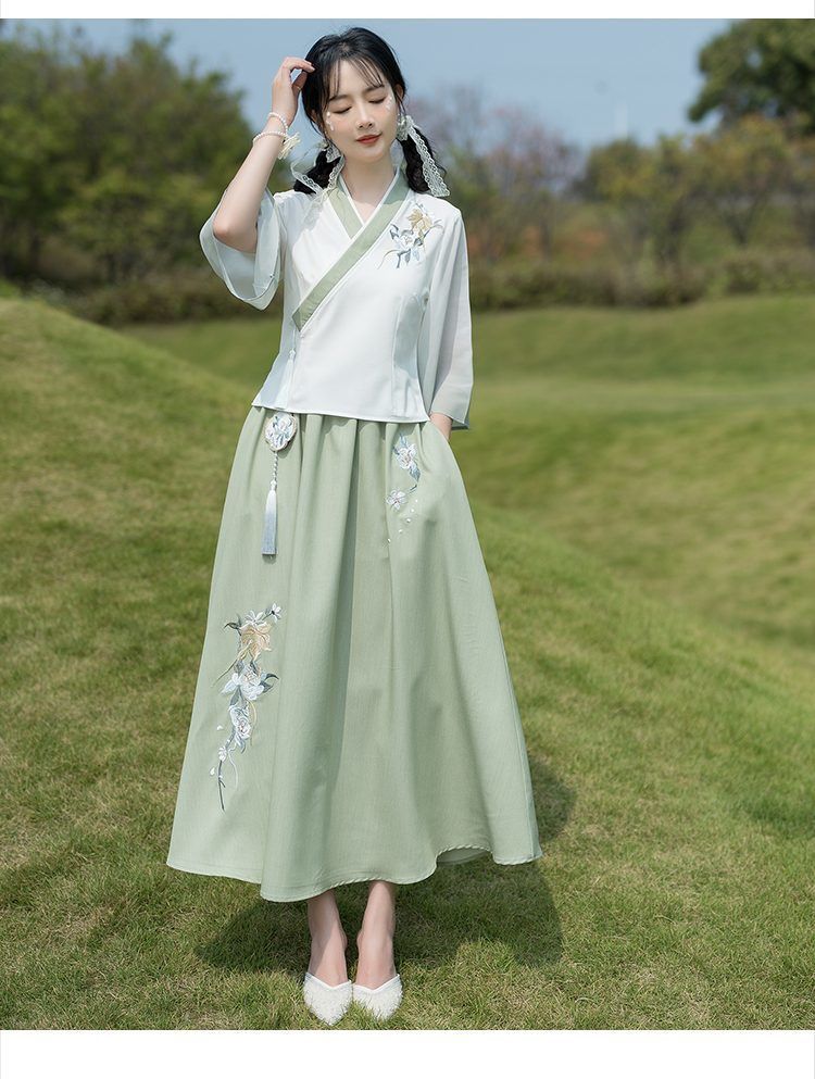Женский костюм Тан в стиле Республики Китай с пуговицами, вышитый топ Cheongsam в китайском стиле, улучшенный комплект из двух предметов династии Хань