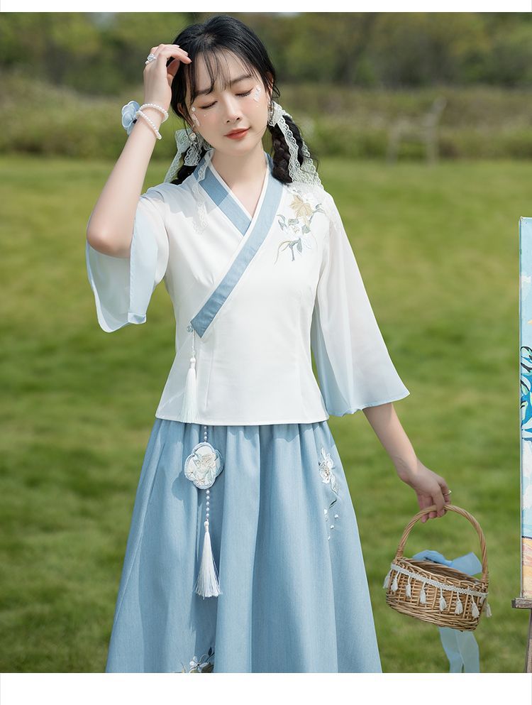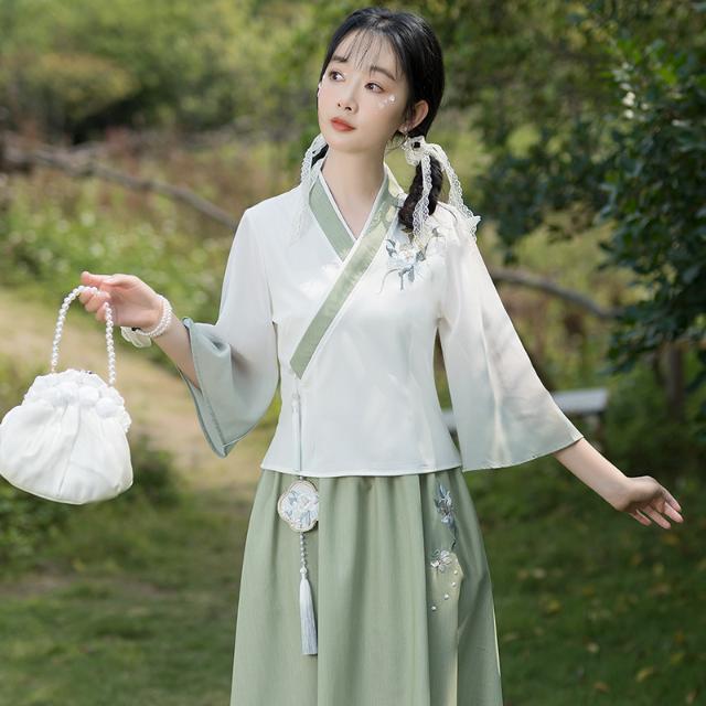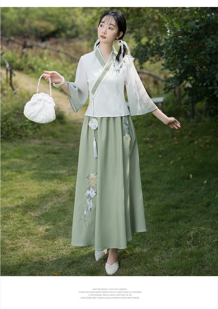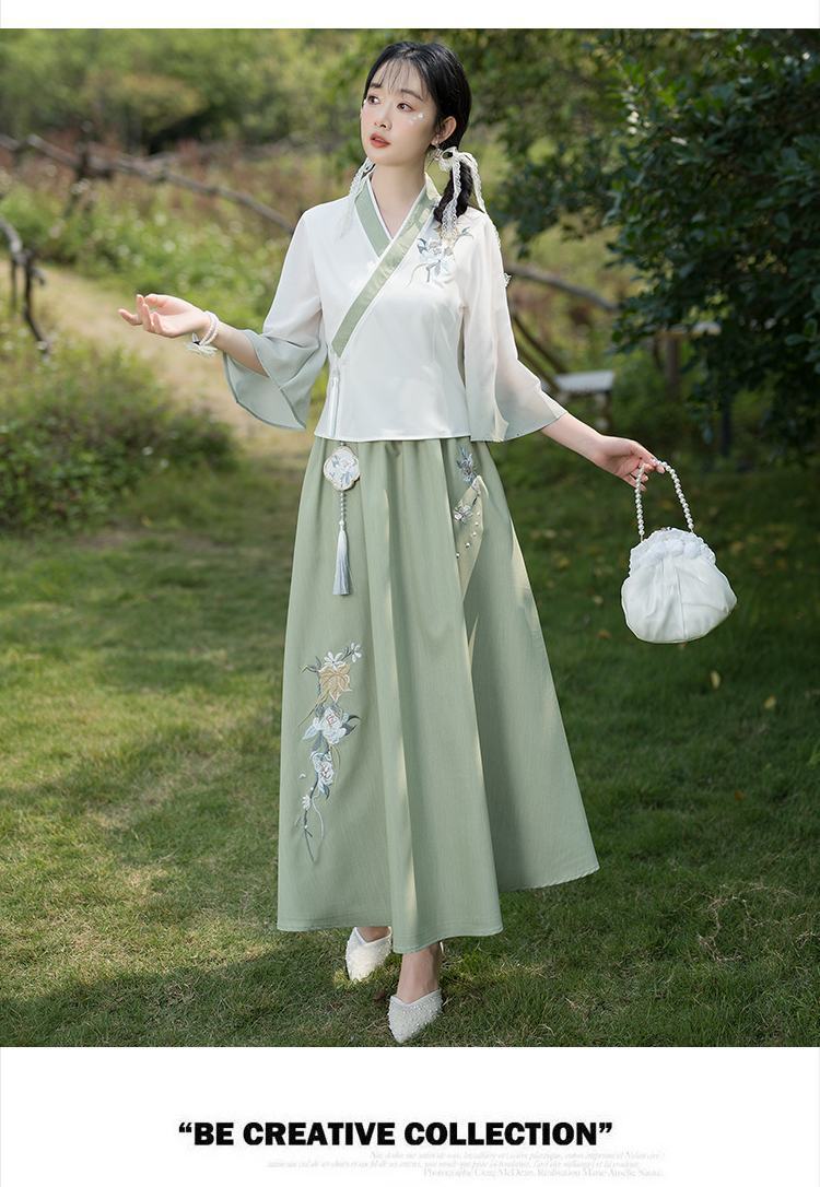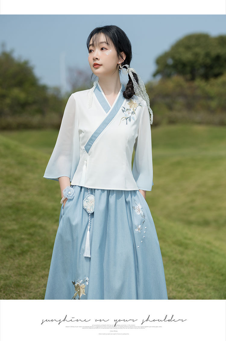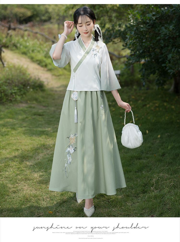 Женский костюм Тан в стиле Республики Китай с пуговицами, вышитый топ Cheongsam в китайском стиле, улучшенный комплект из двух предметов династии Хань