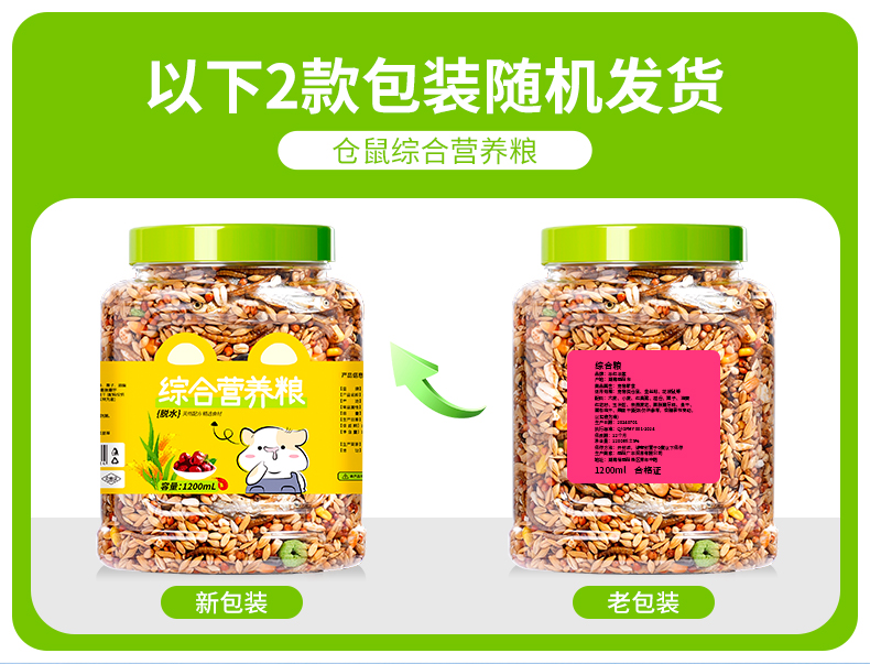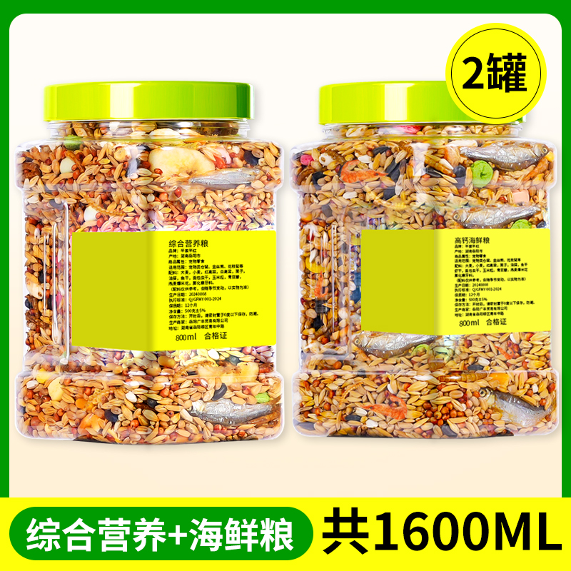 800ML玲珑装【原生五谷粮】1桶; 800ML玲珑装【综合营养粮】1桶; 800ML玲珑装【高钙海鲜粮】1桶; 1200ML经典装【原生五谷粮】1桶; 1200ML经典装【综合营养粮】1桶; 1200ML经典装【高钙海鲜粮】1桶; 1600ML【综合营养+五谷】共两桶; 1600ML【综合营养+海鲜】共两桶; 1600ML【五谷粮+海鲜粮】共两桶; 1600ML【五谷粮+综合营养】共两桶; 2400ML【综合营养+五谷】共两桶; 2400ML【综合营养+海鲜】共两桶; 2400ML【五谷粮+海鲜粮】共两桶; 50g【营养五谷粮】