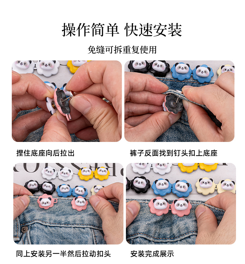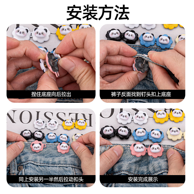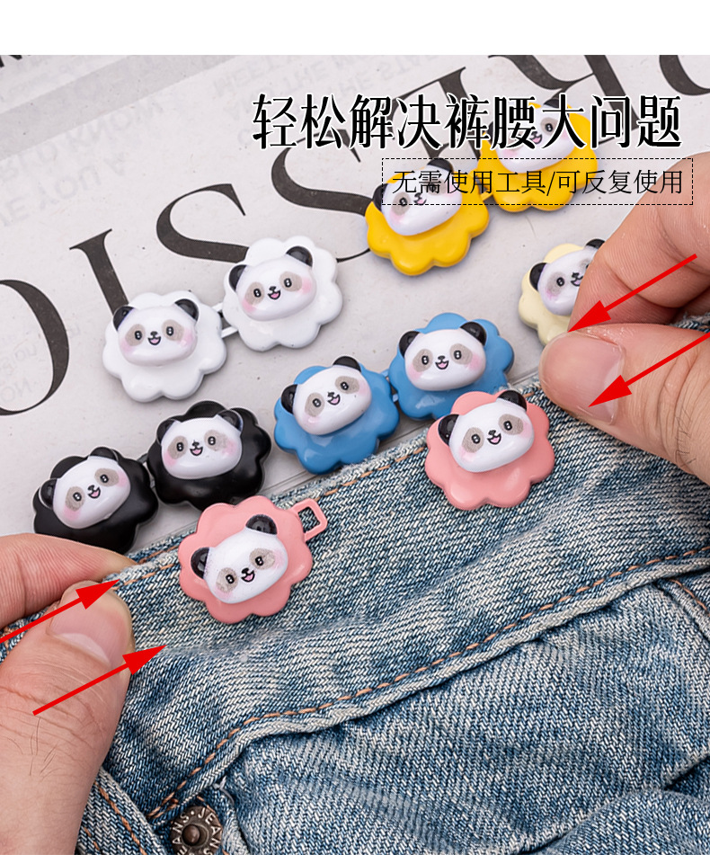 熊猫收腰纽扣平底无痕免钉大改小调节固定卡扣免缝收缩扣收腰神器